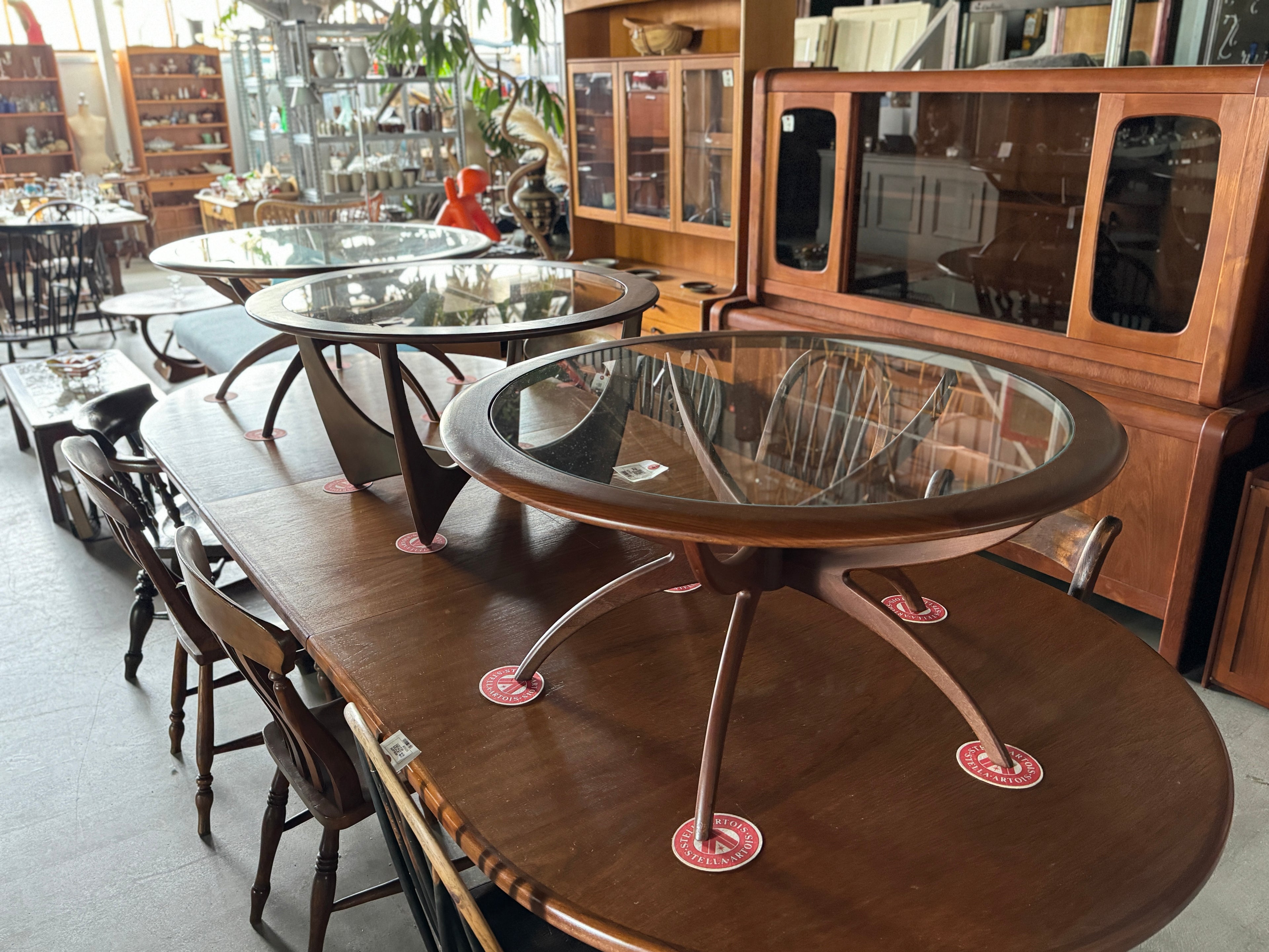 ネイサン社の創業は1916年、イギリス・ロンドンでロシア出身のバーネット・ネイサンが手作りの家具を製造したことに遡ります。1954年ニュー ヨークで開かれた家具展覧会においてイギリスを代表するデザインとして選ばれて一躍有名になり、チーク材の家具を本格的に生産。G-planシリーズで有名なエベネゼル・グーム社と並び、イギリスミッドセンチュリーを代表する家具メーカーへと発展しました。とくに「クラシックレンジ」シリーズは、時代を超越したデザインで優れた快適性と職人技が見事に融合。クラシックと北欧スタイルの折衷的な独自のデザインスタイルを生み出し、ジャコビアンドアスタイリングと美しいチーク材の組み合わせの自然な輝きがロンドンの都市生活者を虜にしました。