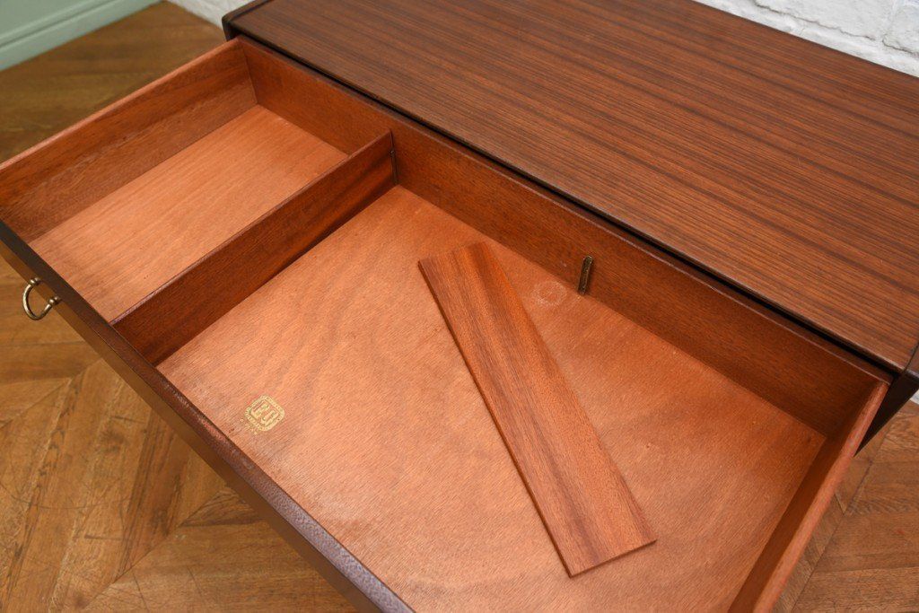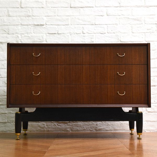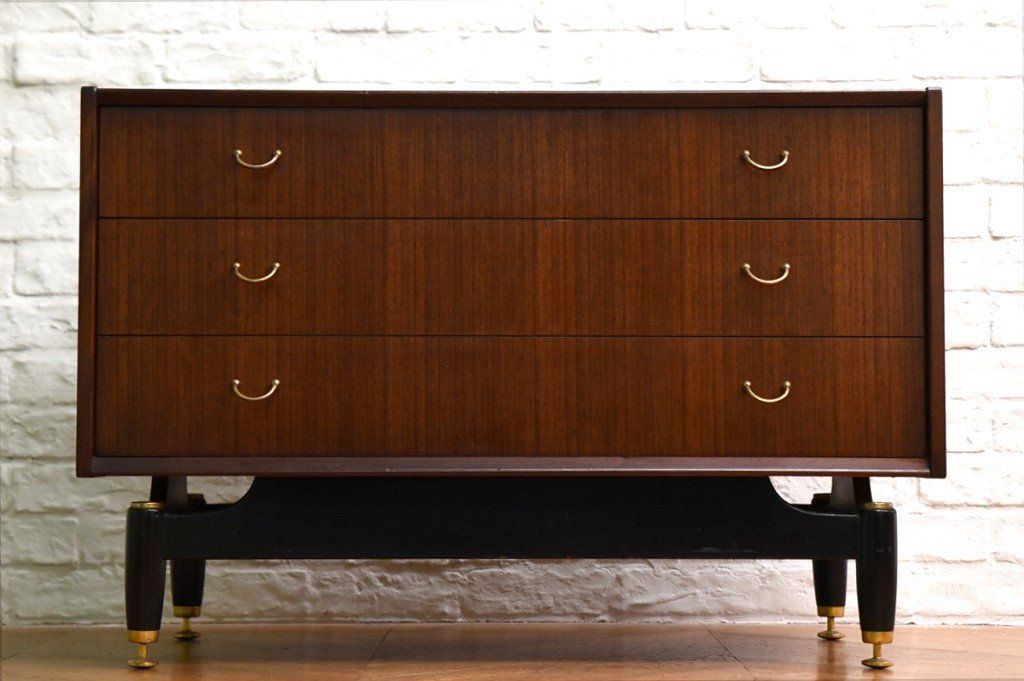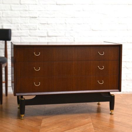 イギリスのミッドセンチュリーを代表するブランド、G-PLAN(ジープラン) Tola&Black ワイド3段チェスト(208)です。