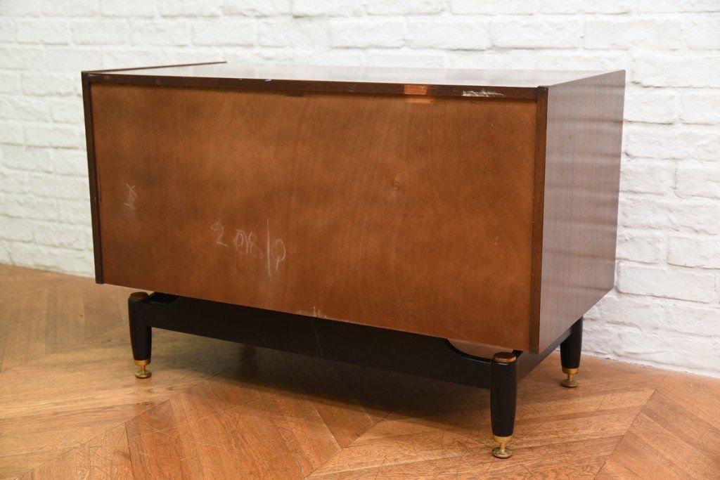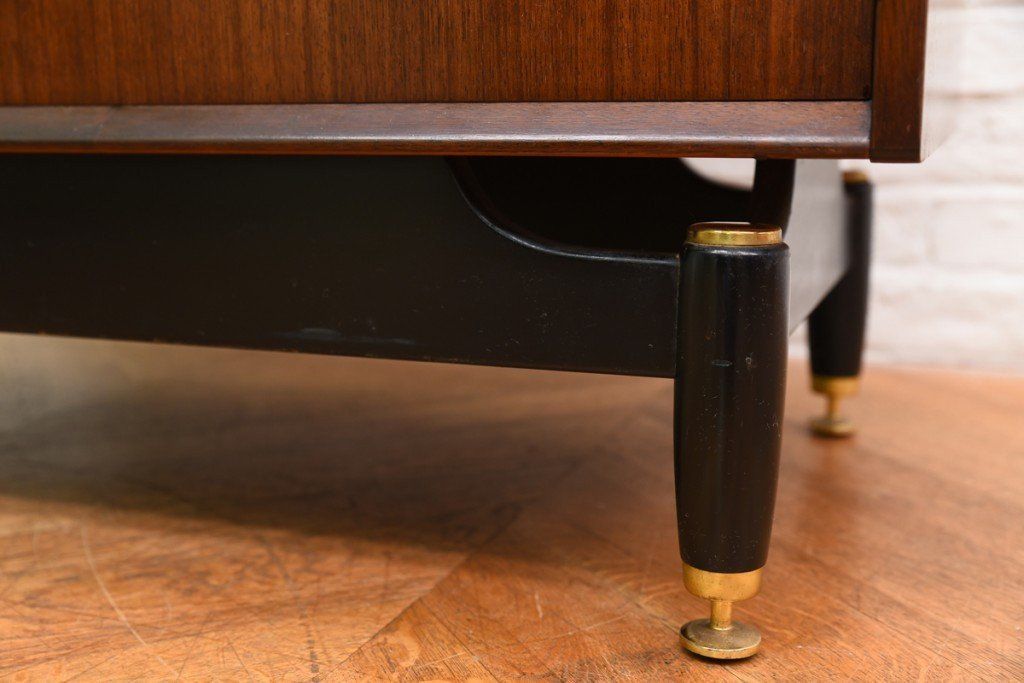 1958年に発売されたTola&Black(トーラ&ブラック)。日本の漆塗りに着想を得てヨーロッパで黒塗りの家具が流行した1950年代に展開されたシリーズです。スタイリッシュで洗練された雰囲気が印象的で、トーラ材の美しい色調とブラックペイントや、真鍮メッキのゴールドのコントラストが目を惹きます。別名BB(Black&Brass)シリーズとも呼ばれ、現在でも人気の高いTola&BlackはG-PLANの中でも流通量が少なく、なかなか手に入りにくい希少価値の高いシリーズです。