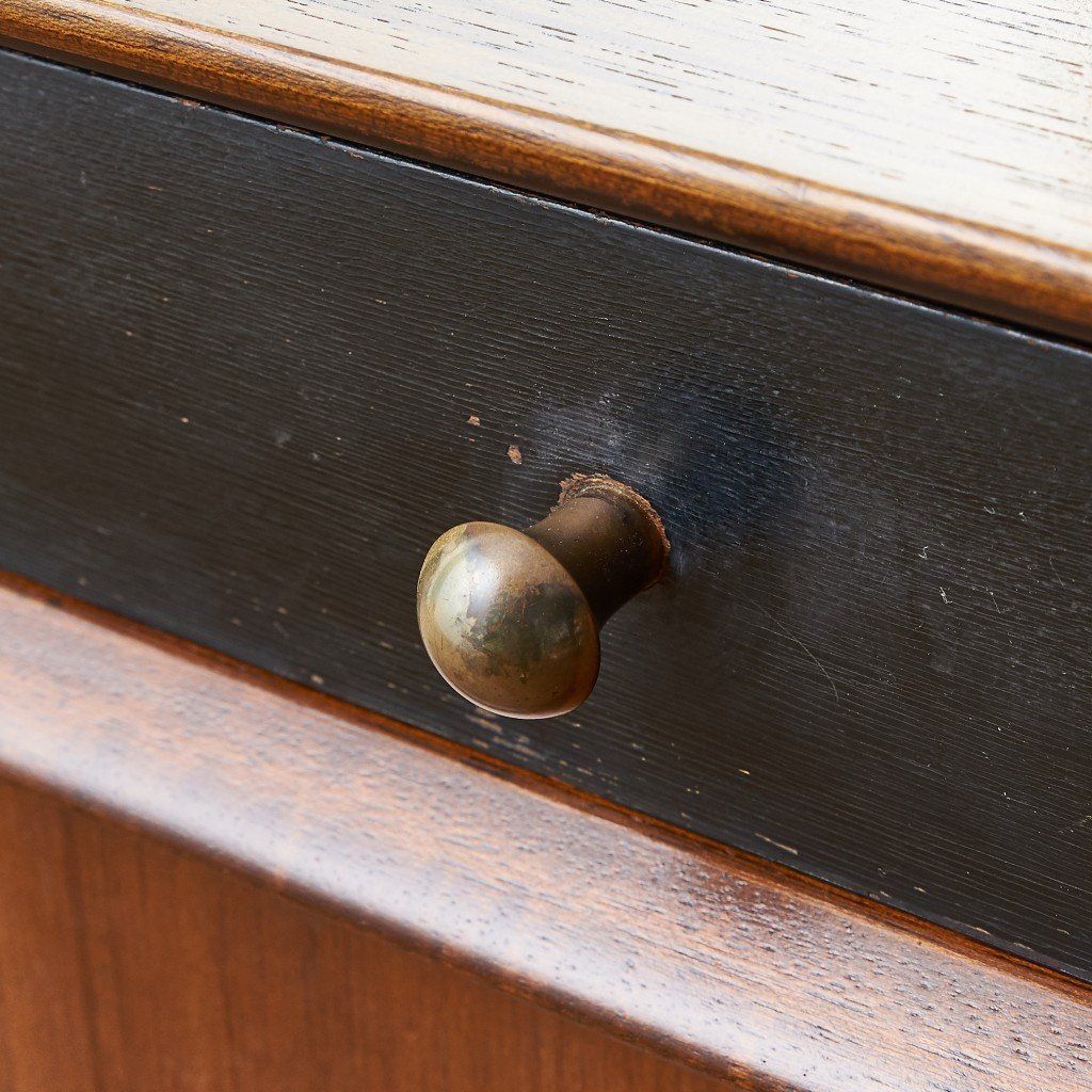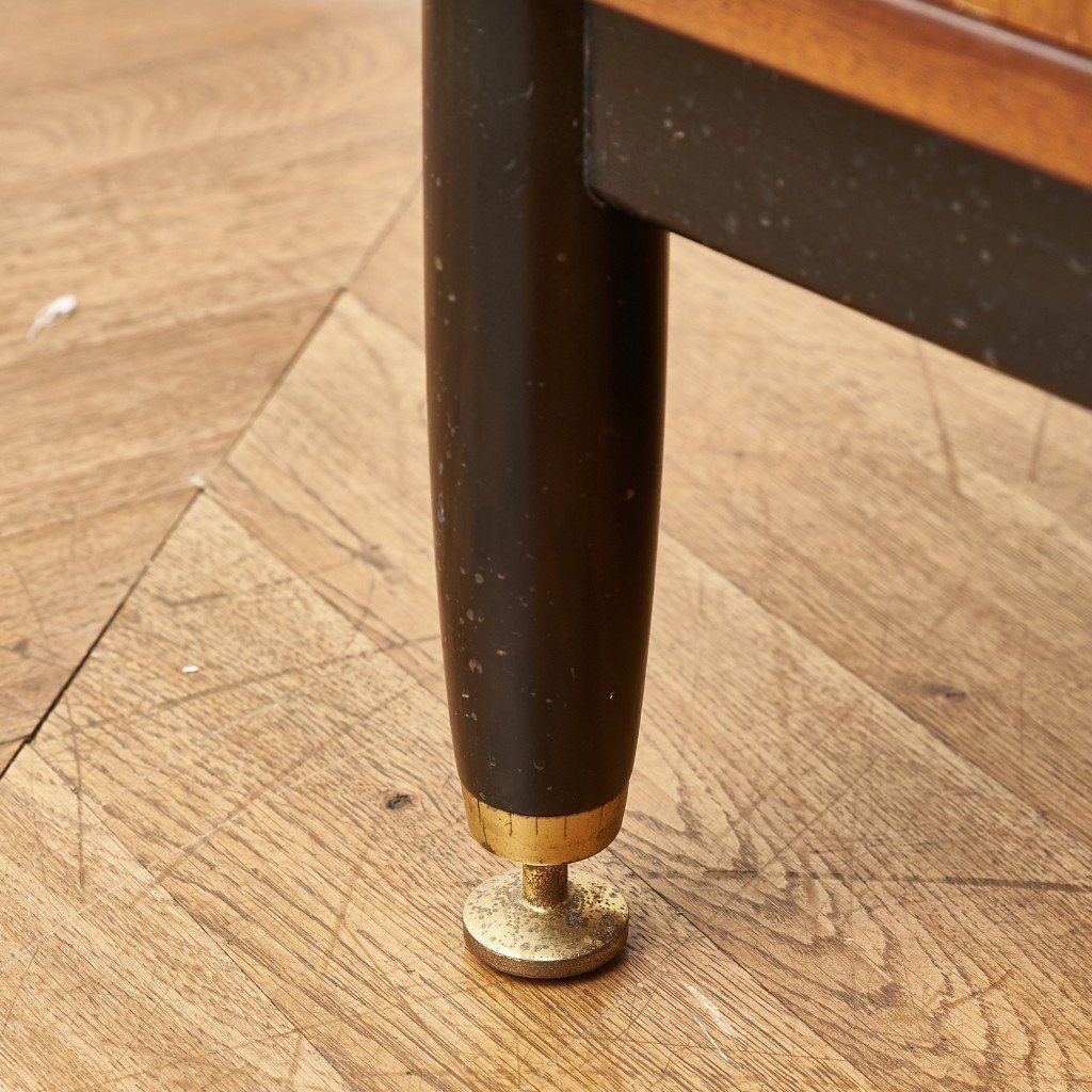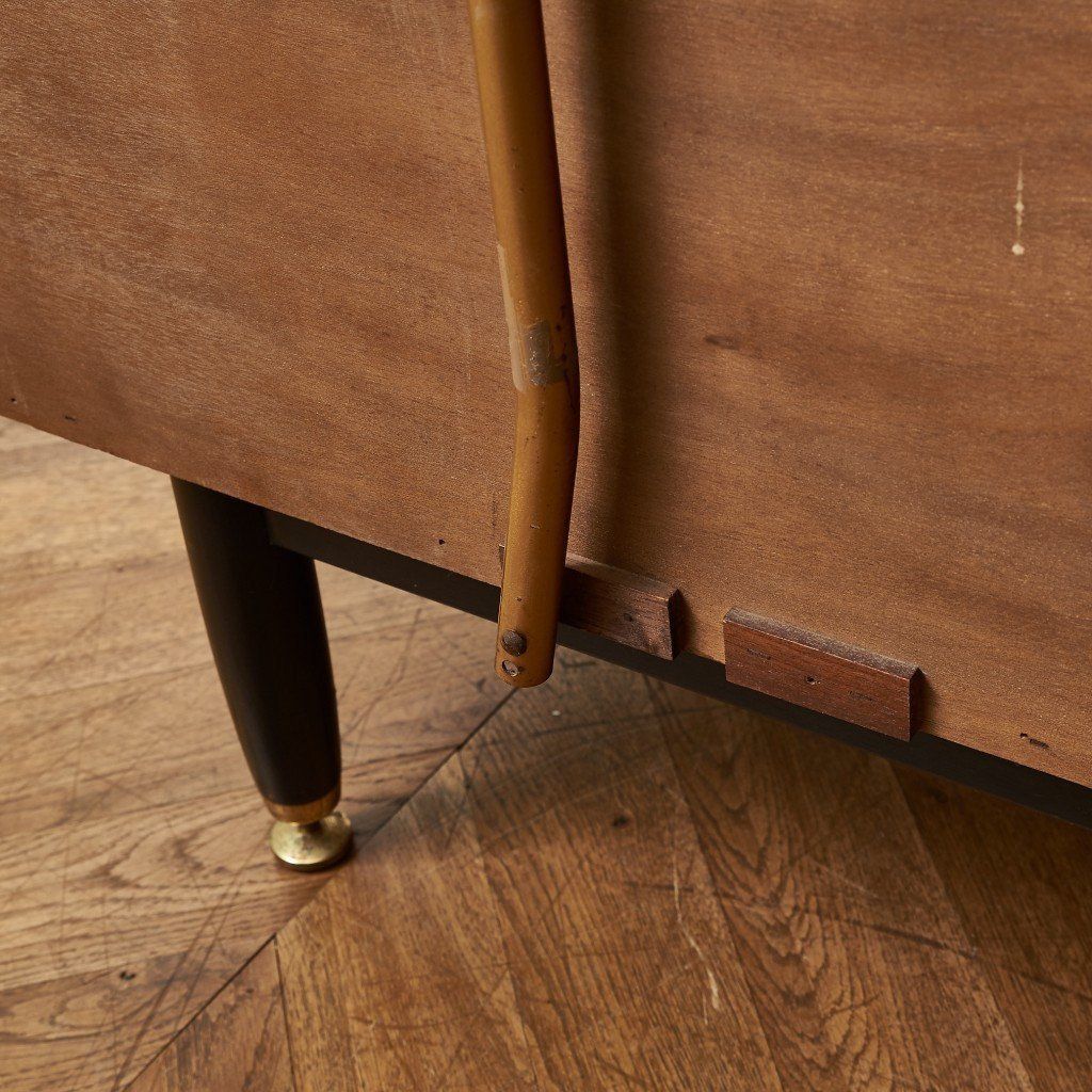 1958年に発売されたTola&Black(トーラ&ブラック)。日本の漆塗りに着想を得てヨーロッパで黒塗りの家具が流行した1950年代に展開されたシリーズです。スタイリッシュで洗練された雰囲気が印象的で、トーラ材の美しい色調とブラックペイントや、真鍮メッキのゴールドのコントラストが目を惹きます。別名BB(Black&Brass)シリーズとも呼ばれ、現在でも人気の高いTola&BlackはG-PLANの中でも流通量が少なく、なかなか手に入りにくい希少価値の高いシリーズです。