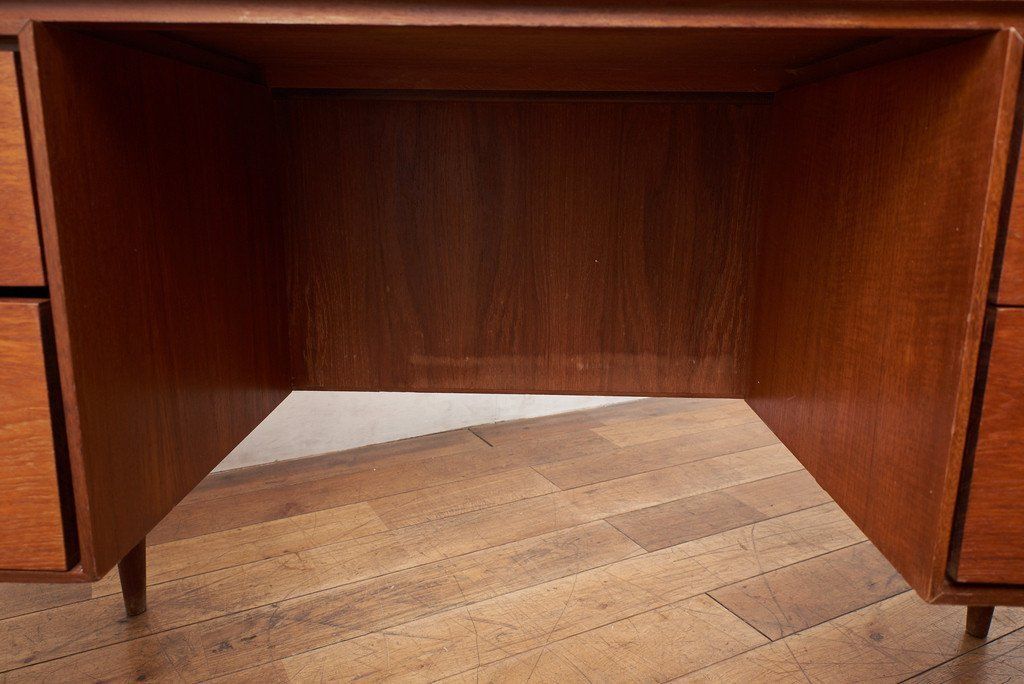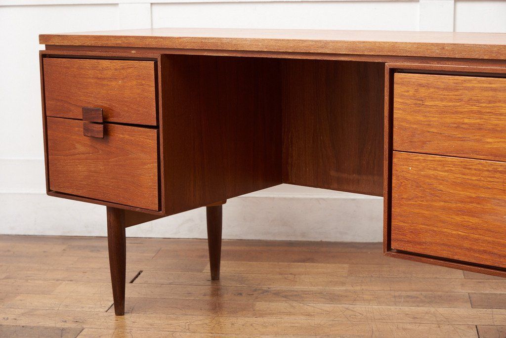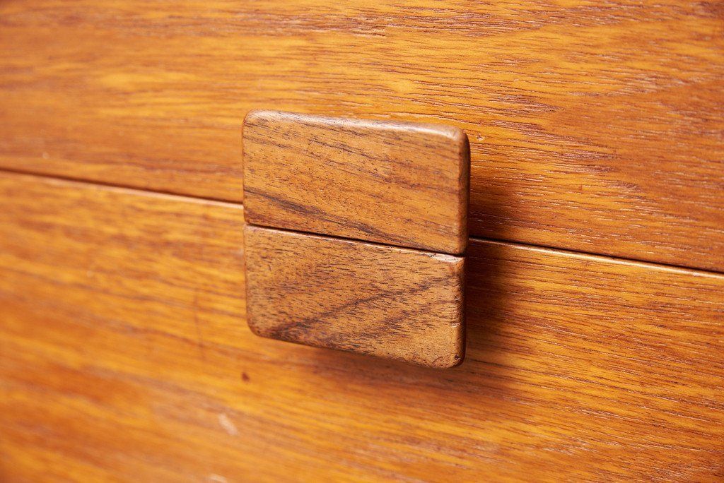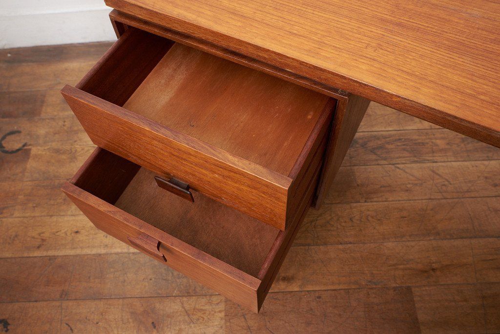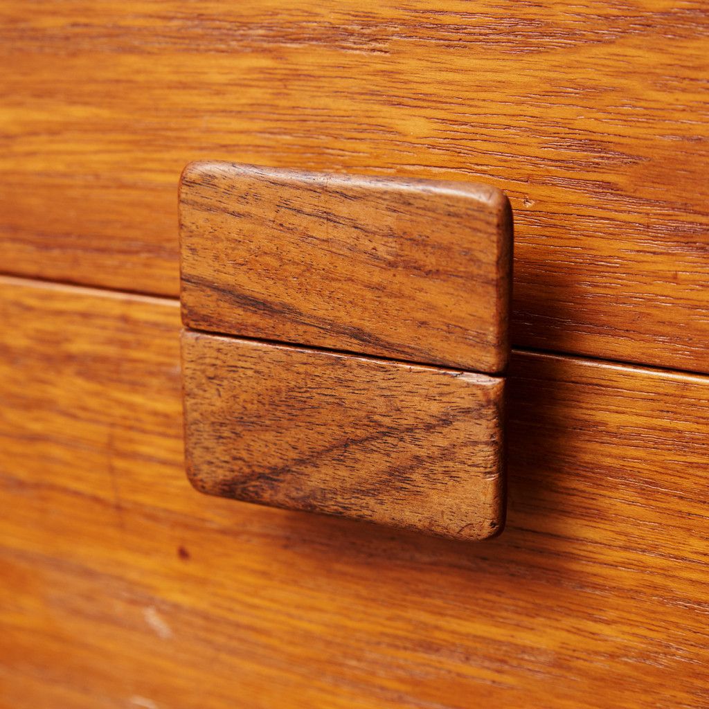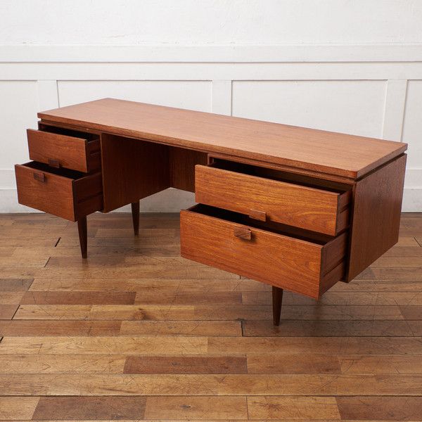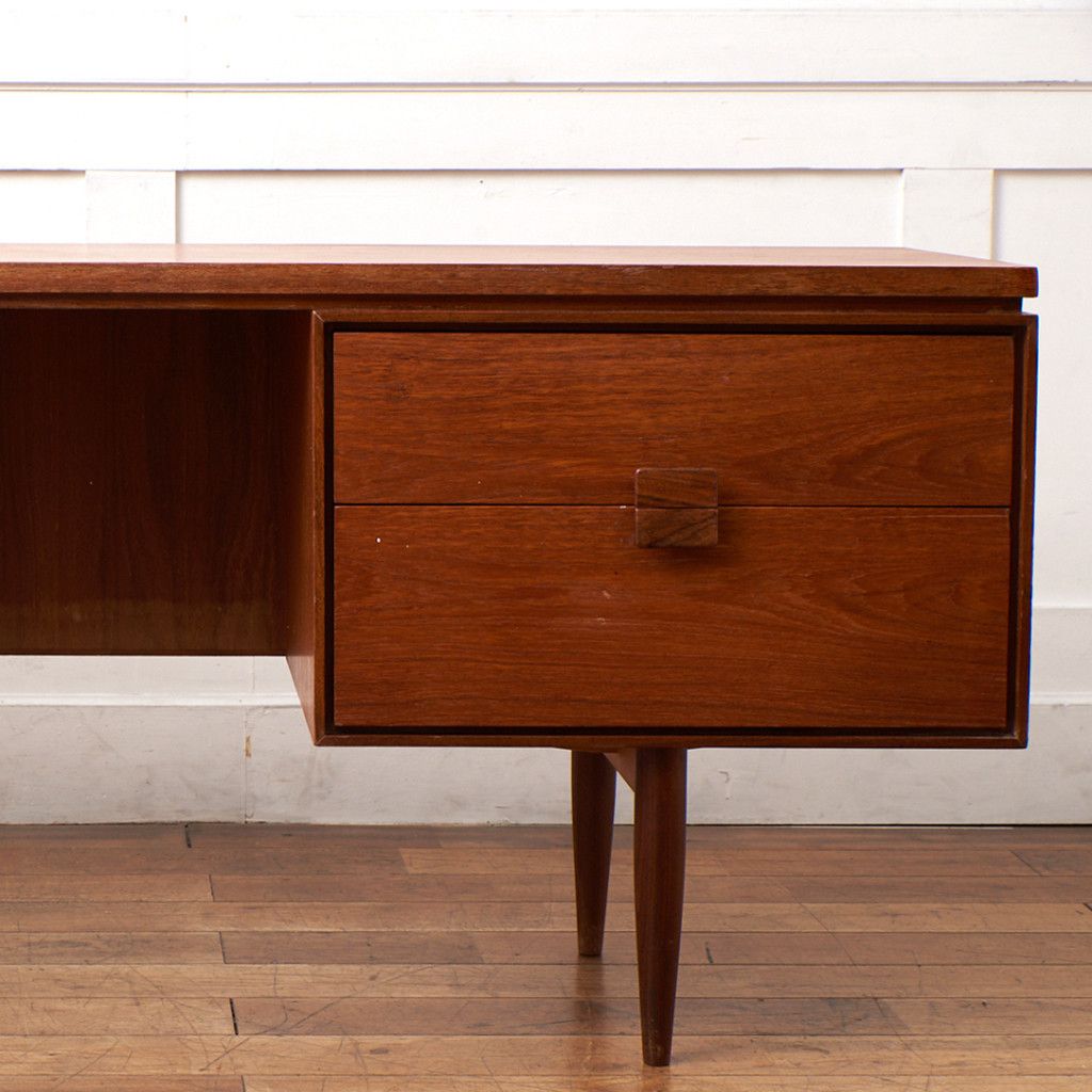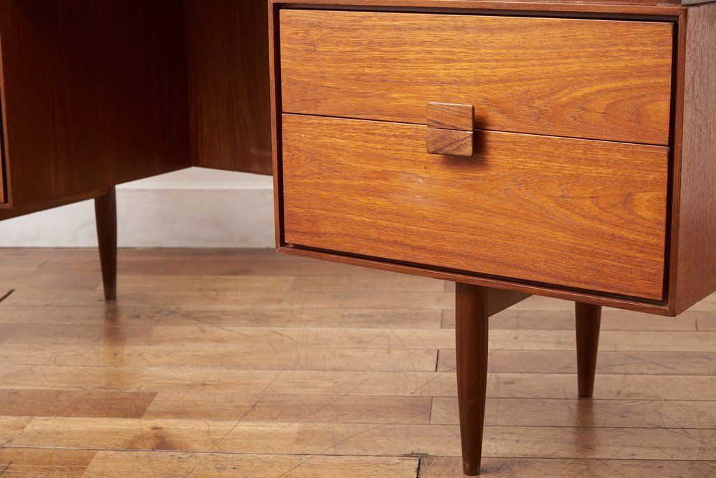 巨匠 Ib Kofod-Larsen(イブ・コフォード・ラーセン)がデザインした、極希少なダニッシュシリーズのドレッシングデスク。良質なチークとアフロモシアが使用され、繊細なディテールの四角い取っ手はローズウッド製です。同時期のイタリアやアメリカのモダンファニチャーの要素も感じられるすっきりと洗練されたデザイン。直線的でシンプルなデザインは外部だけでなく内部も非常に丁寧に作り込まれており、G-PLAN最上級家具シリーズの名に恥じない特別なオーラを放っています。