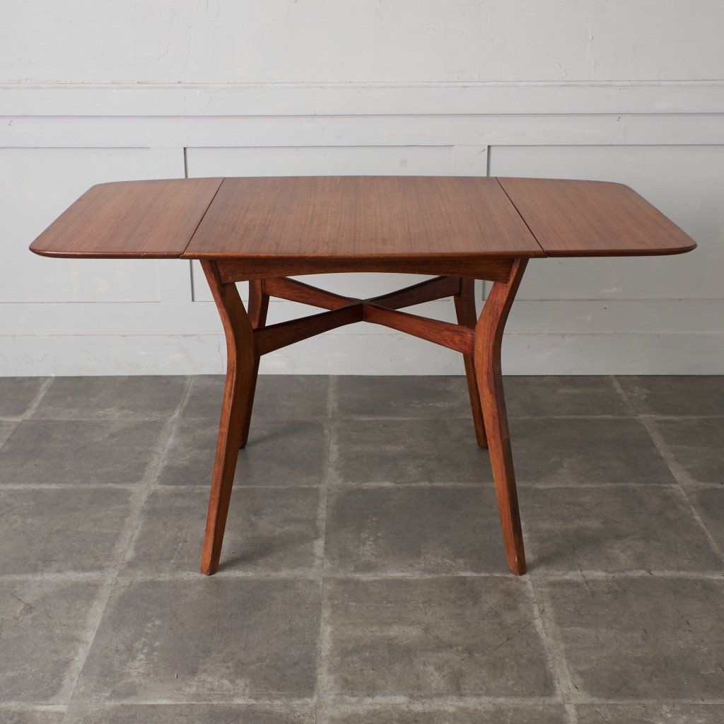 流通の少ない希少なドロップリーフテーブル。フレームがクロスした美しい脚、モダンでスタイリッシュなフォルムは、G-PLANを代表するデザインのひとつと言えます。バタフライテーブルですので片方だけたたんで壁付して使用することも可能、お部屋に合わせたフレキシブルな使い方が可能です。