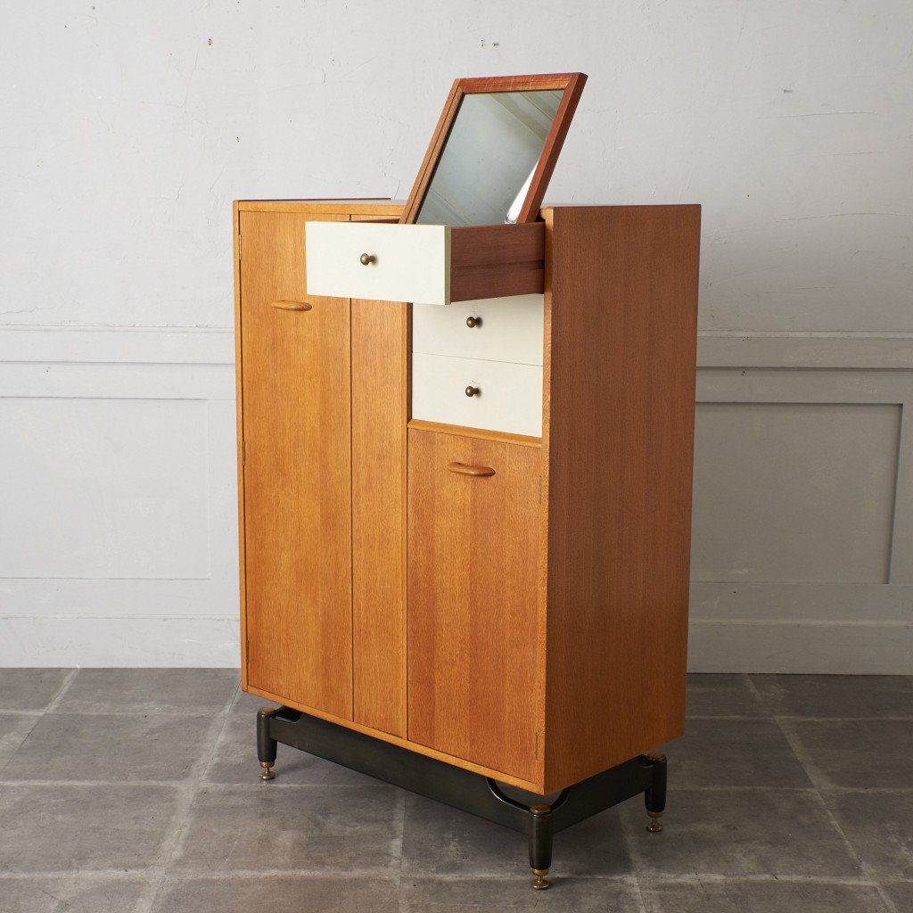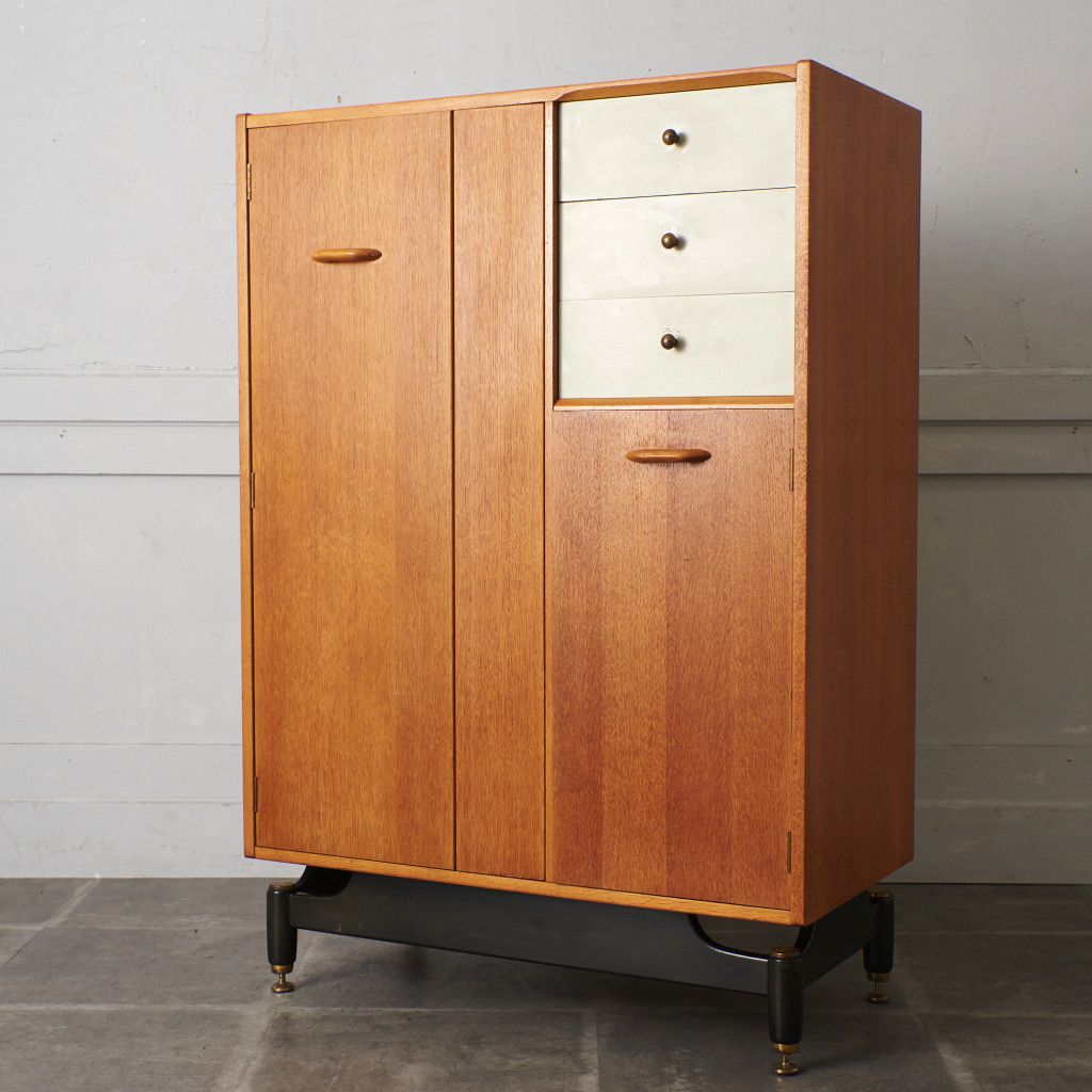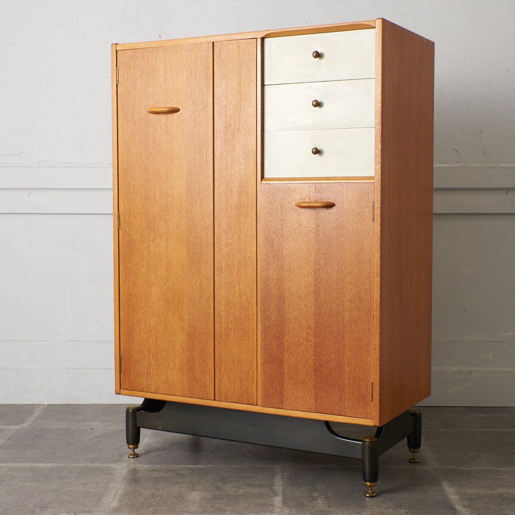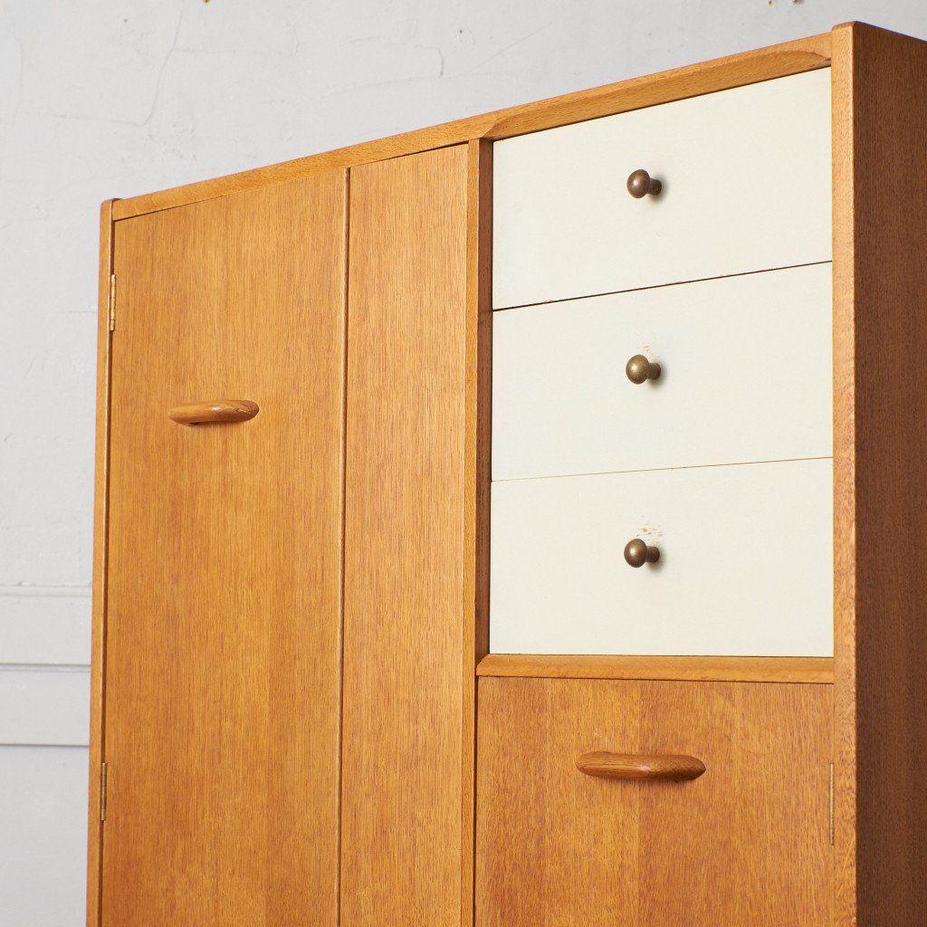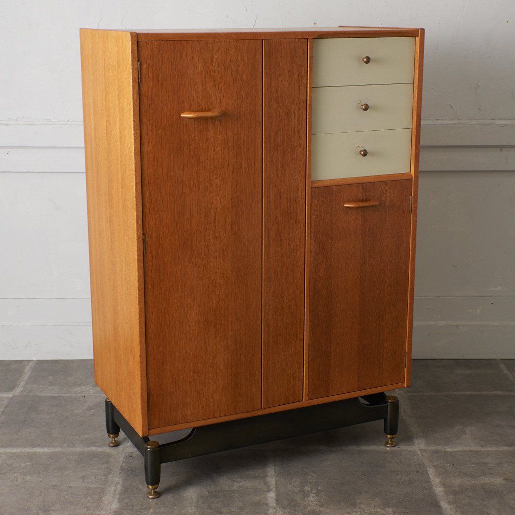 英国ミッドセンチュリーを代表する人気ブランド G-PLAN(ジープラン) による、Chinese white(チャイニーズ ホワイト) シリーズのヴィンテージ トールボーイ ワードローブ (B937) / 初期ゴールドラベルです。