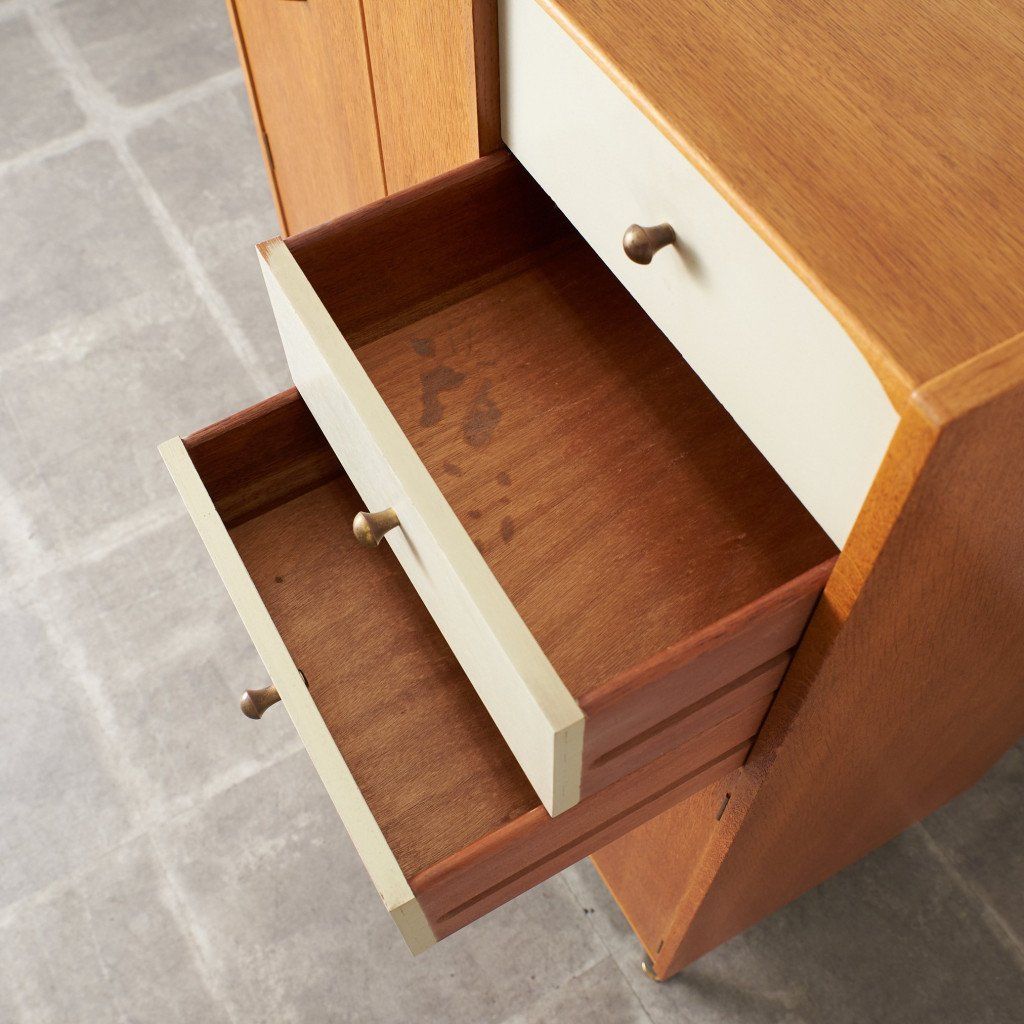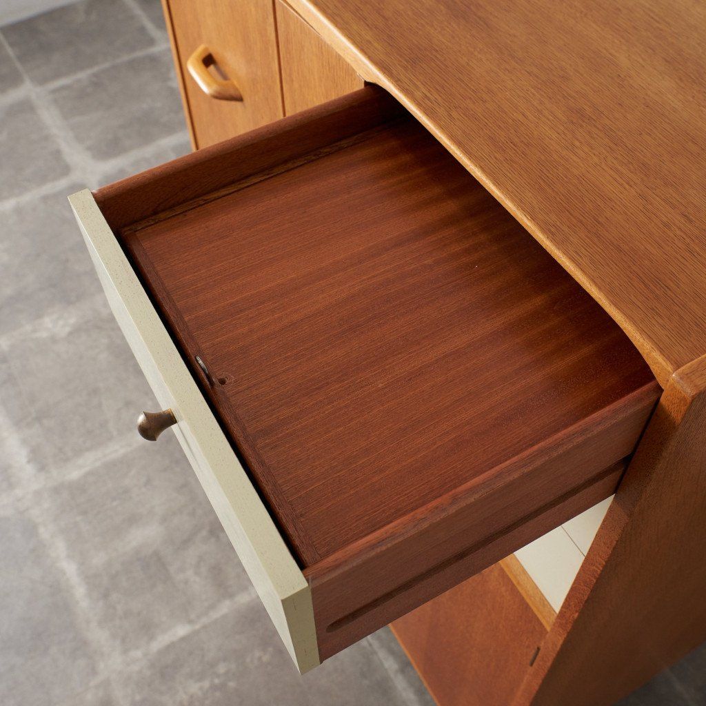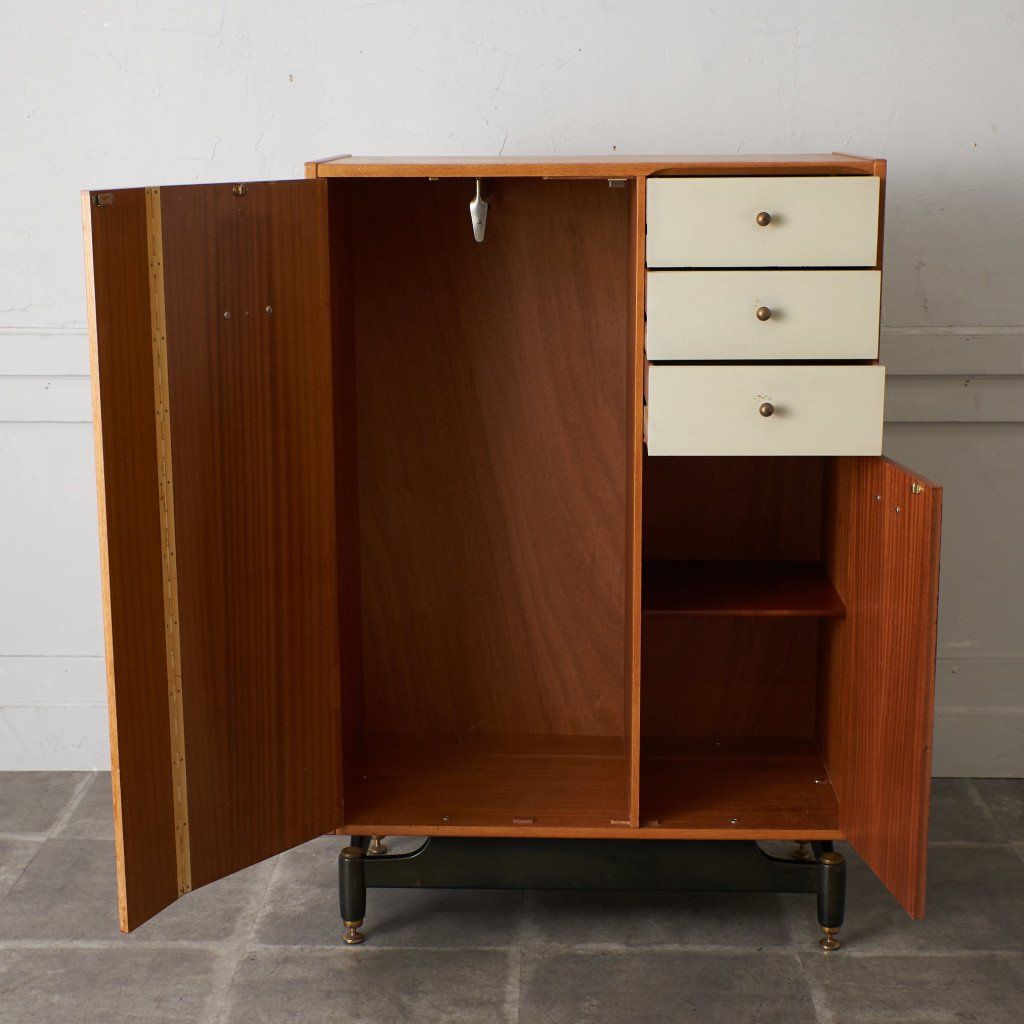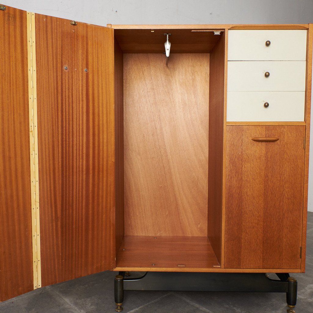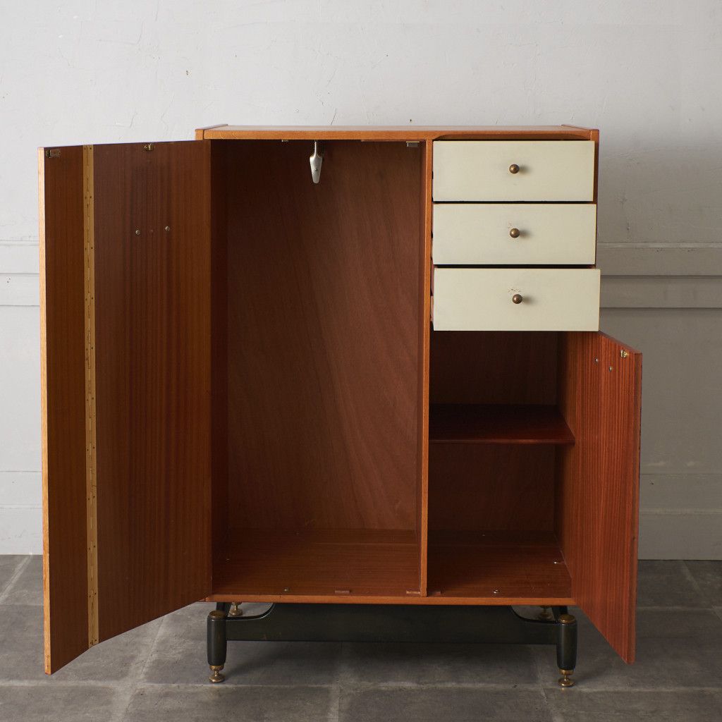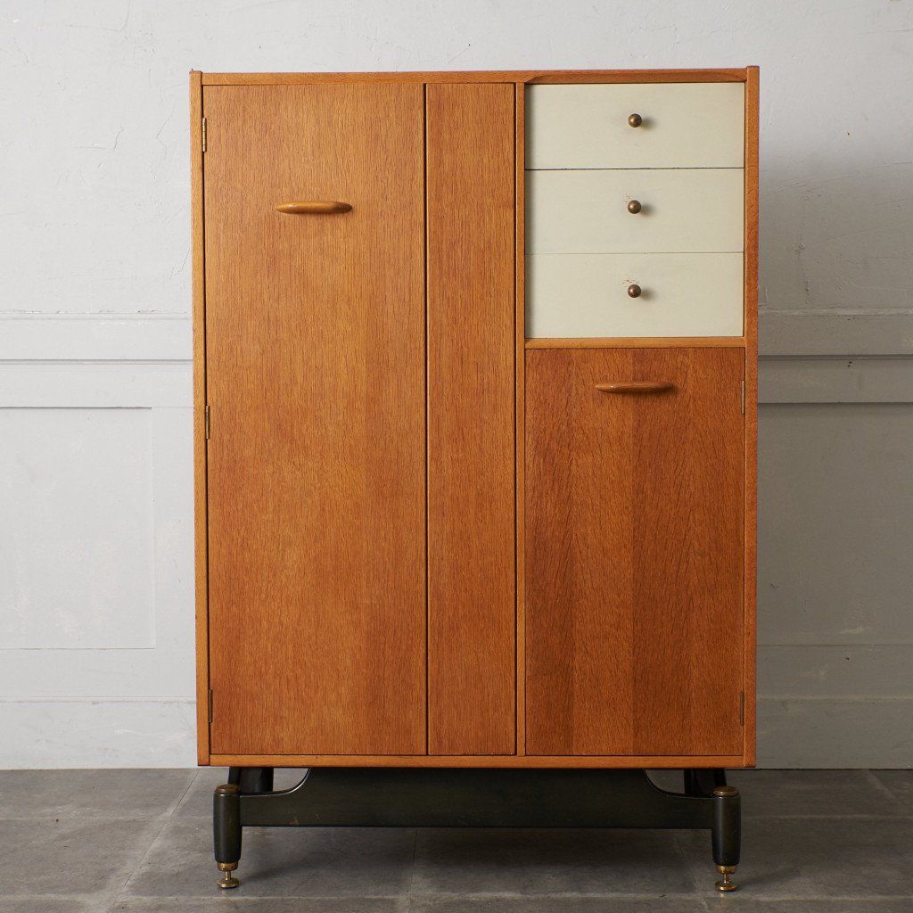 英国ミッドセンチュリーを代表する人気ブランド G-PLAN(ジープラン) による、Chinese white(チャイニーズ ホワイト) シリーズのヴィンテージ トールボーイ ワードローブ (B937) / 初期ゴールドラベルです。