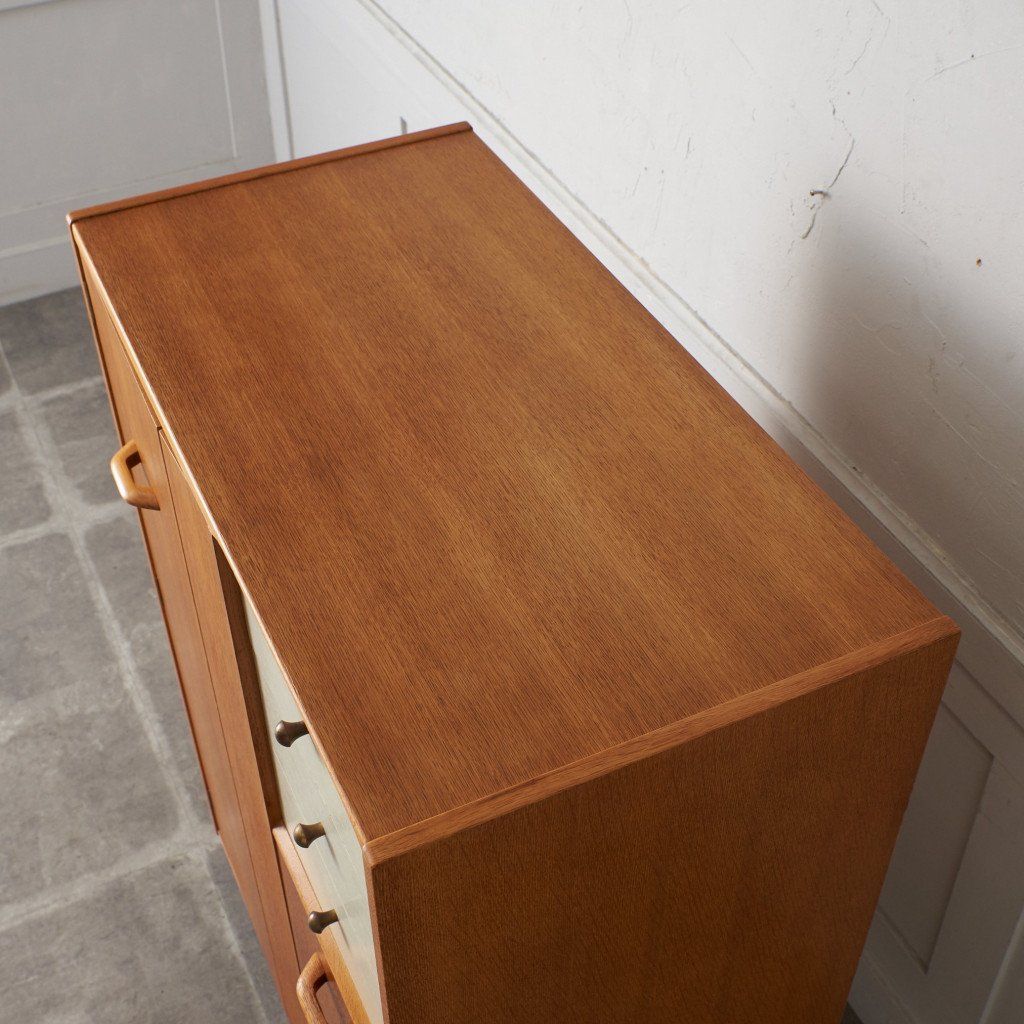 当時「コンパクトで省スペースな作品で、どの部屋、ホール、踊り場にも最適」として1956年に発売した Chinese white シリーズ。真鍮金具がアクセントの、エレガントながら英国らしいスタイリッシュな雰囲気が印象的です。同時期にはレアな類似シリーズ Tola&black が販売されておりますが、Chinese white は、日本のヴィンテージ市場にて希少価値が高く、さらに手に入りにくいシリーズとなっております。