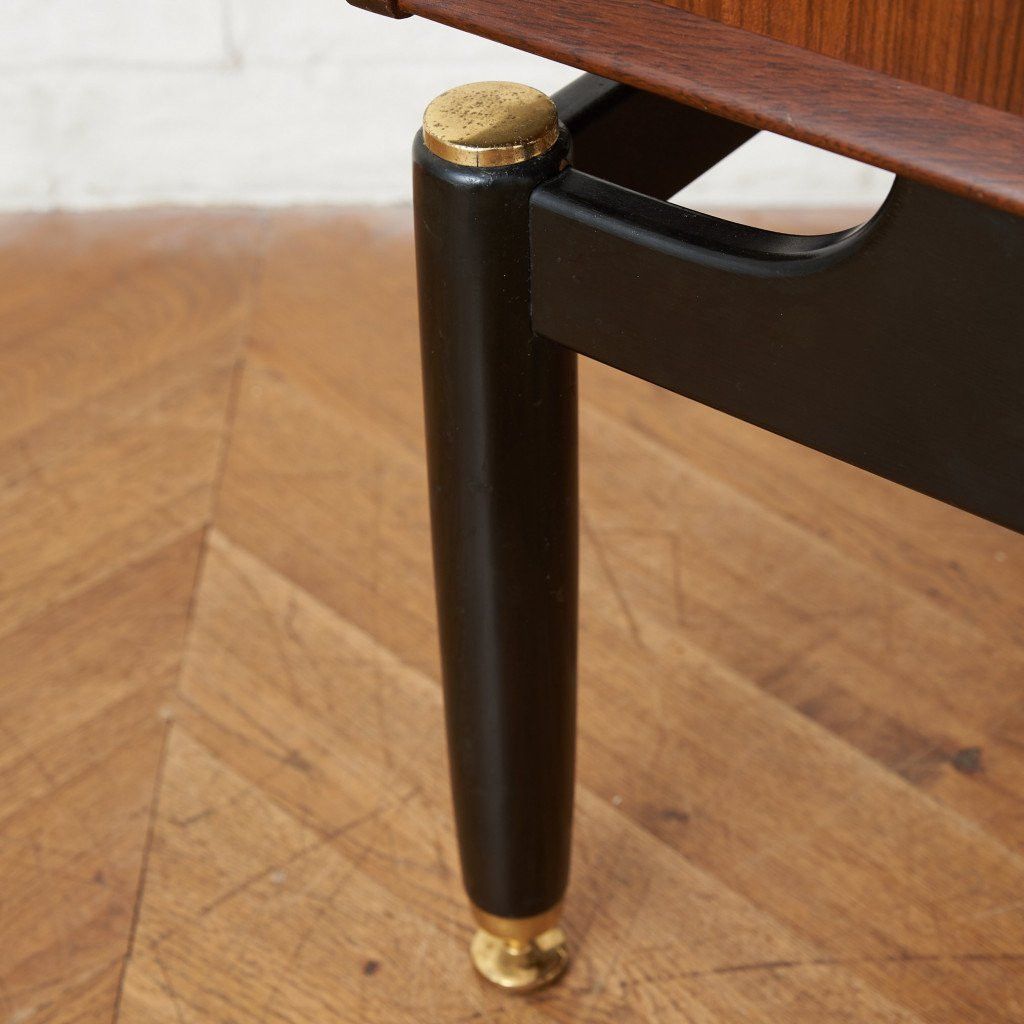 1958年に発売されたTola&Black(トーラ&ブラック)。日本の漆塗りに着想を得てヨーロッパで黒塗りの家具が流行した1950年代に展開されたシリーズです。スタイリッシュで洗練された雰囲気が印象的で、トーラ材の美しい色調とブラックペイントや、真鍮メッキのゴールドのコントラストが目を惹きます。別名BB(Black&Brass)シリーズとも呼ばれ、現在でも人気の高いTola&BlackはG-PLANの中でも流通量が少なく、なかなか手に入りにくい希少価値の高いシリーズです。