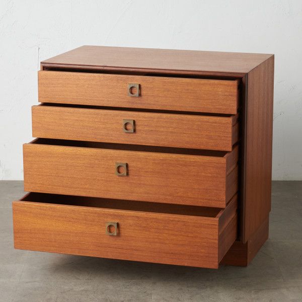 イギリスのミッドセンチュリーを代表するブランド、G-PLAN(ジープラン)社による、Roger Bennett(ロジャー・ベネット)デザイン、Form FIVE(フォーム・ファイブ)シリーズの4段チェストです。
