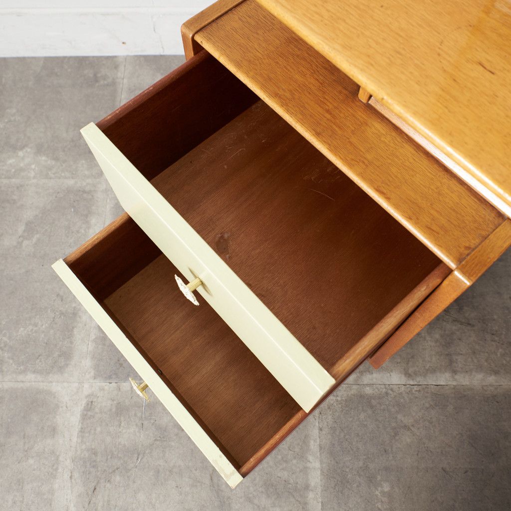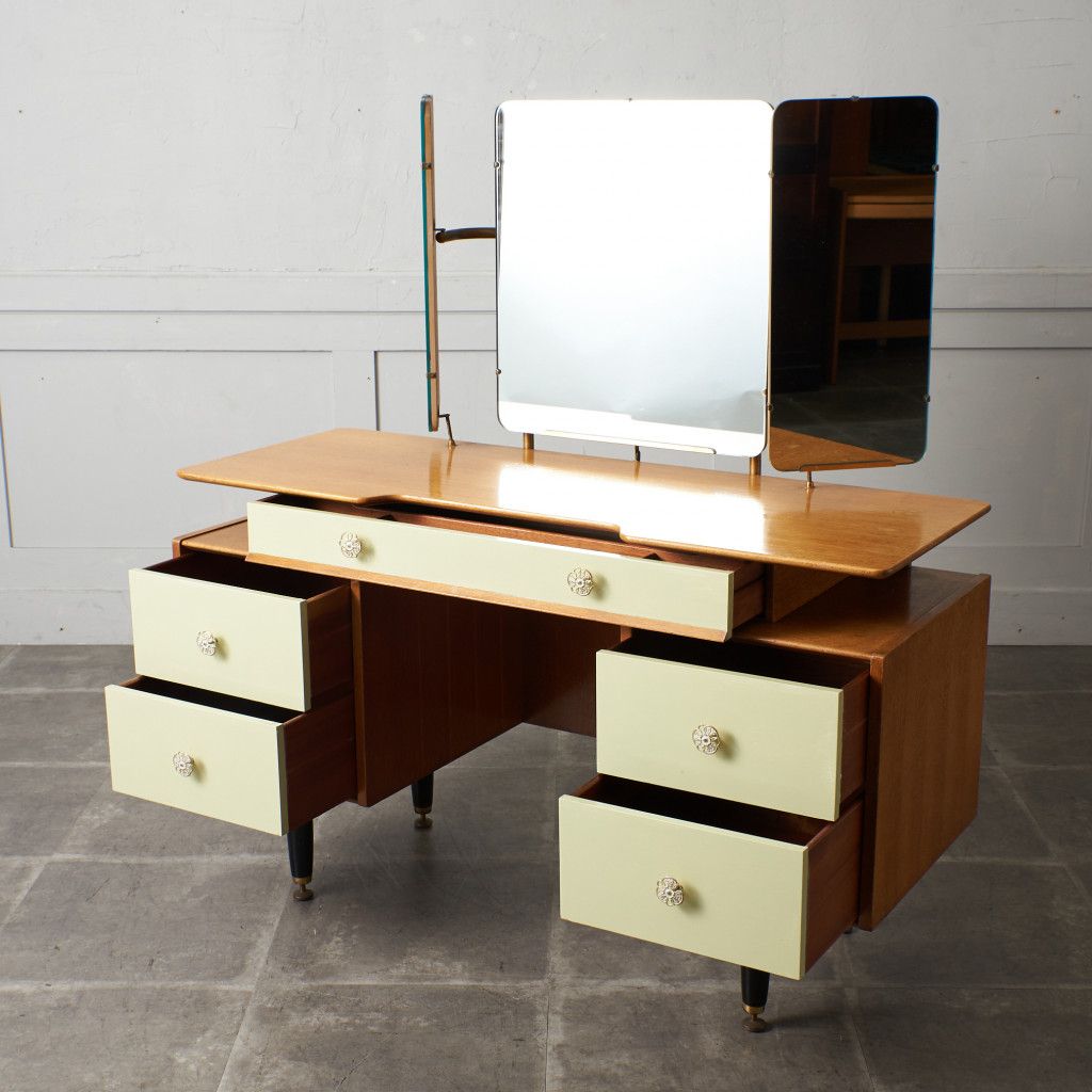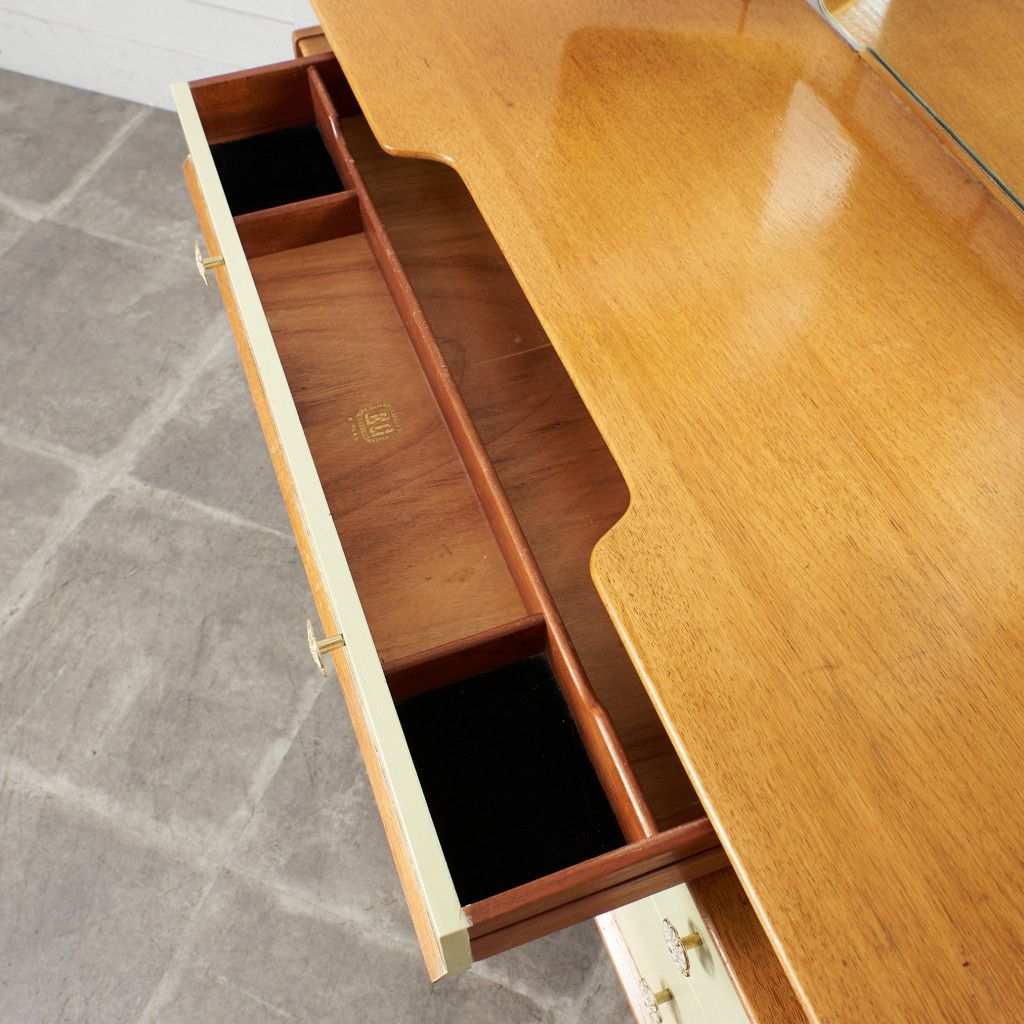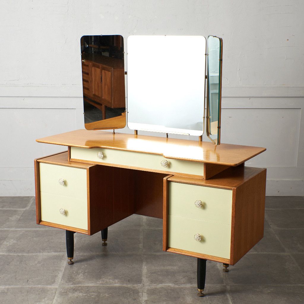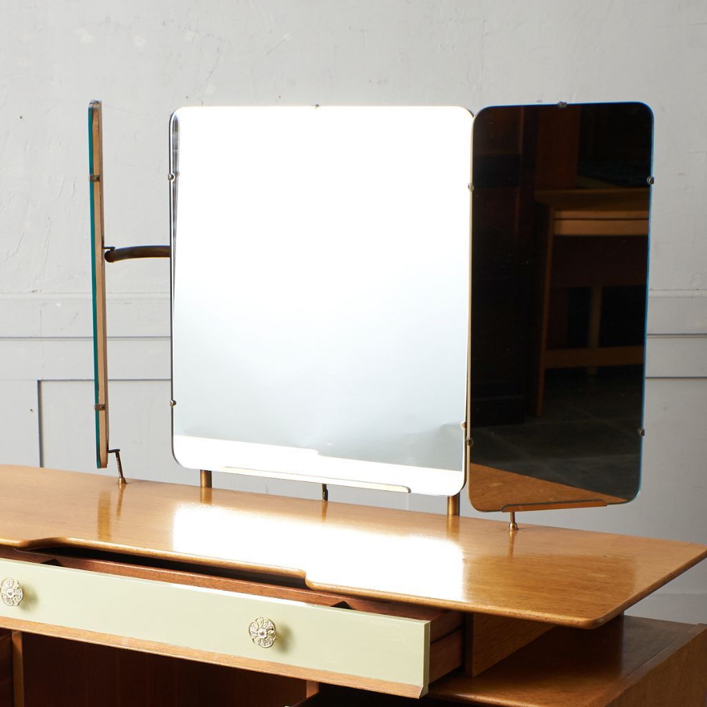 英国ミッドセンチュリーを象徴するブランド G-PLAN(ジープラン) による、Chinese white(チャイニーズホワイト) シリーズ、トリプルミラー ドレッサーデスクです。