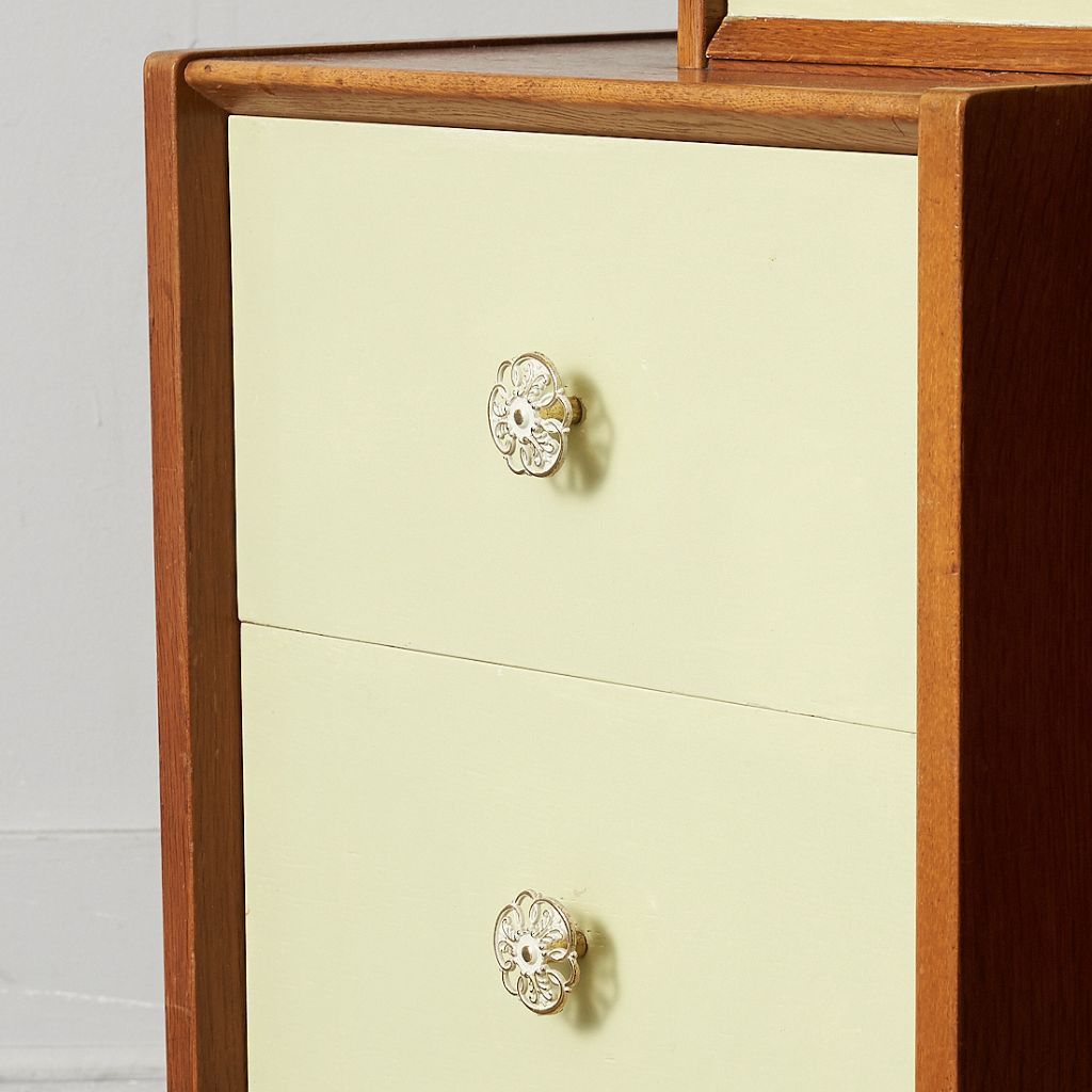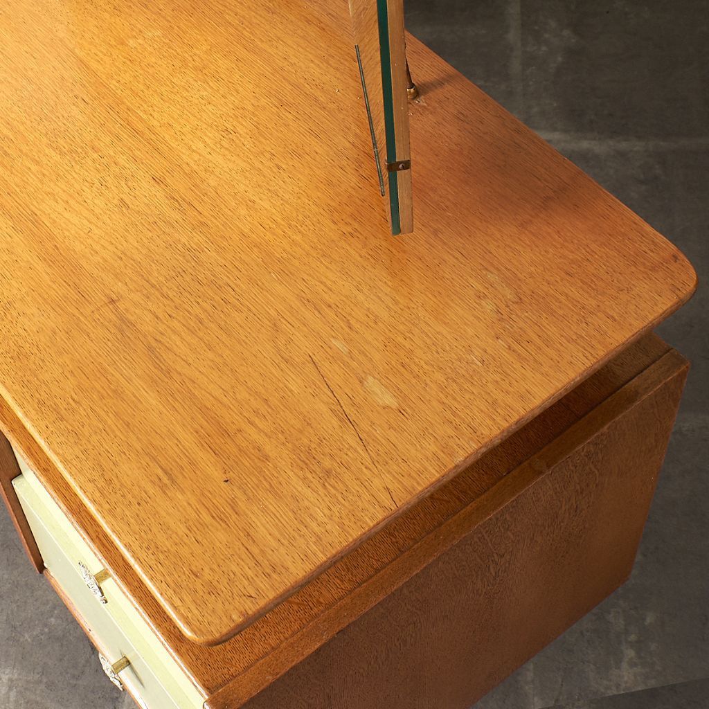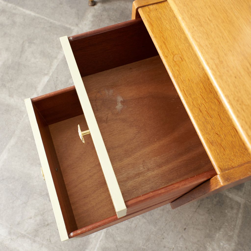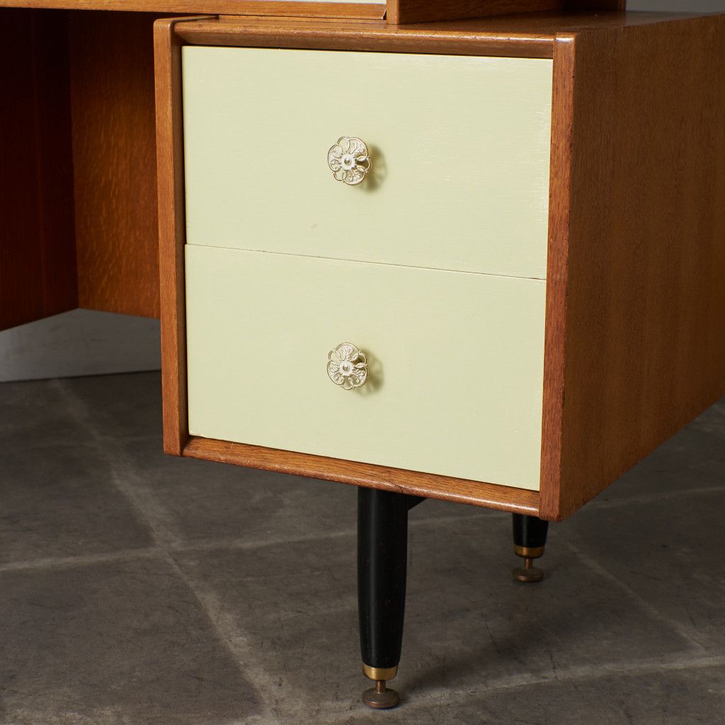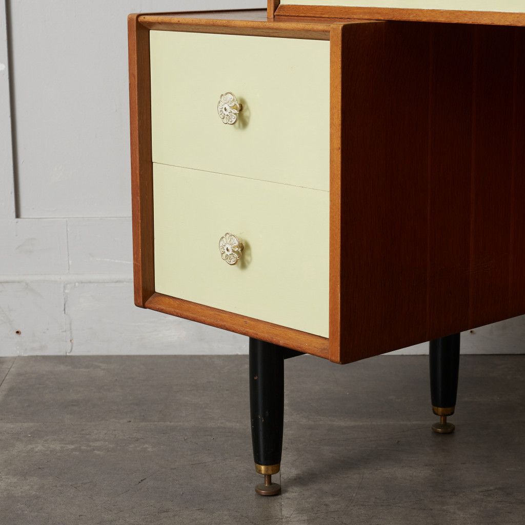 英国ミッドセンチュリーを象徴するブランド G-PLAN(ジープラン) による、Chinese white(チャイニーズホワイト) シリーズ、トリプルミラー ドレッサーデスクです。