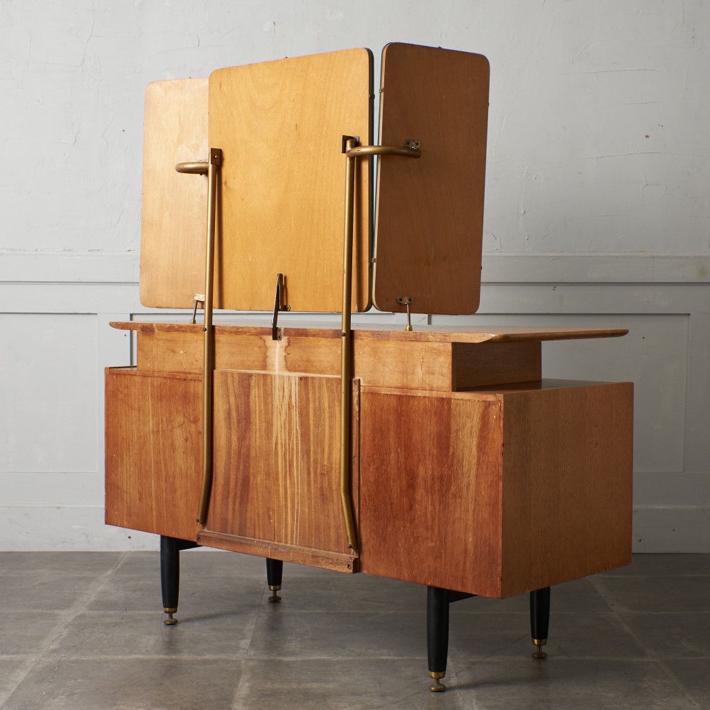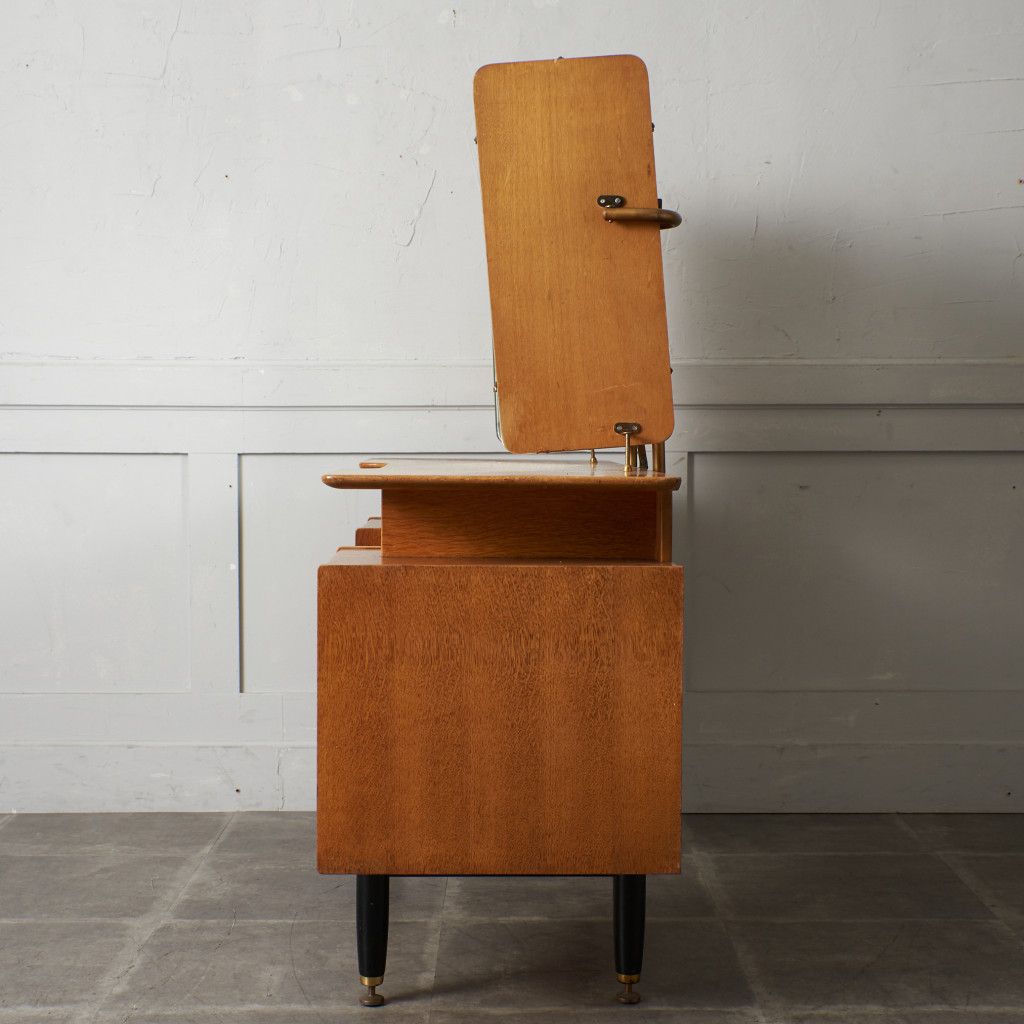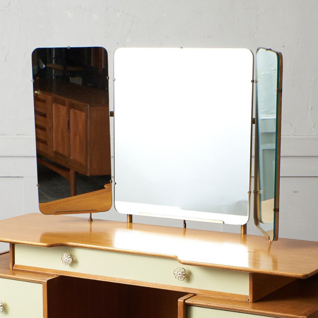 シリーズの中でも特に流通量の少ないレアモデルの三面鏡ドレッサー。中央の鏡は上下に回転可能。美しいデザインだけではなく実用性も抜群です。