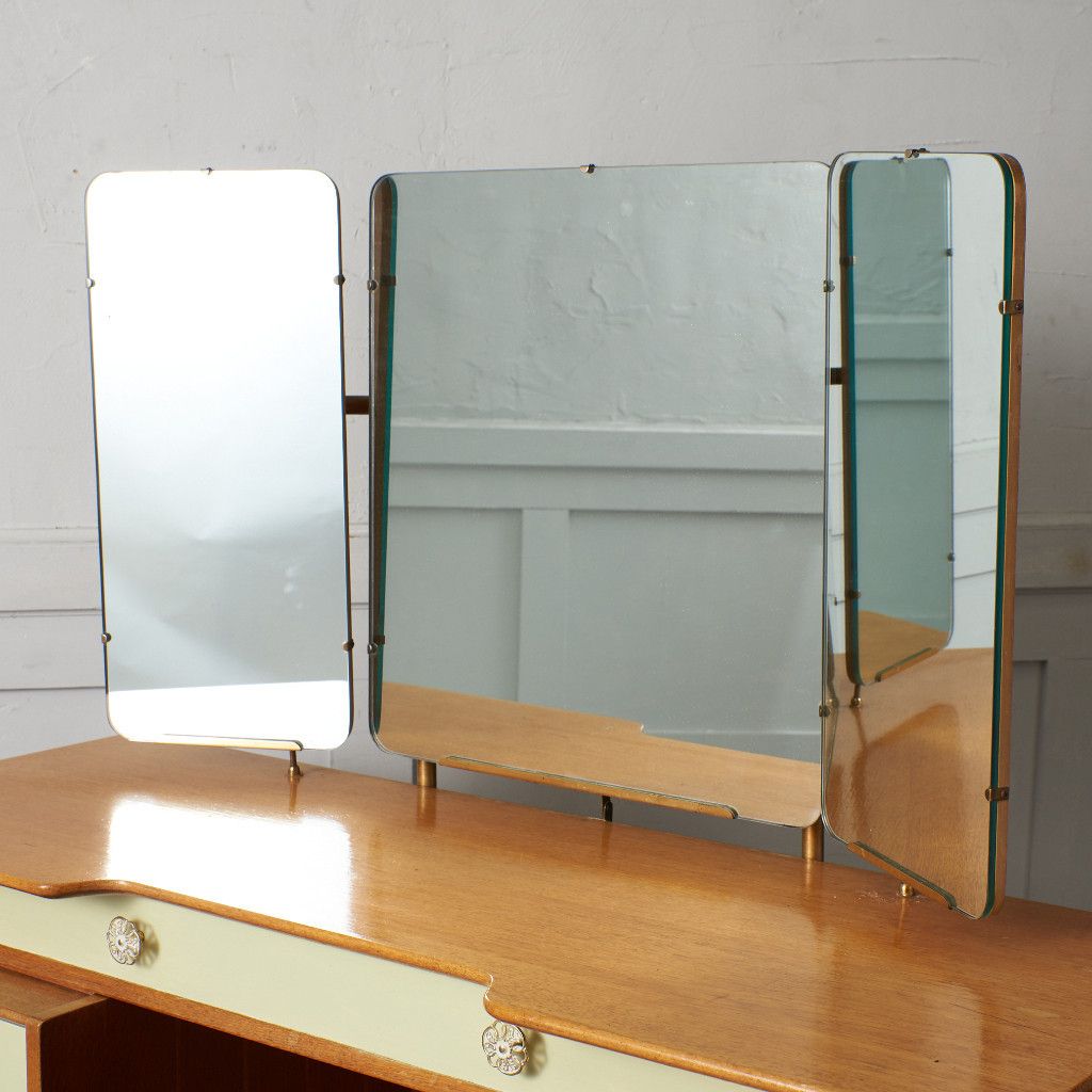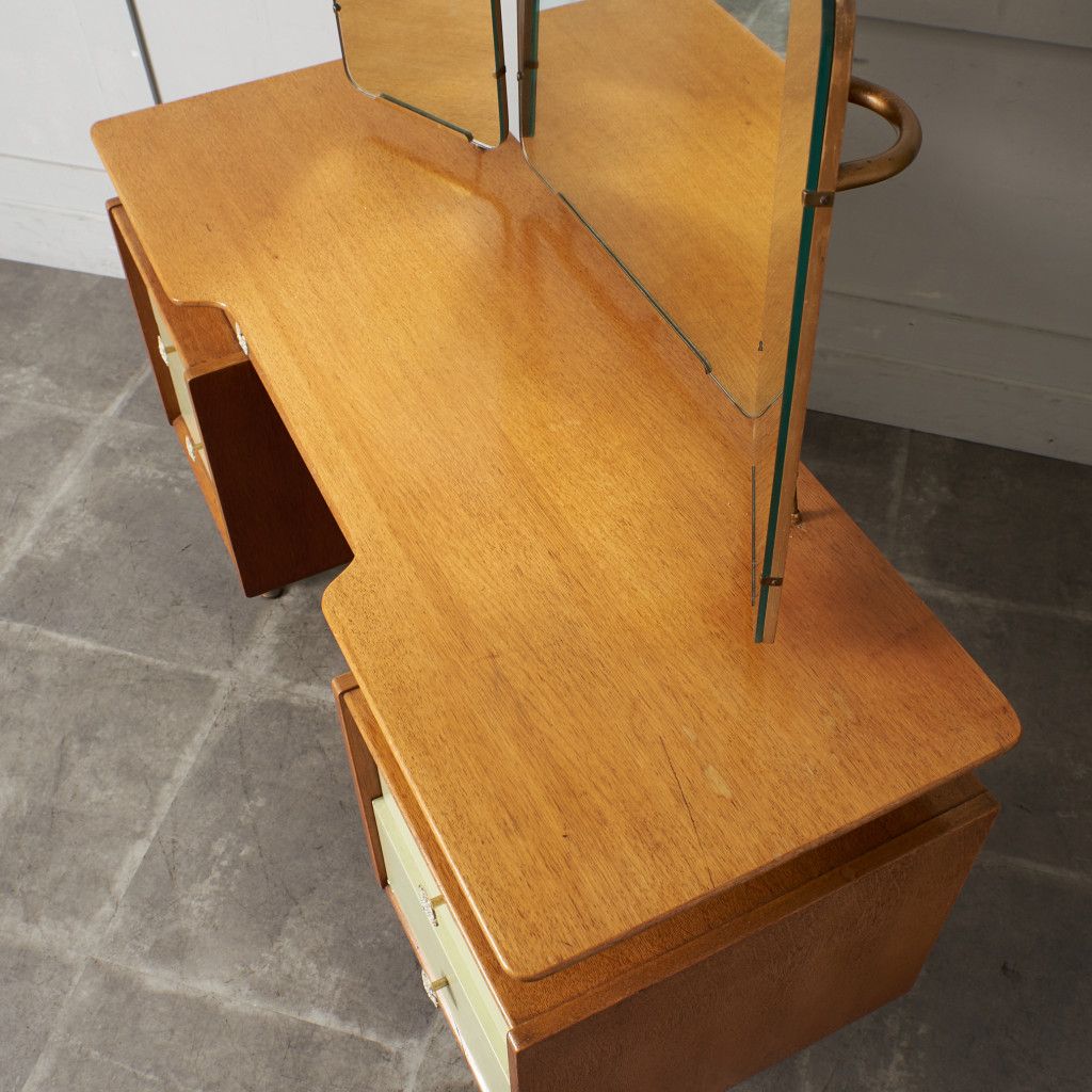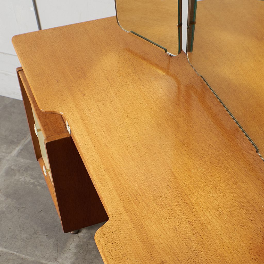 シリーズの中でも特に流通量の少ないレアモデルの三面鏡ドレッサー。中央の鏡は上下に回転可能。美しいデザインだけではなく実用性も抜群です。