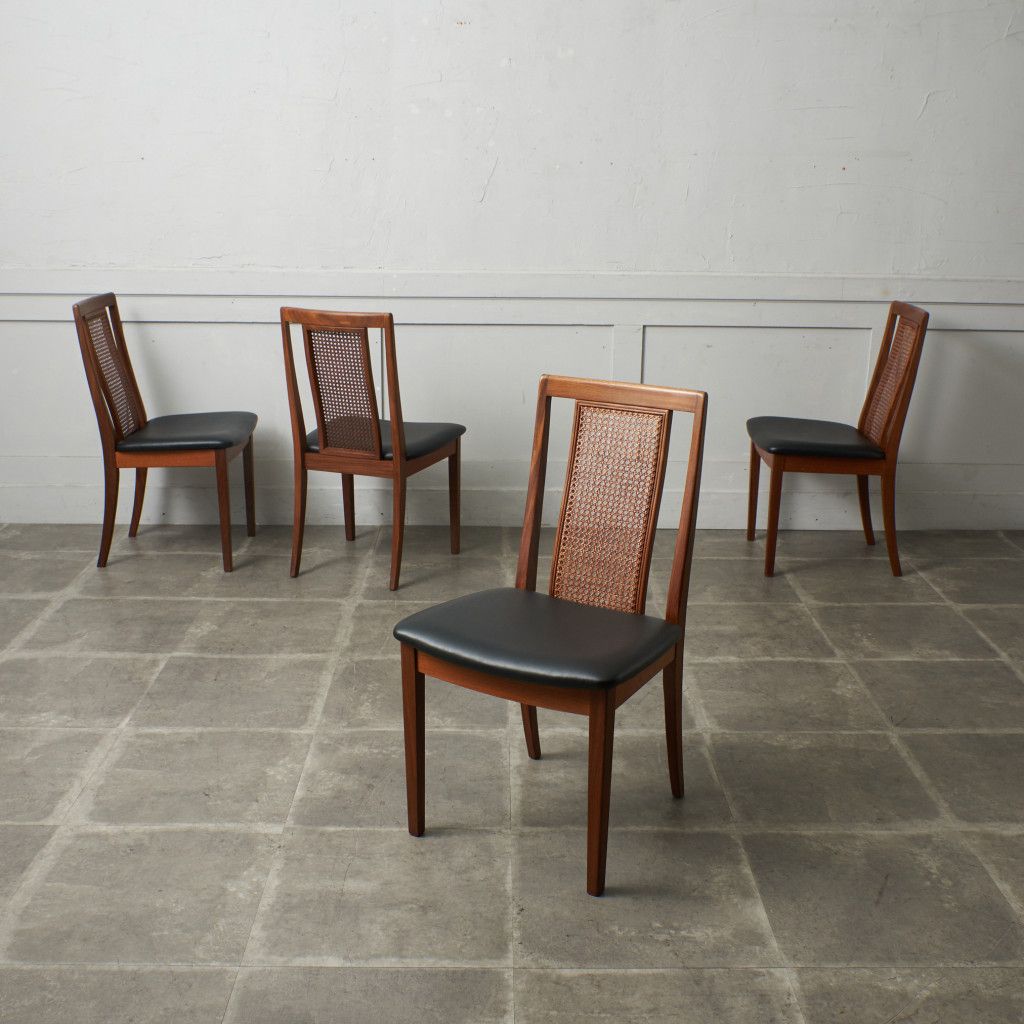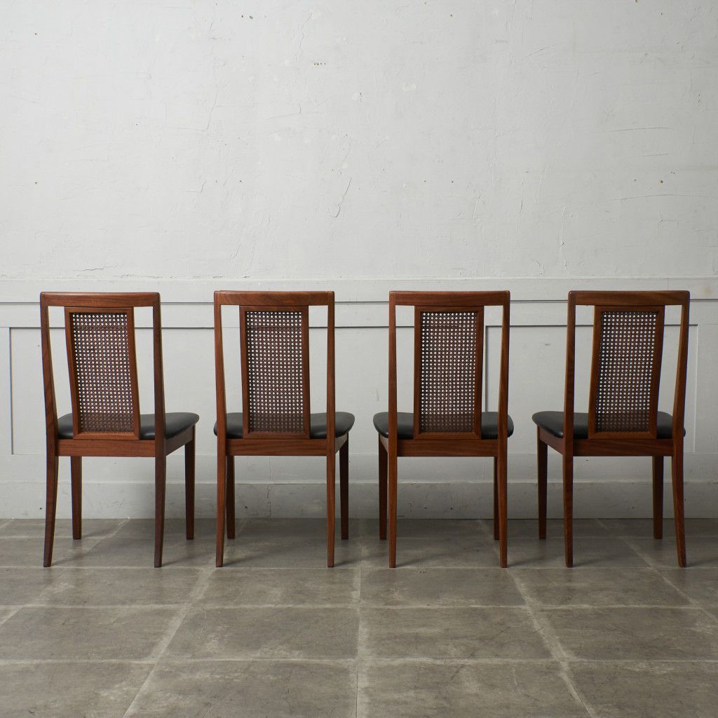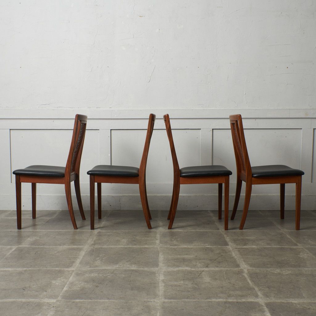 イギリスにおいてミッドセンチュリーを代表するブランドG-PLAN(ジープラン)による、Victor Bramwell Wilkins(ビクター・ブラムウェル・ウィルキンス ) フレスコシリーズ ケインバックチェア 4脚セットです。