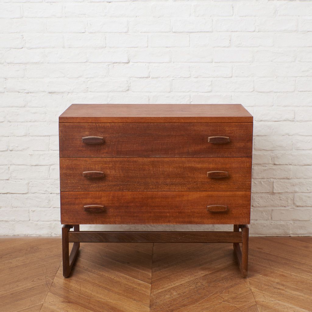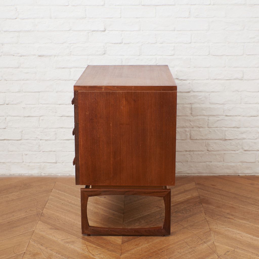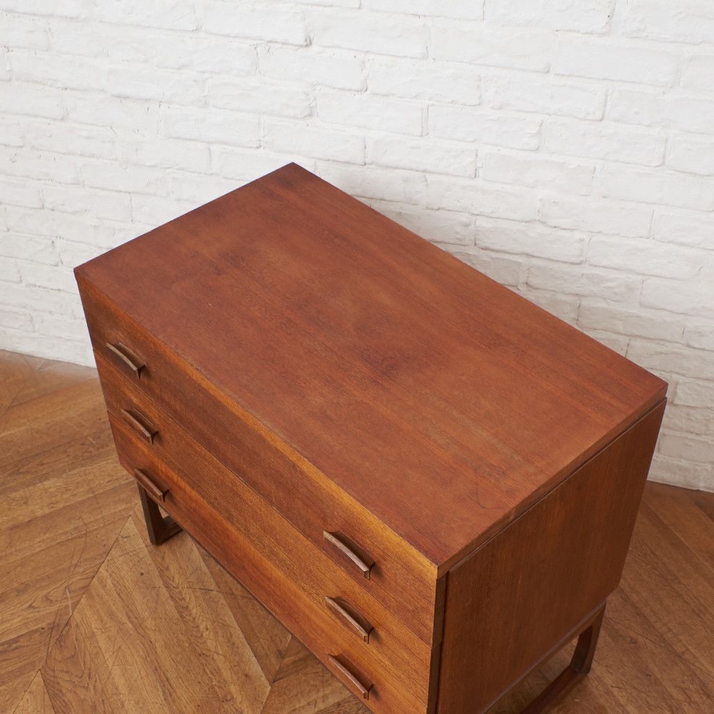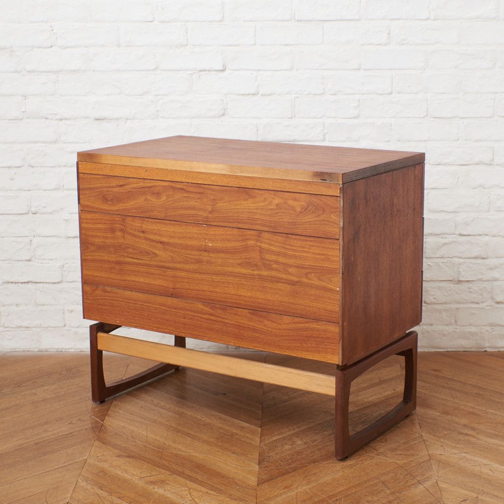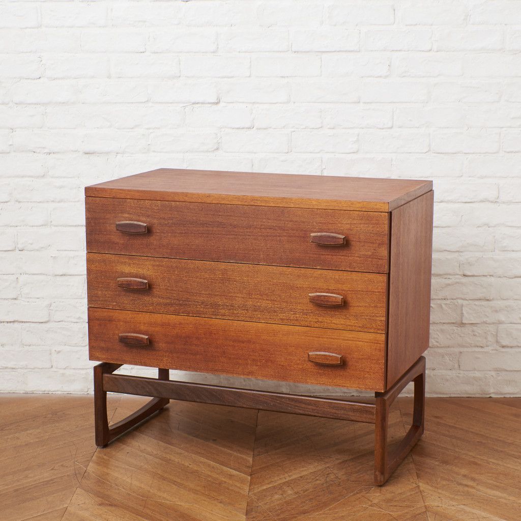 英国ミッドセンチュリーの筆頭ブランド G-PLAN(ジープラン) による、Roger Bennett(ロジャー・ベネット) デザイン、Quadrille(クヮドリール) 3段チェストです。