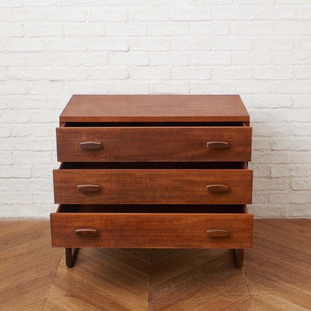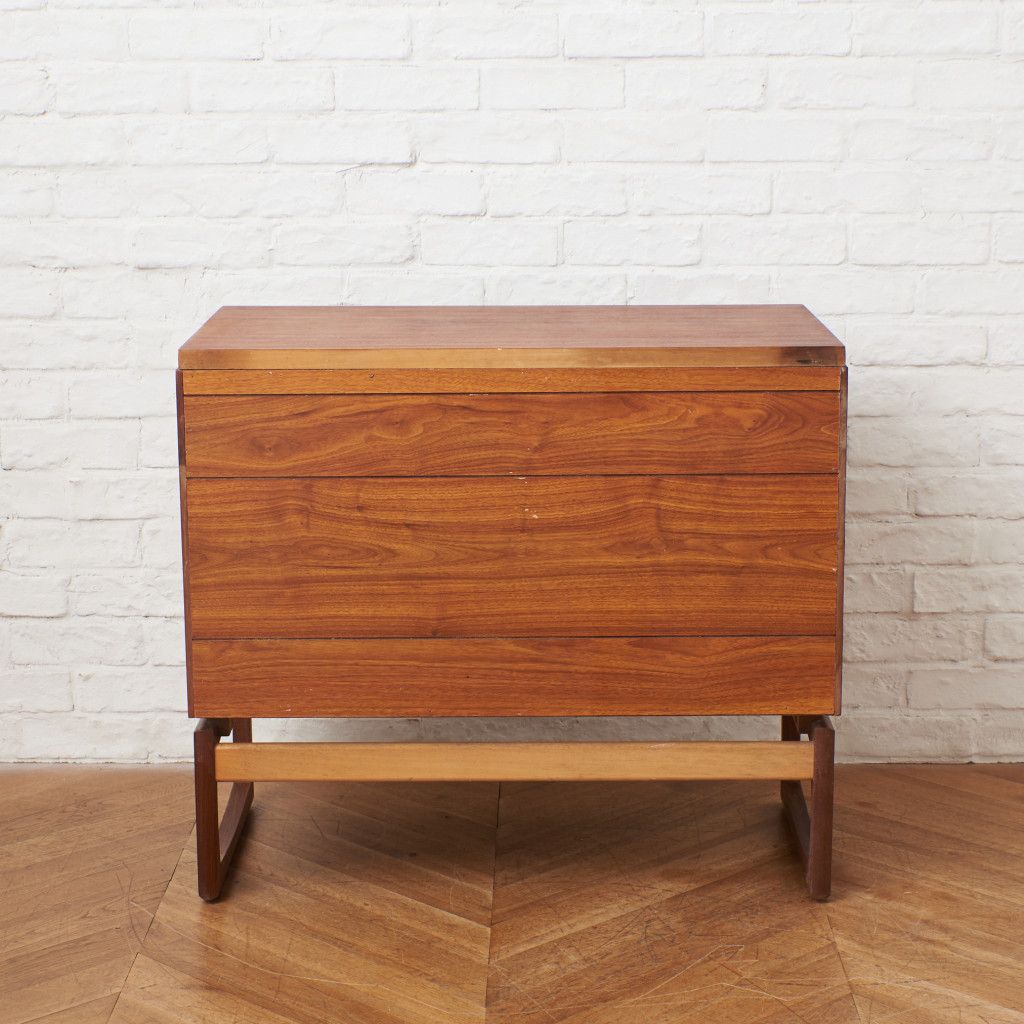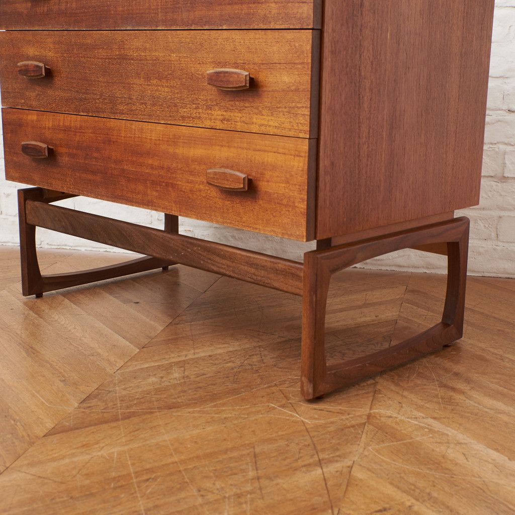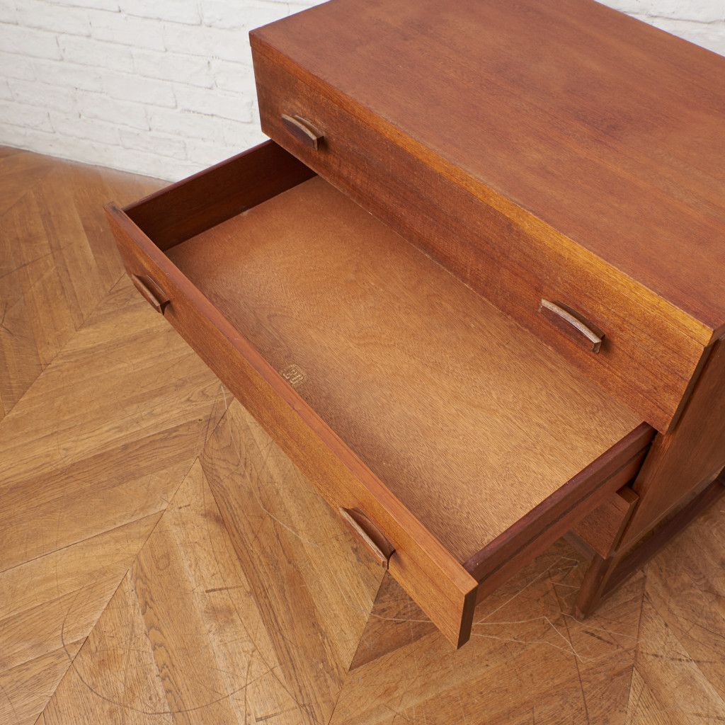 英国ミッドセンチュリーの筆頭ブランド G-PLAN(ジープラン) による、Roger Bennett(ロジャー・ベネット) デザイン、Quadrille(クヮドリール) 3段チェストです。