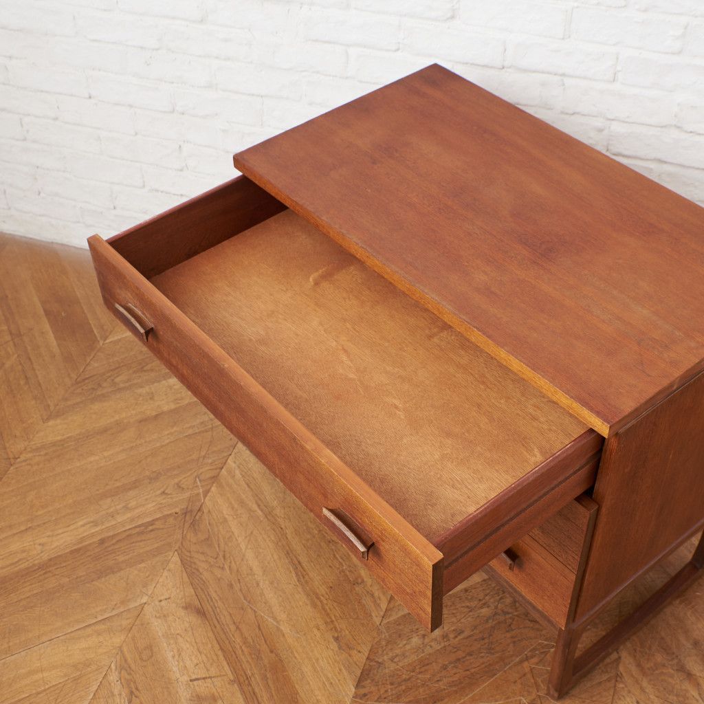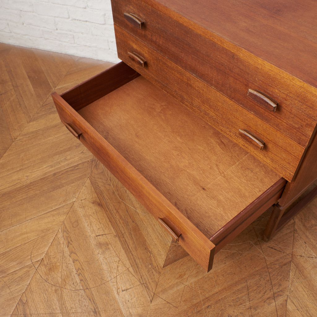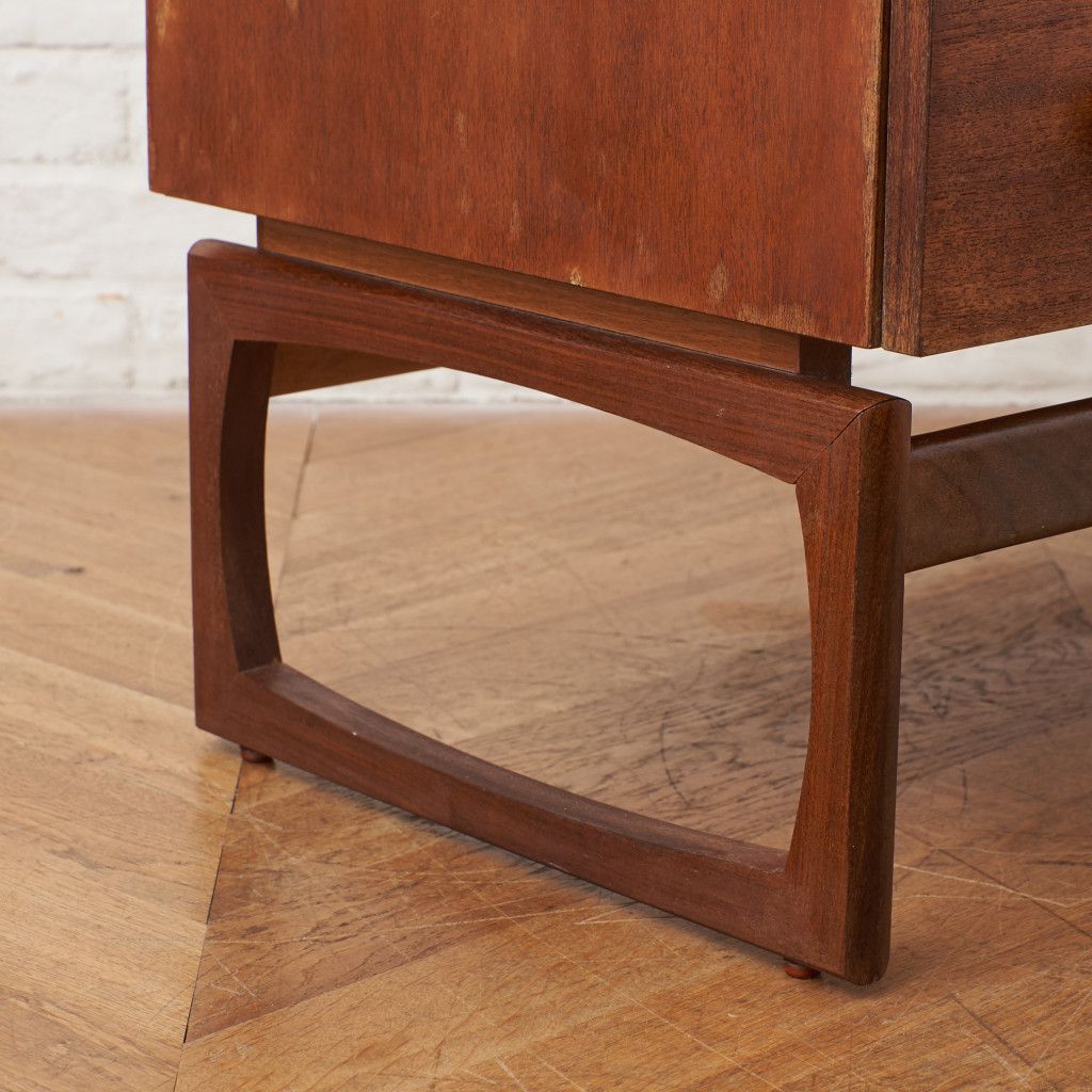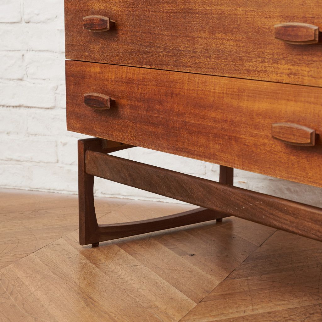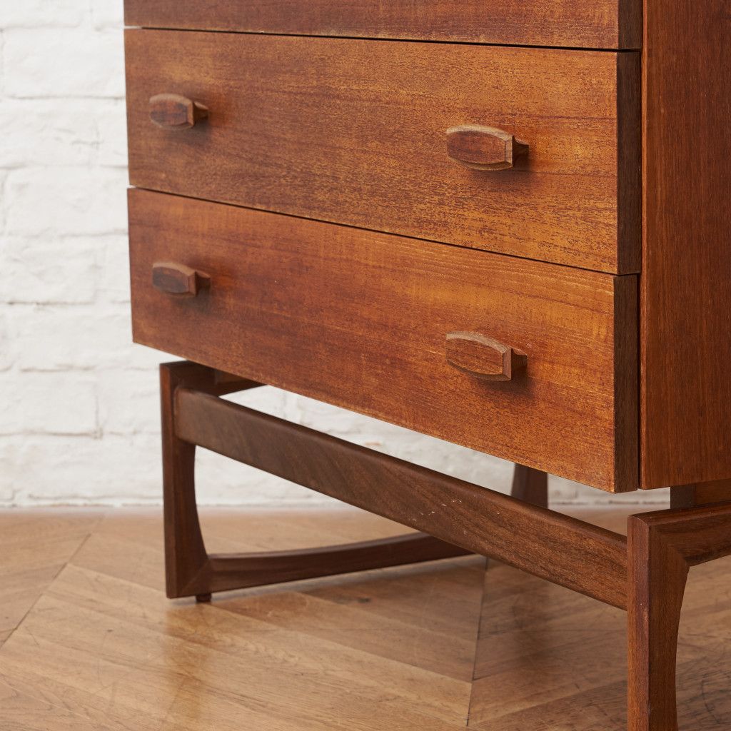 英国ミッドセンチュリーの筆頭ブランド G-PLAN(ジープラン) による、Roger Bennett(ロジャー・ベネット) デザイン、Quadrille(クヮドリール) 3段チェストです。