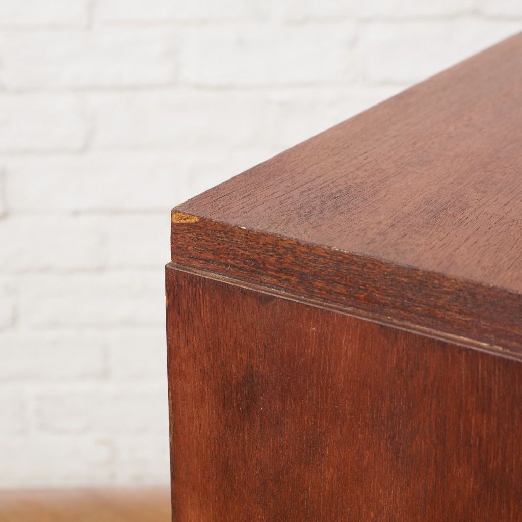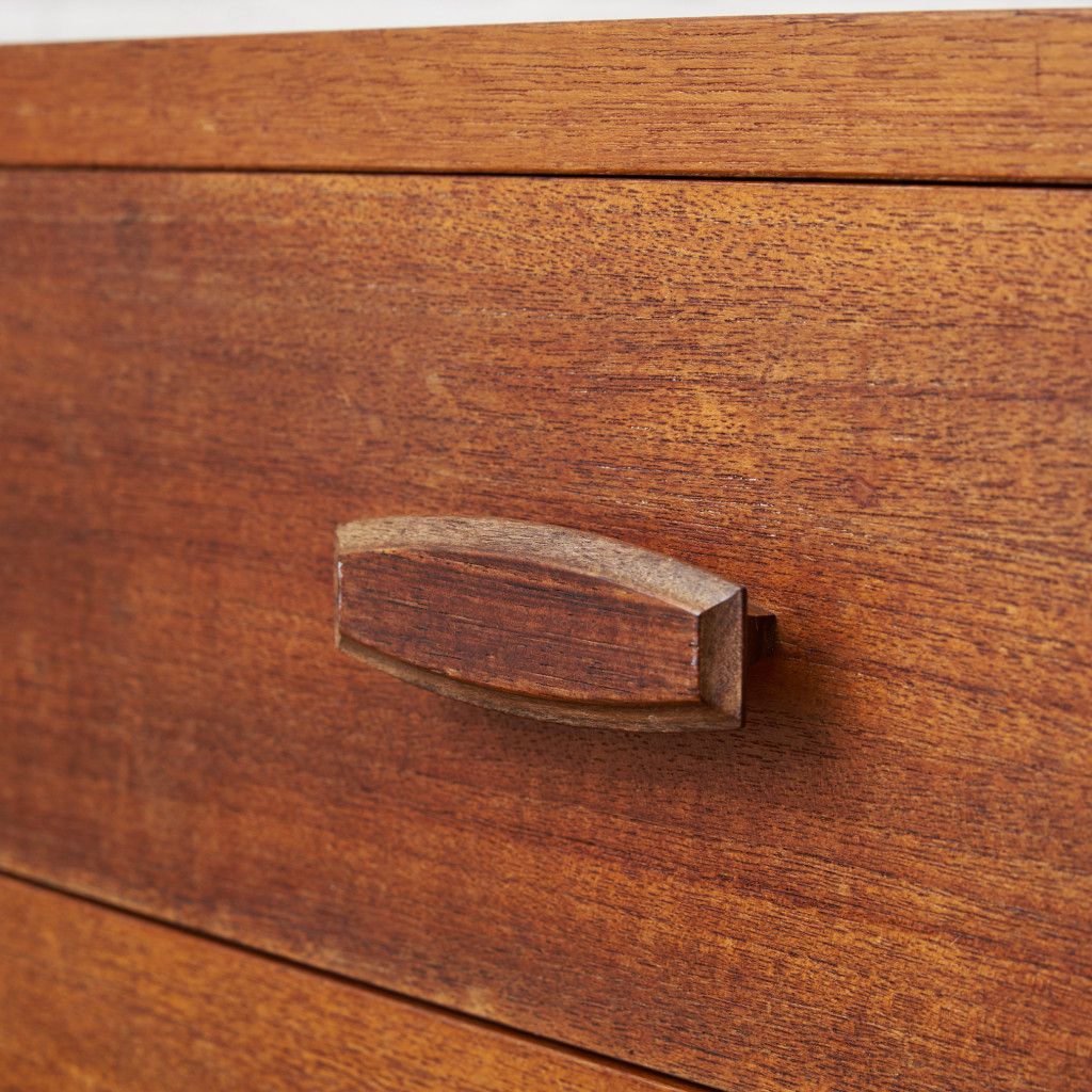 フランスのスクエア(四角)になって踊る古典舞踊、Quadrilleの名前を冠する1965年発表のG-PLAN Quadrilleシリーズ。Frescoシリーズと同じく60年代のデンマークデザインを源泉にもち、美しい褐色のチーク材を使用。四方を面取りされた樽型取手、内側に緩やかな弧を描き外形を四角に組まれた美しい形状の脚が特徴です。