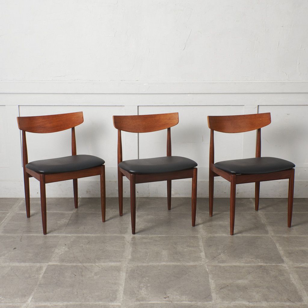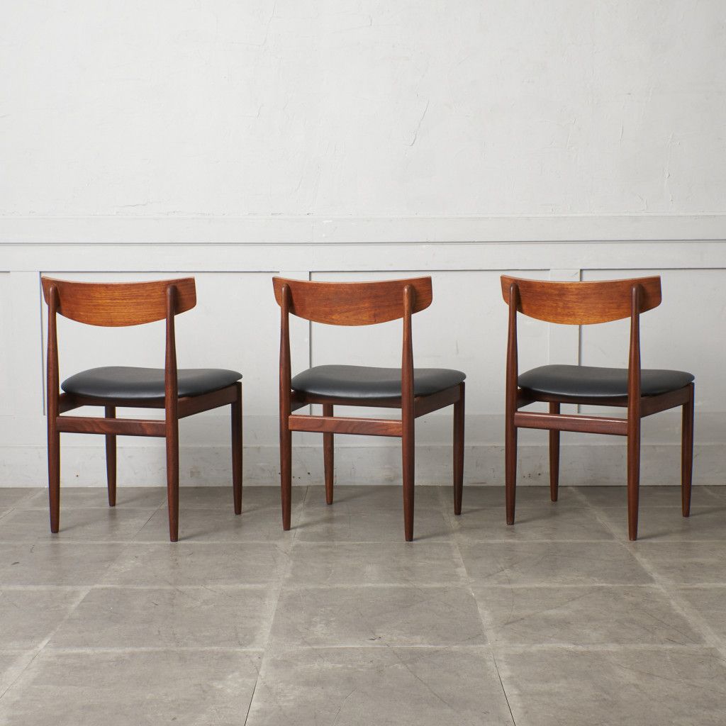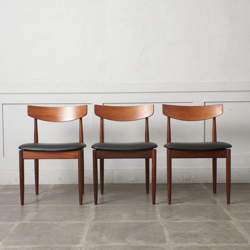英国ミッドセンチュリーを代表するブランド G-PLAN(ジープラン) による、Ib Kofod Larsen(イブ・コフォード・ラーセン)デザイン、ダニッシュシリーズ ダイニングチェア3脚セット / 張替済です。