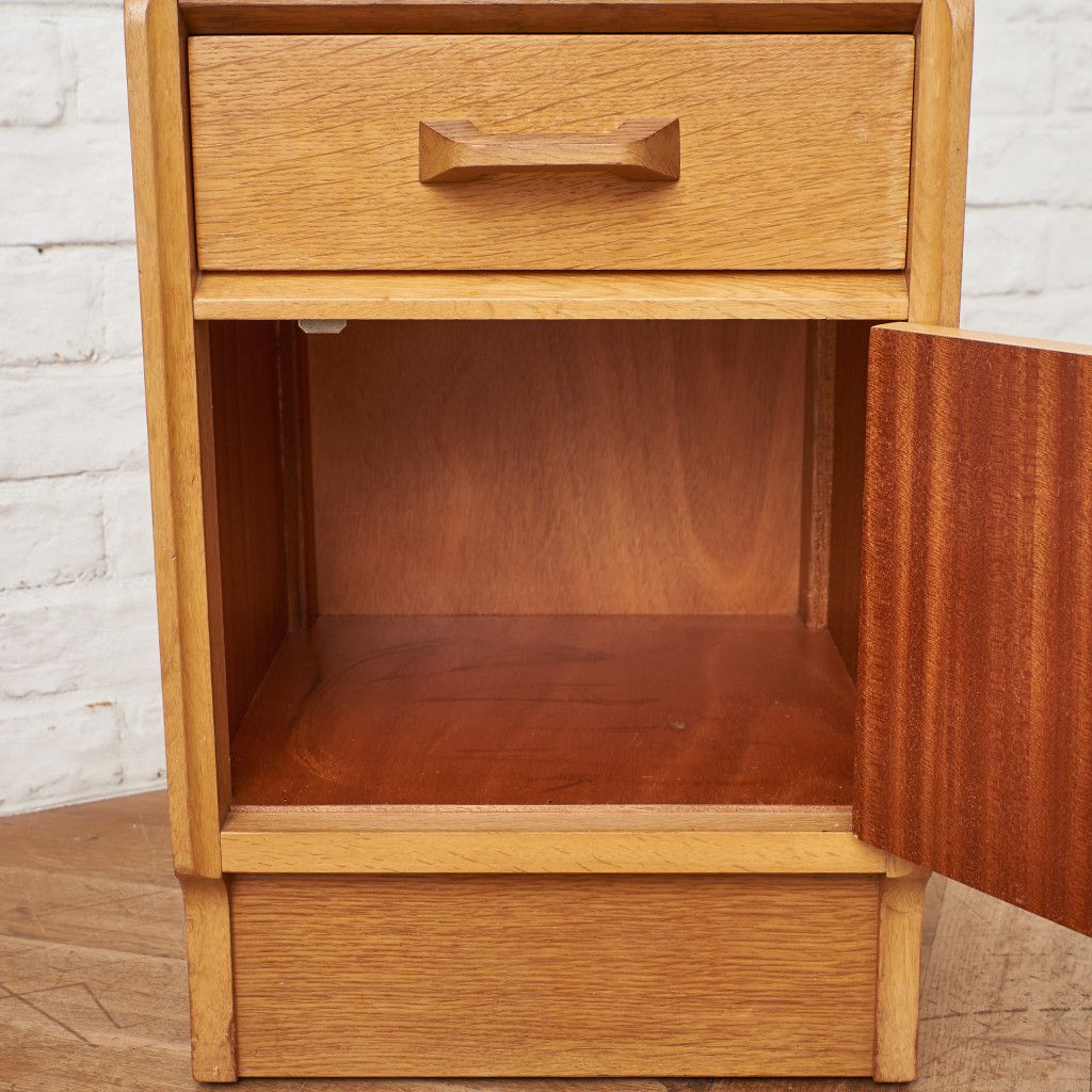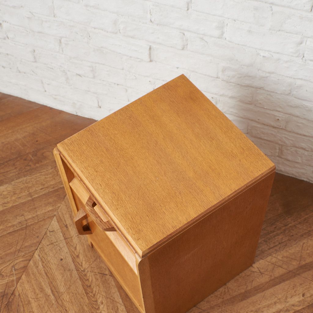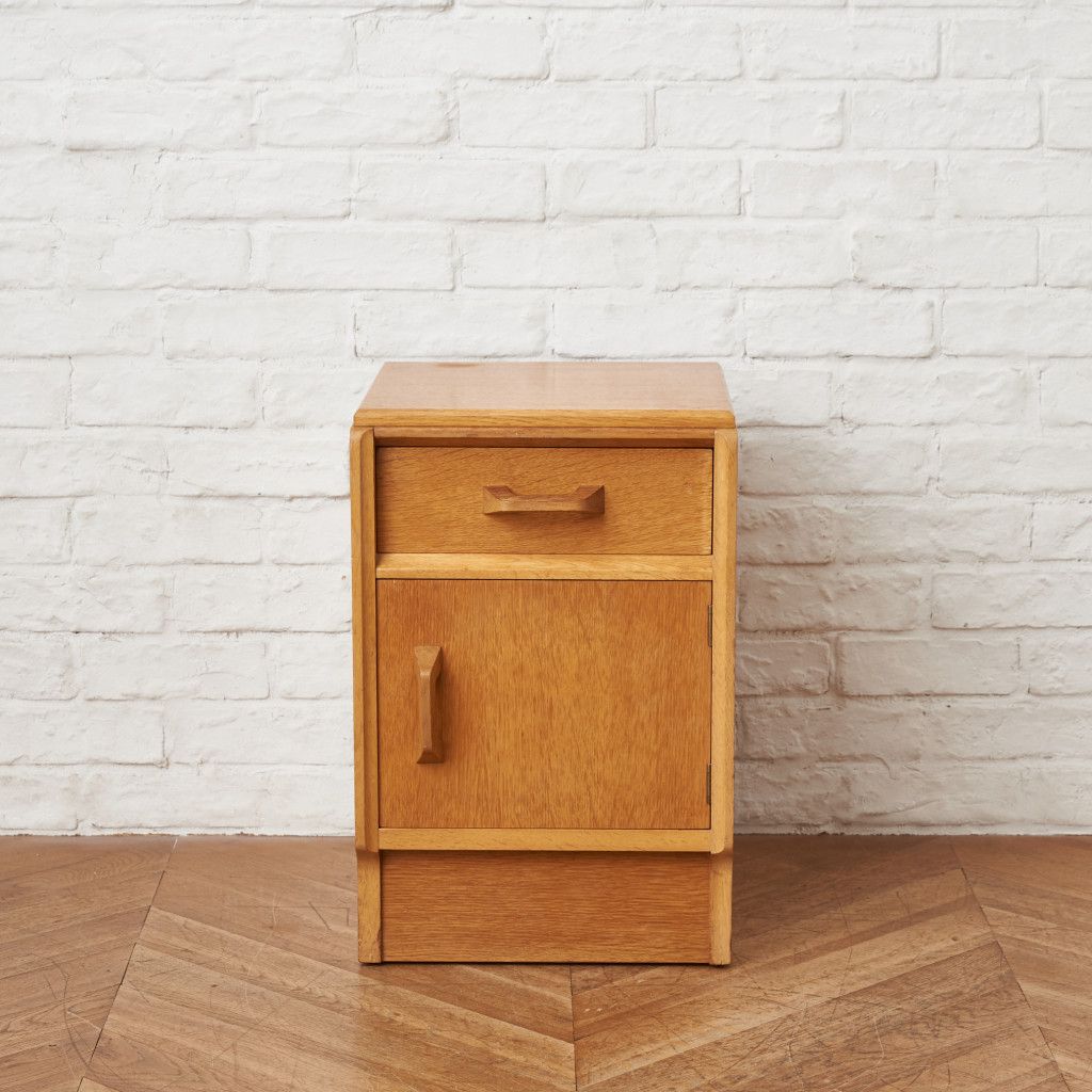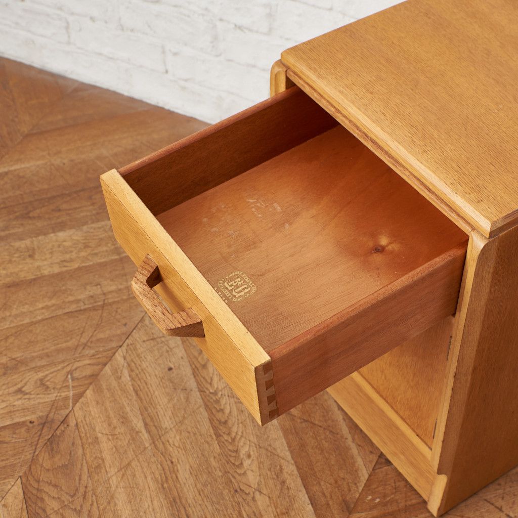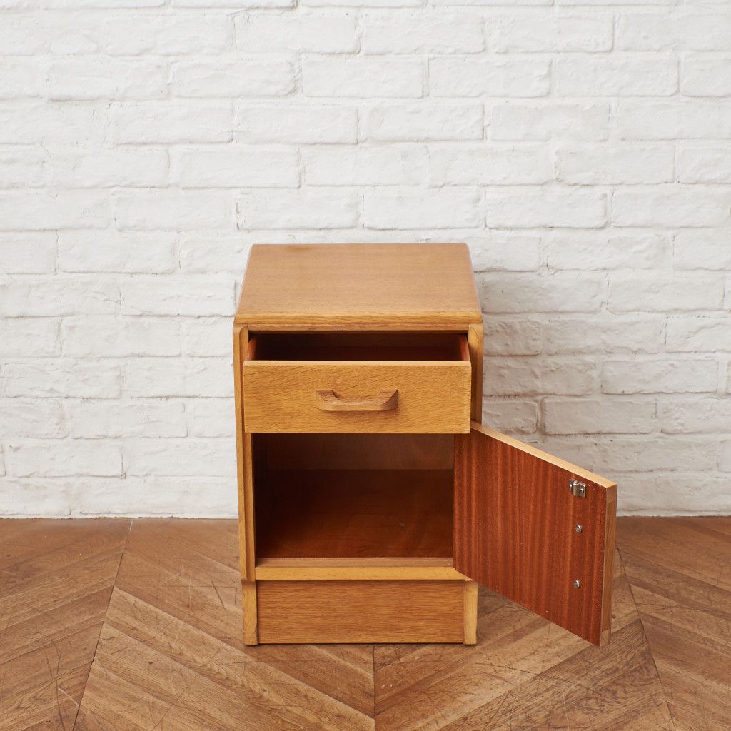 英国ミッドセンチュリーを代表するブランド G-PLAN(ジープラン)による、Brandon(ブランドン)シリーズ オーク材のベッドサイドキャビネット(B870) / 初期ゴールドラベルです。