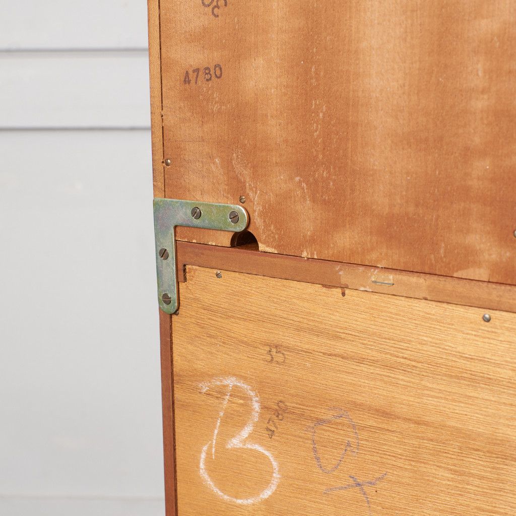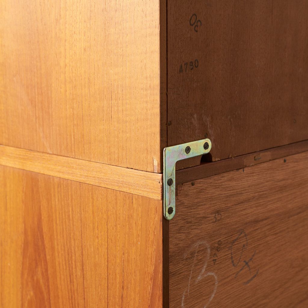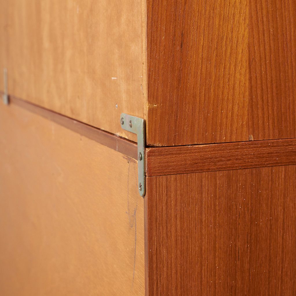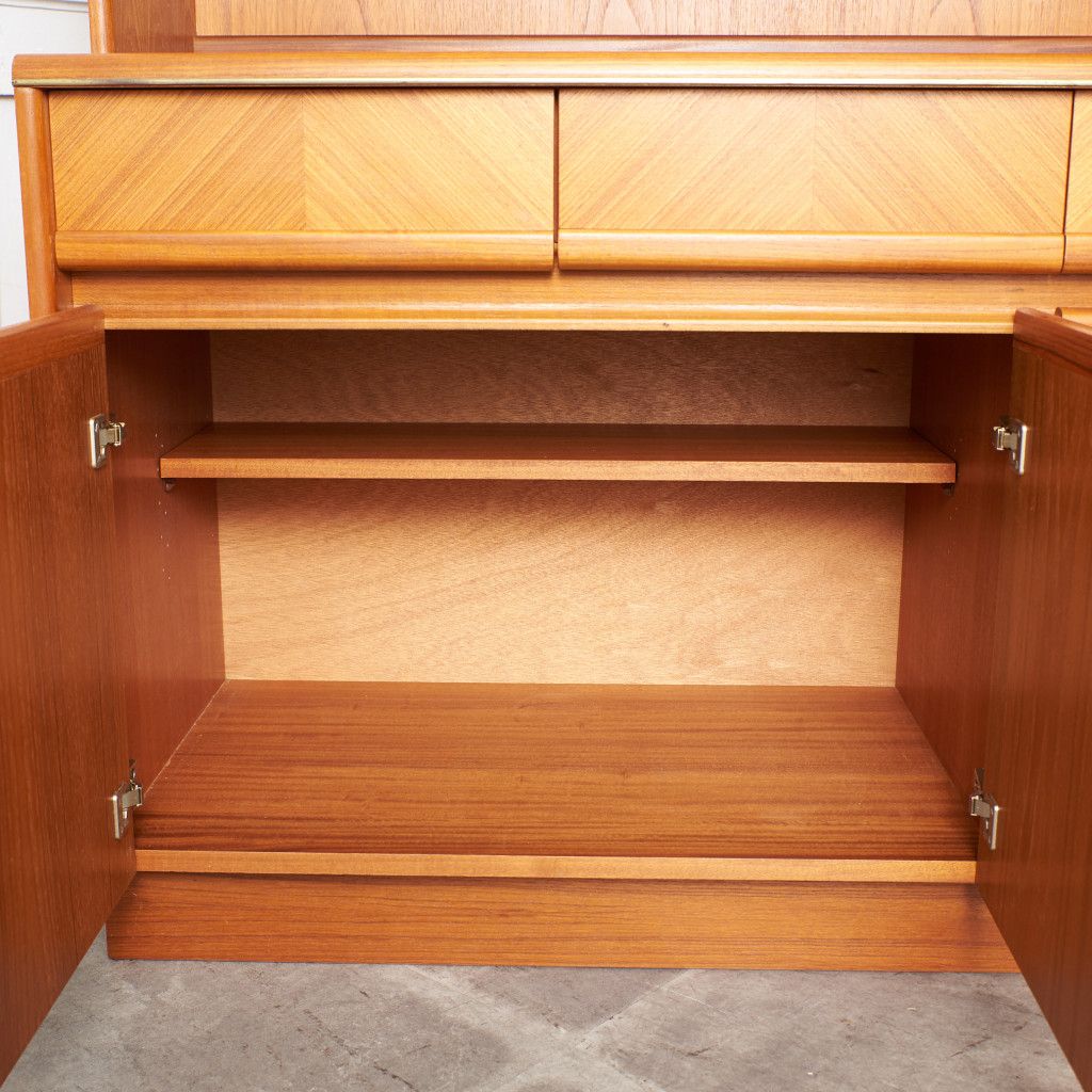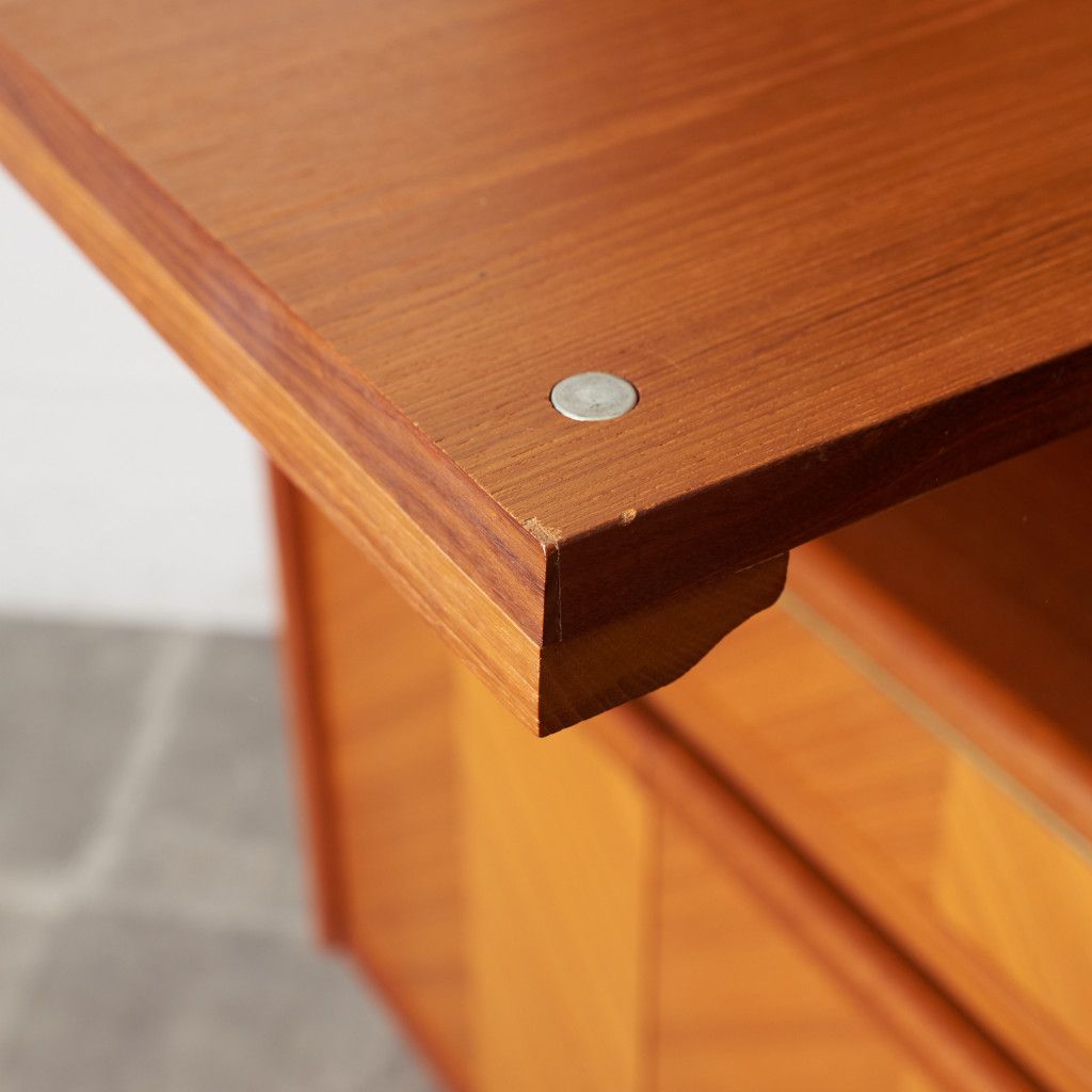 美しいチーク材の木目に、ヘリンボーンのパーケットがアクセントとなったウォールキャビネット。国内ヴィンテージ市場であまり見ることのないかなりレアなシリーズです。