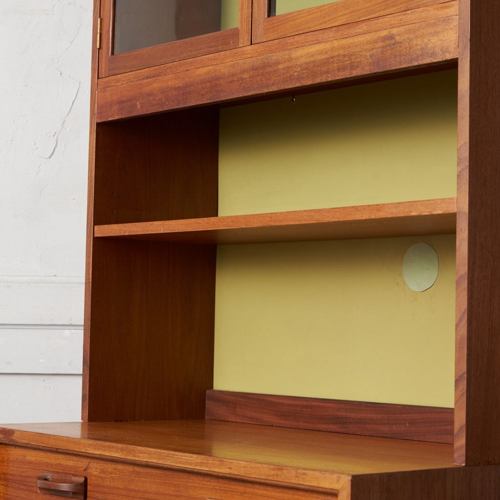 ベースユニットとトップユニットの2種類を組み合わせたキャビネット。上段にはガラス扉とオープンスペース、下段はカトラリー付きの収納が備えられています。本棚、食器棚、飾り棚と、お好みに合わせてご使用いただけます。