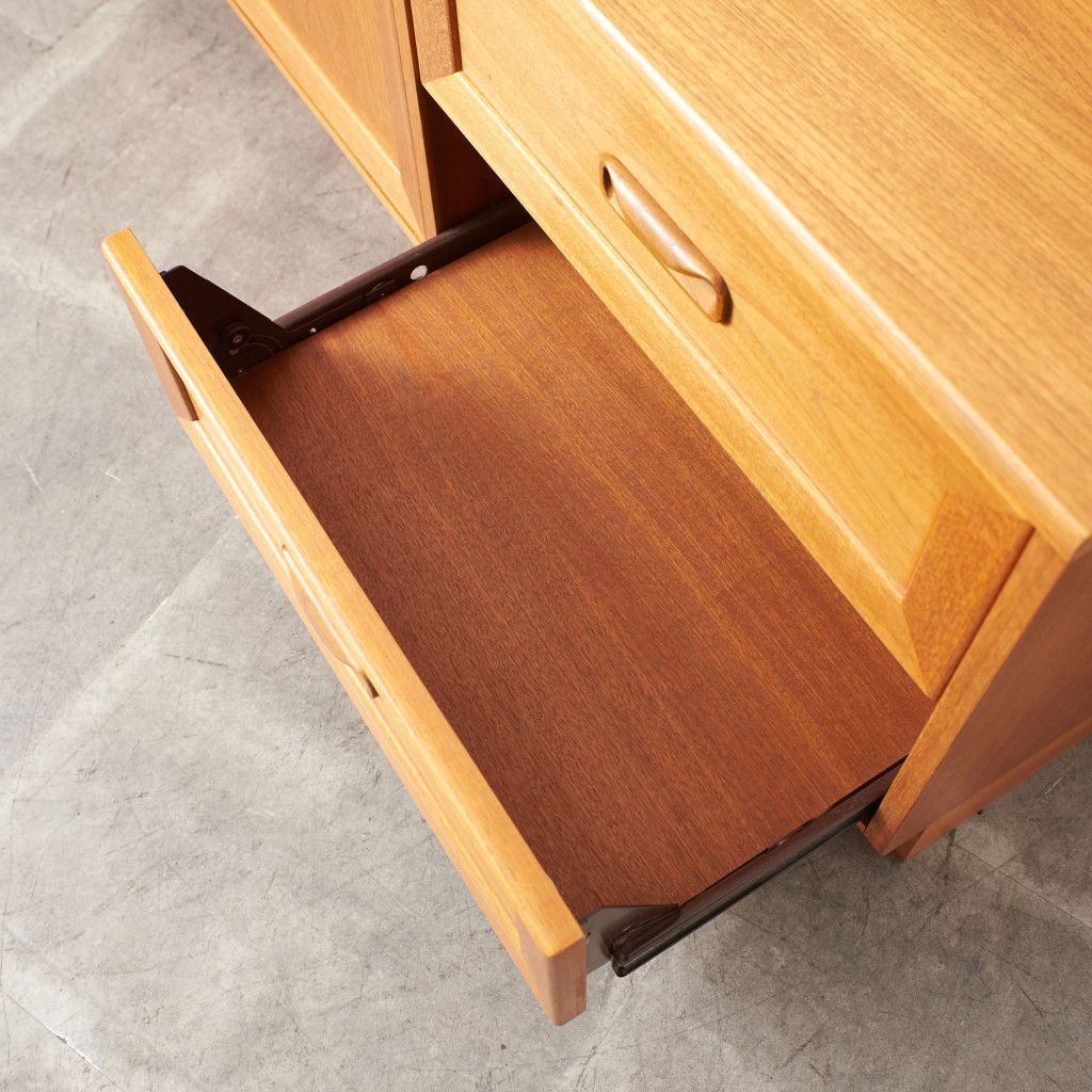 約50年前に英国で一世を風靡したG-PLANの中でも最も売れたシリーズと言われている「フレスコシリーズ」1960年のDanishシリーズに続き、発表当初のデザインは Ib Kofod-Larsenが手がけ、後にWilkins, Victor Bramwellが引き継ぎました。チーク材などを用いた北欧色の強いデザインとなっており、現代においてもGプランを象徴する最も人気の高いシリーズです。