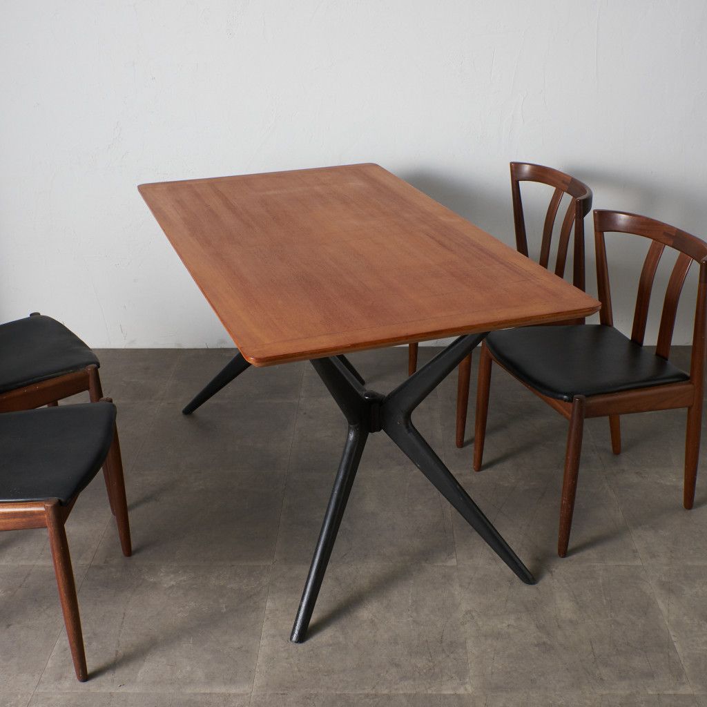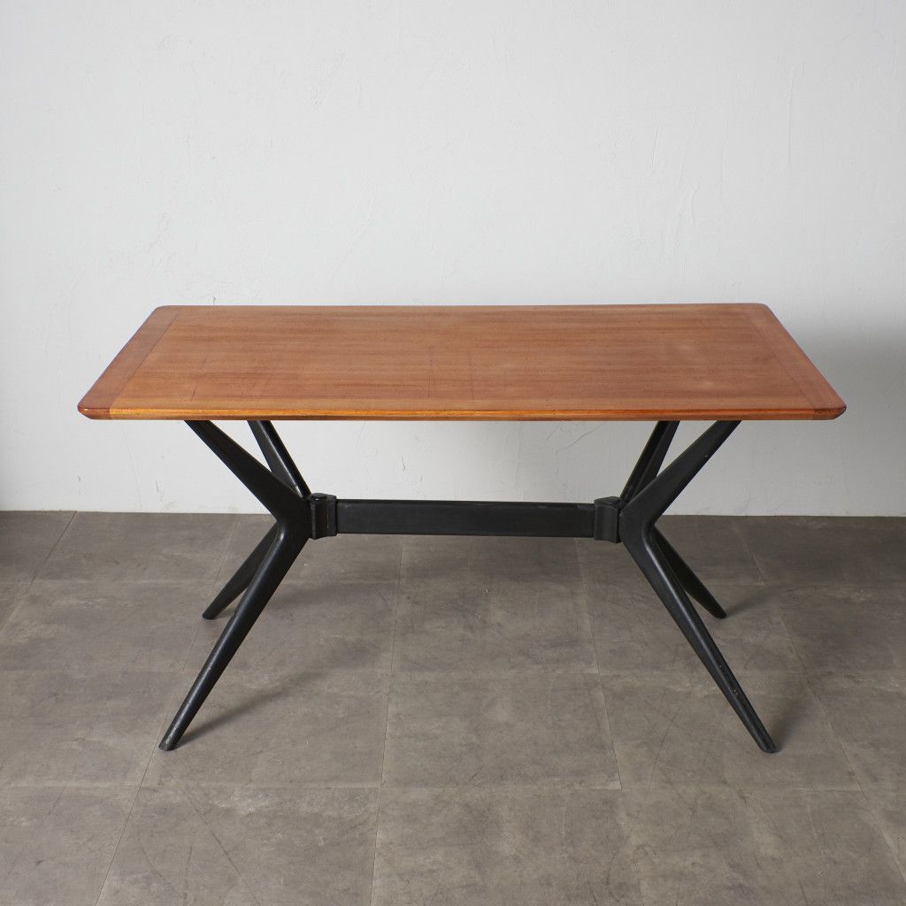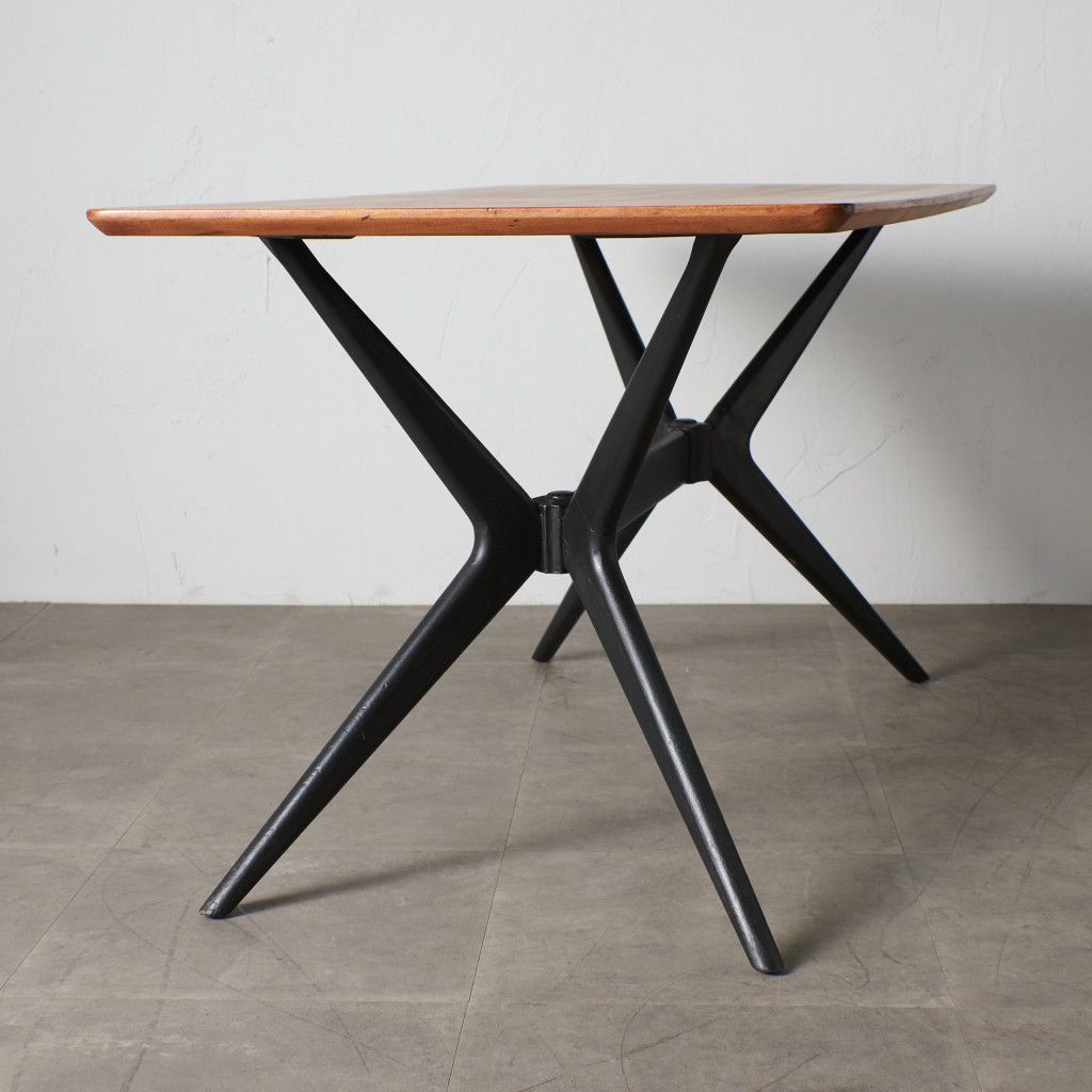 流通量の少ないトーラ&ブラックシリーズの中でも、かなり希少なダイニングテーブル。ヘリコプターテーブルとも呼ばれ、イタリアの影響を受けデザインされたと言われています。クロスした美しい脚、エアリーな佇まい、モダンでスタイリッシュなフォルムは、G-PLANを代表するデザインのひとつと言えます。