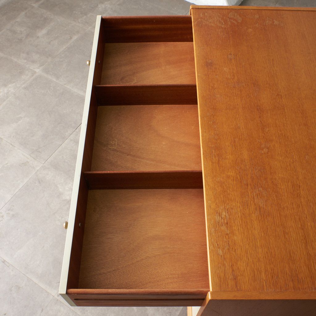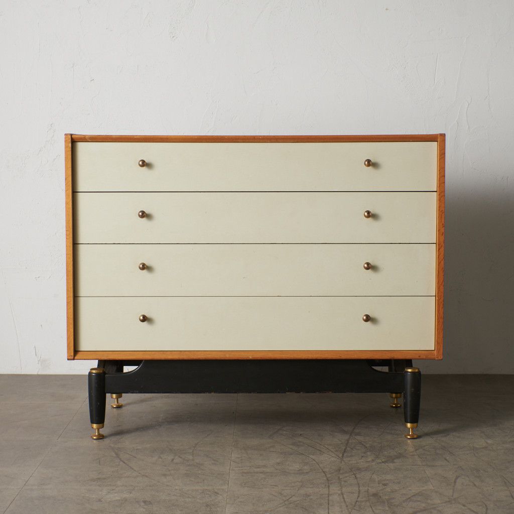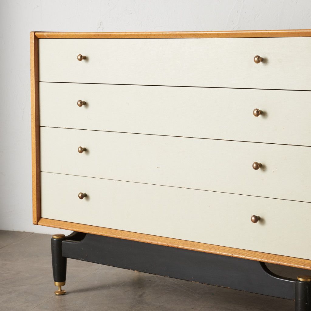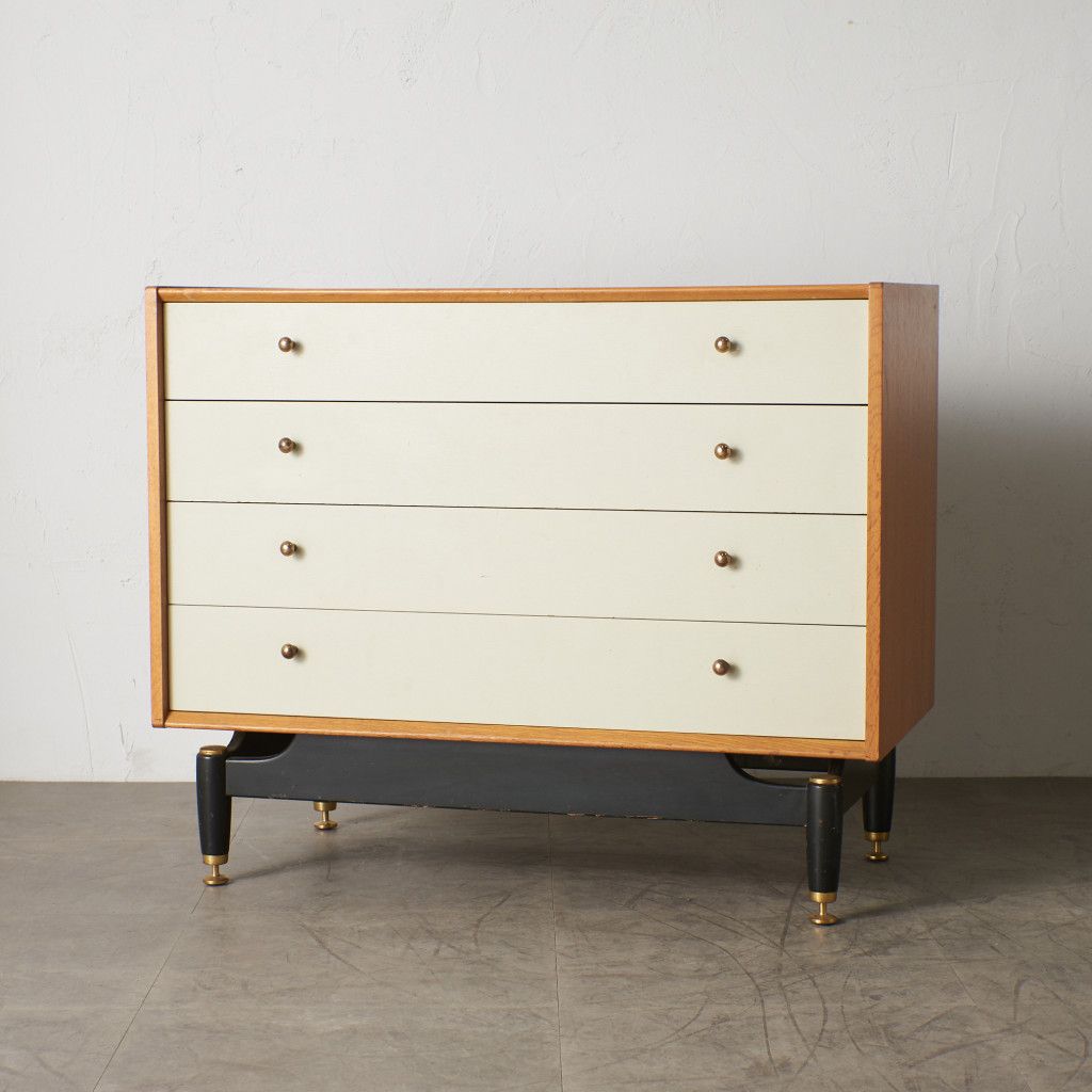 英国ミッドセンチュリーを代表する人気ブランド G-PLAN(ジープラン) による、Chinese white (チャイニーズ ホワイト)シリーズのヴィンテージ ワイドチェスト(B917) です。