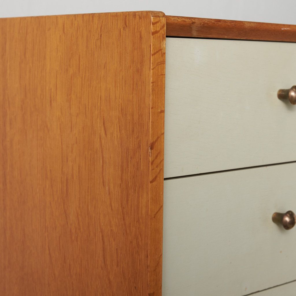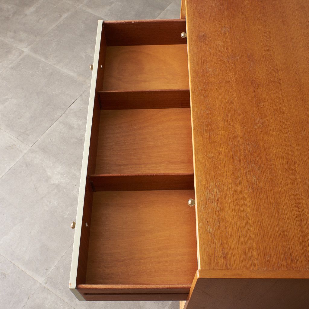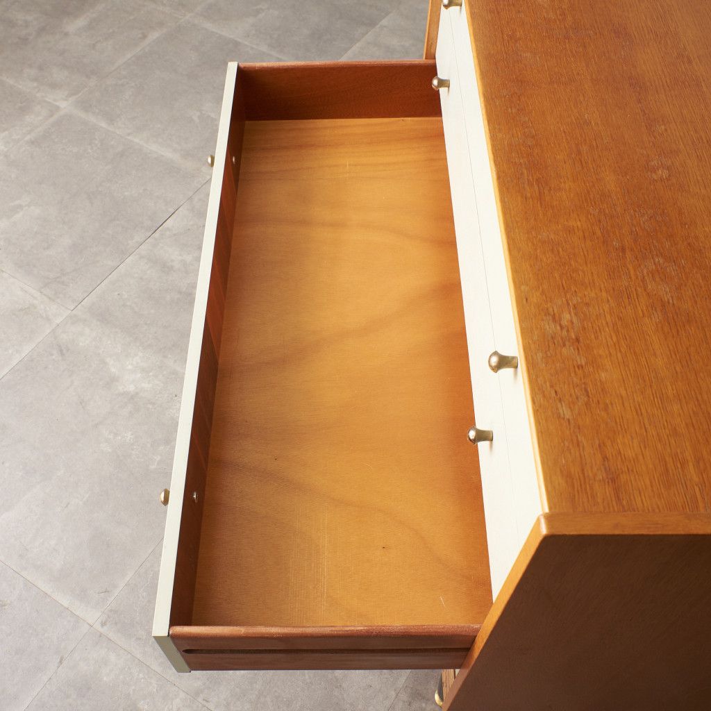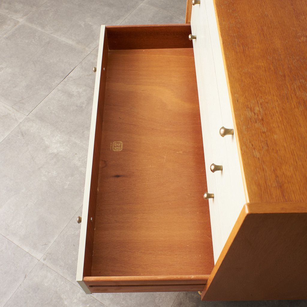 英国ミッドセンチュリーを代表する人気ブランド G-PLAN(ジープラン) による、Chinese white (チャイニーズ ホワイト)シリーズのヴィンテージ ワイドチェスト(B917) です。