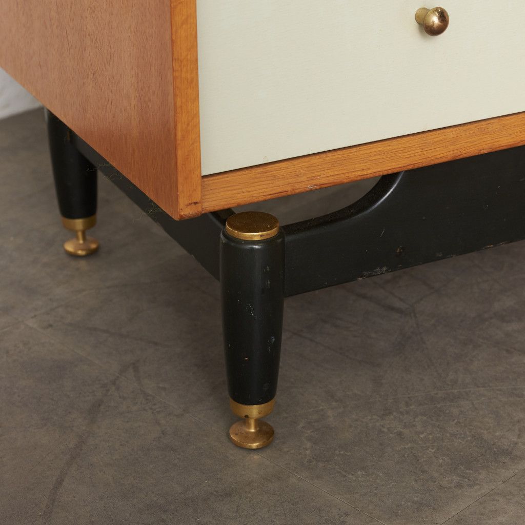当時「コンパクトで省スペースな作品で、どの部屋、ホール、踊り場にも最適」として1956年に発売した Chinese white シリーズ。真鍮金具がアクセントの、エレガントながら英国らしいスタイリッシュな雰囲気が印象的です。同時期にはレアな類似シリーズ Tola&black が販売されておりますが、Chinese white は、日本のヴィンテージ市場にて希少価値が高く、さらに手に入りにくいシリーズとなっております。