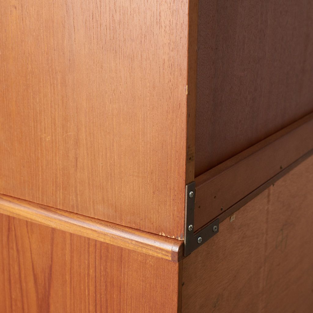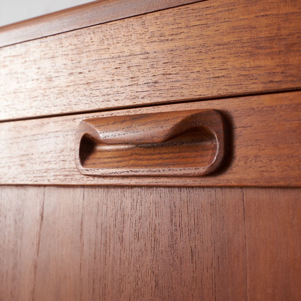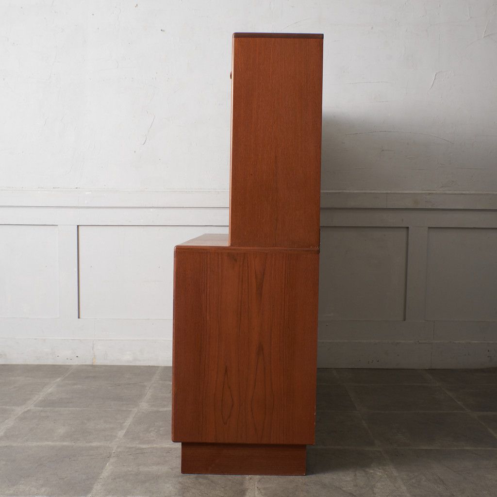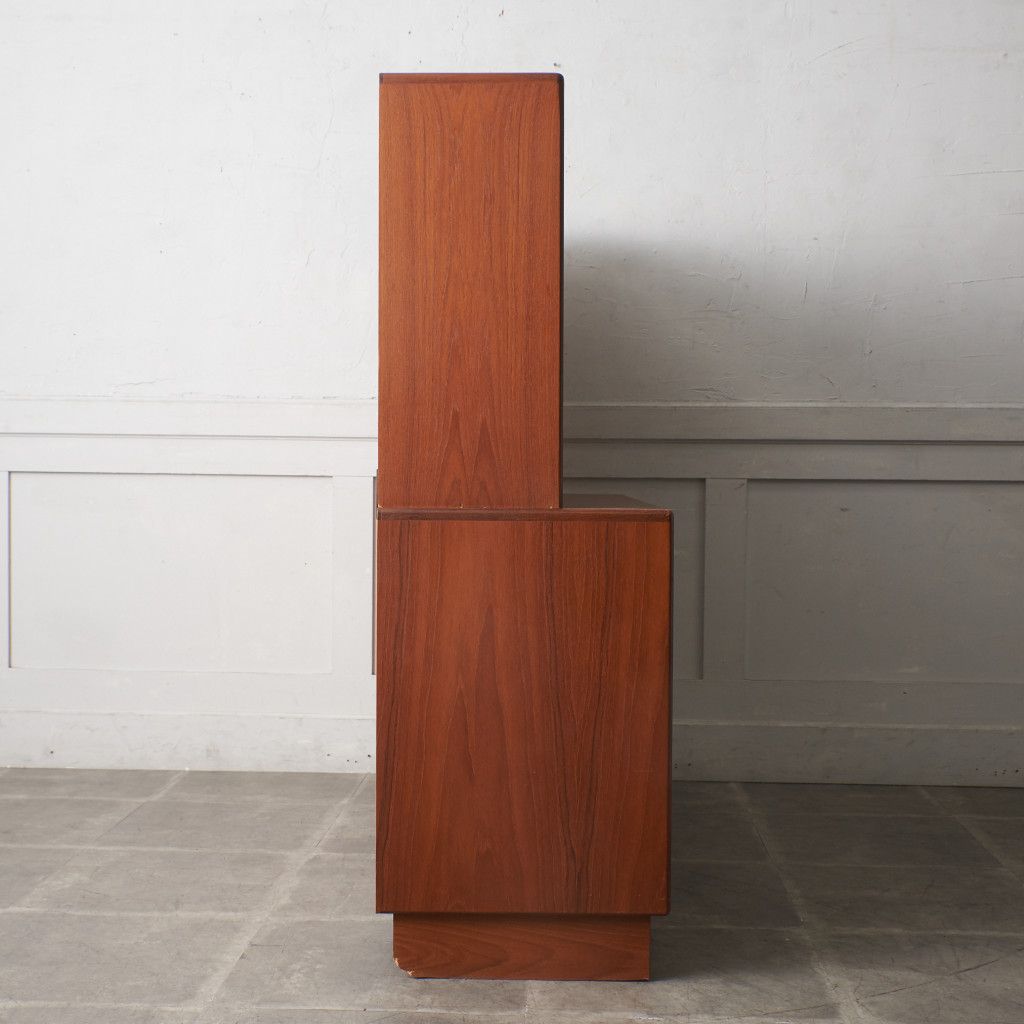 フレスコシリーズのリビングダイニング用コレクションとしてデザインされたコンポジットサイドボード。ベースユニット (Base unit 3105)と上部棚の組み合わせによって様々な用途に対応できるように設計されています。上部にはガラス棚板の嵌ったオープン棚、右側にはデスクとしても使えるビューロ扉の収納、下段ベースユニットは大容量の収納。カップボード、リビングボード、デスクの機能を兼ね備えています。