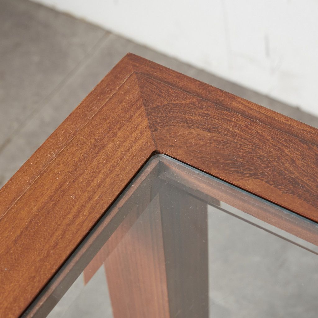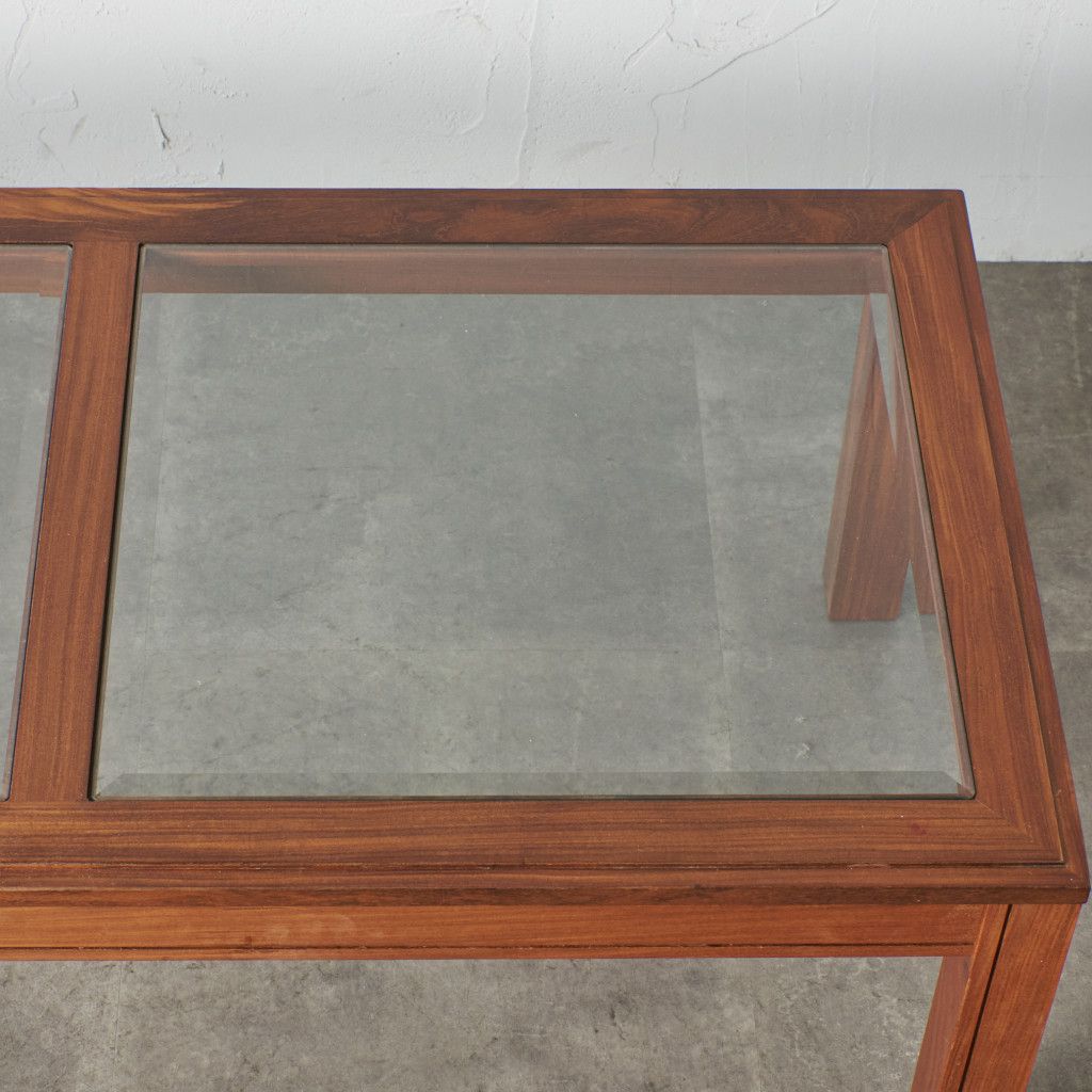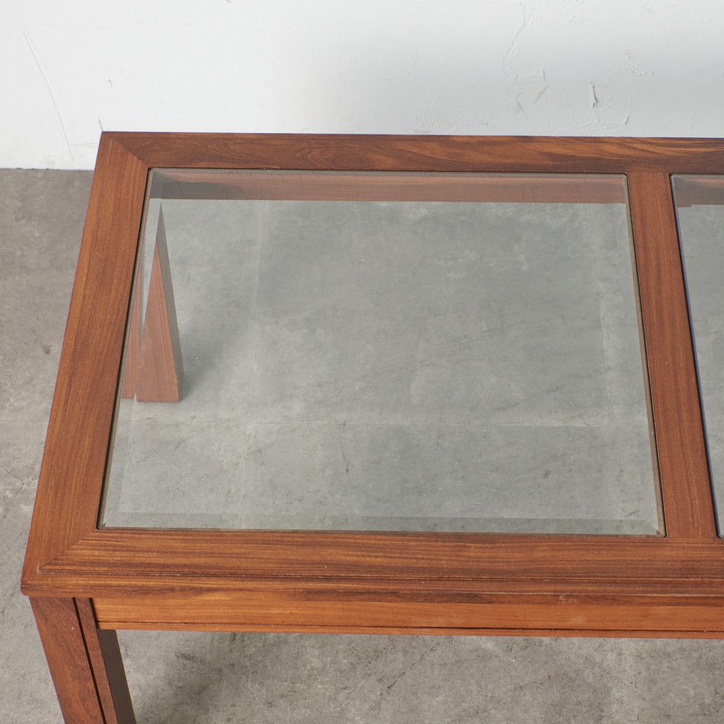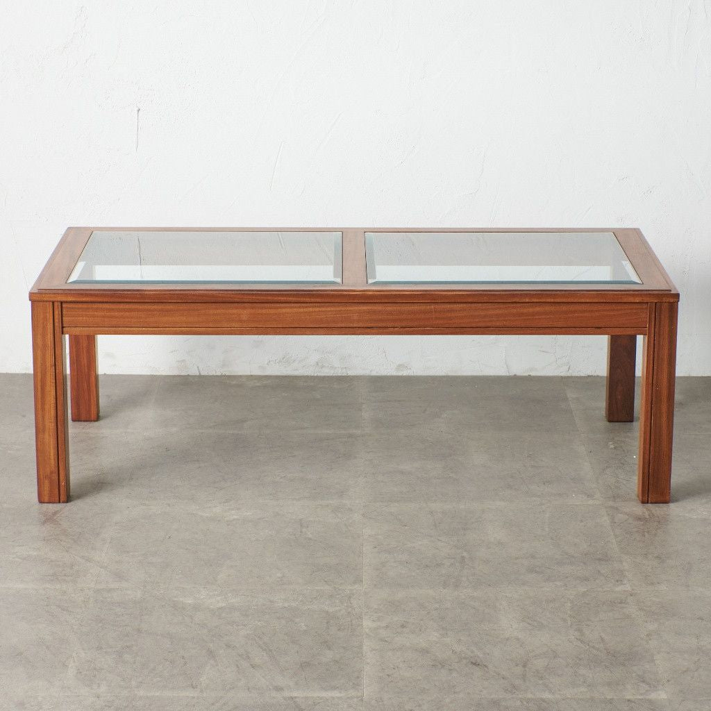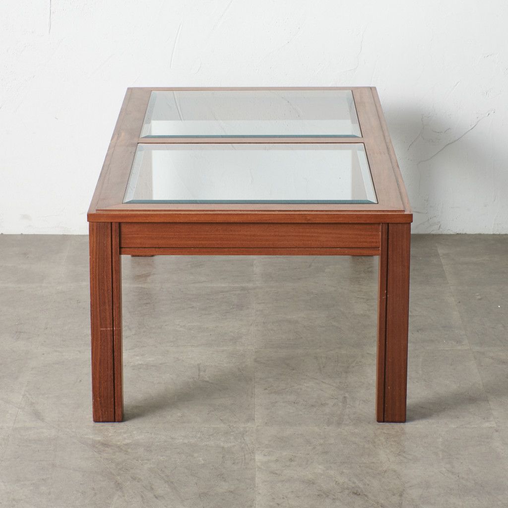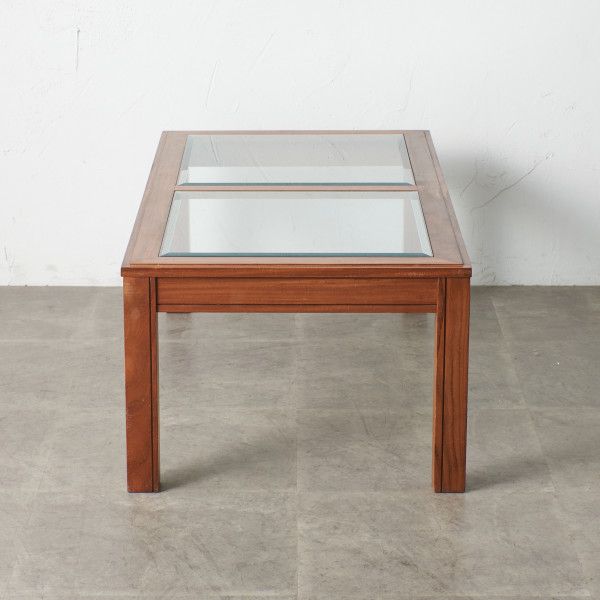 褐色の木肌が美しい天然木が用いられたガラストップコーヒーテーブル。3人掛けソファと相性の良いロングジョンテーブルと呼ばれる横長のテーブル。G-PLAN定番のコーヒーテーブルとは一味違った大変希少価値の高いモデルです。