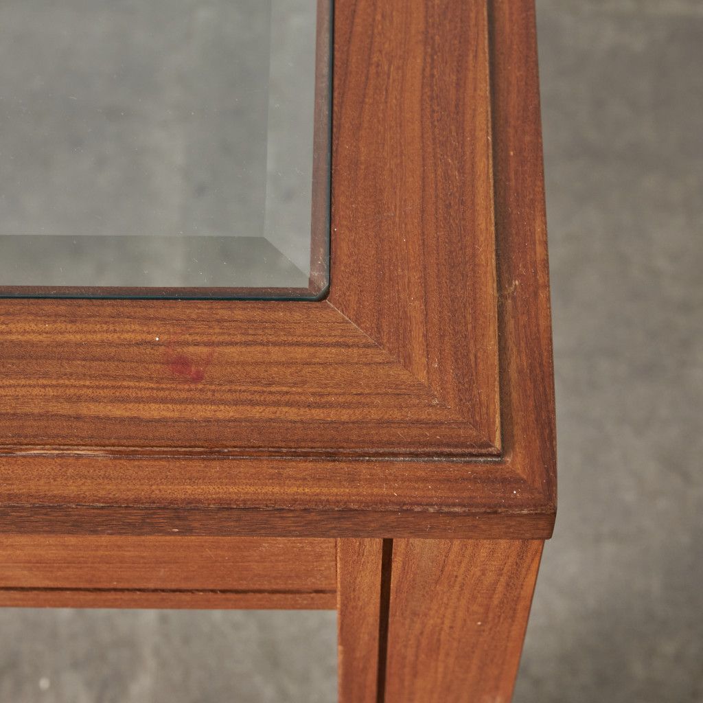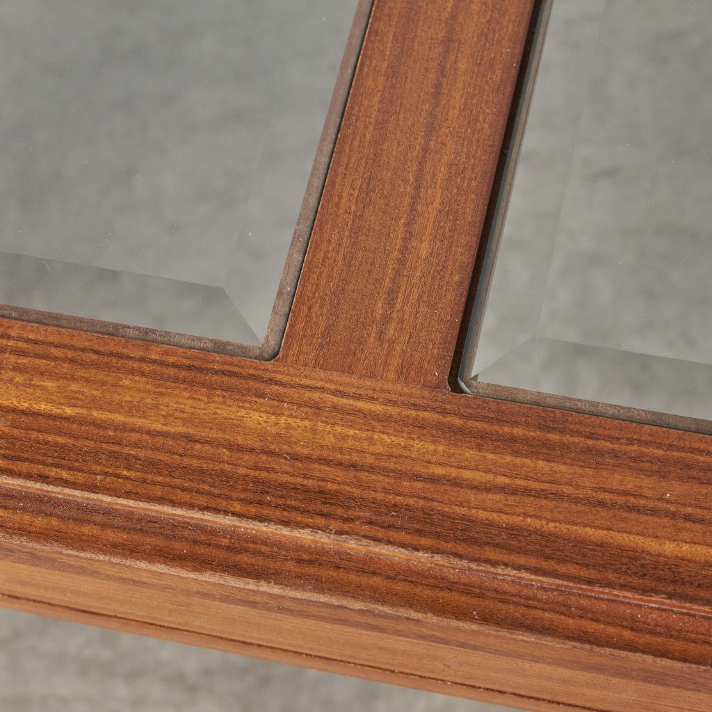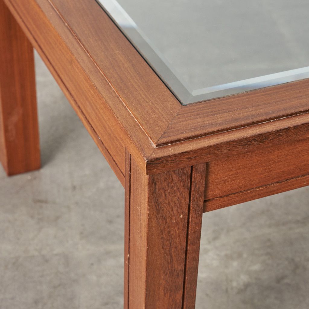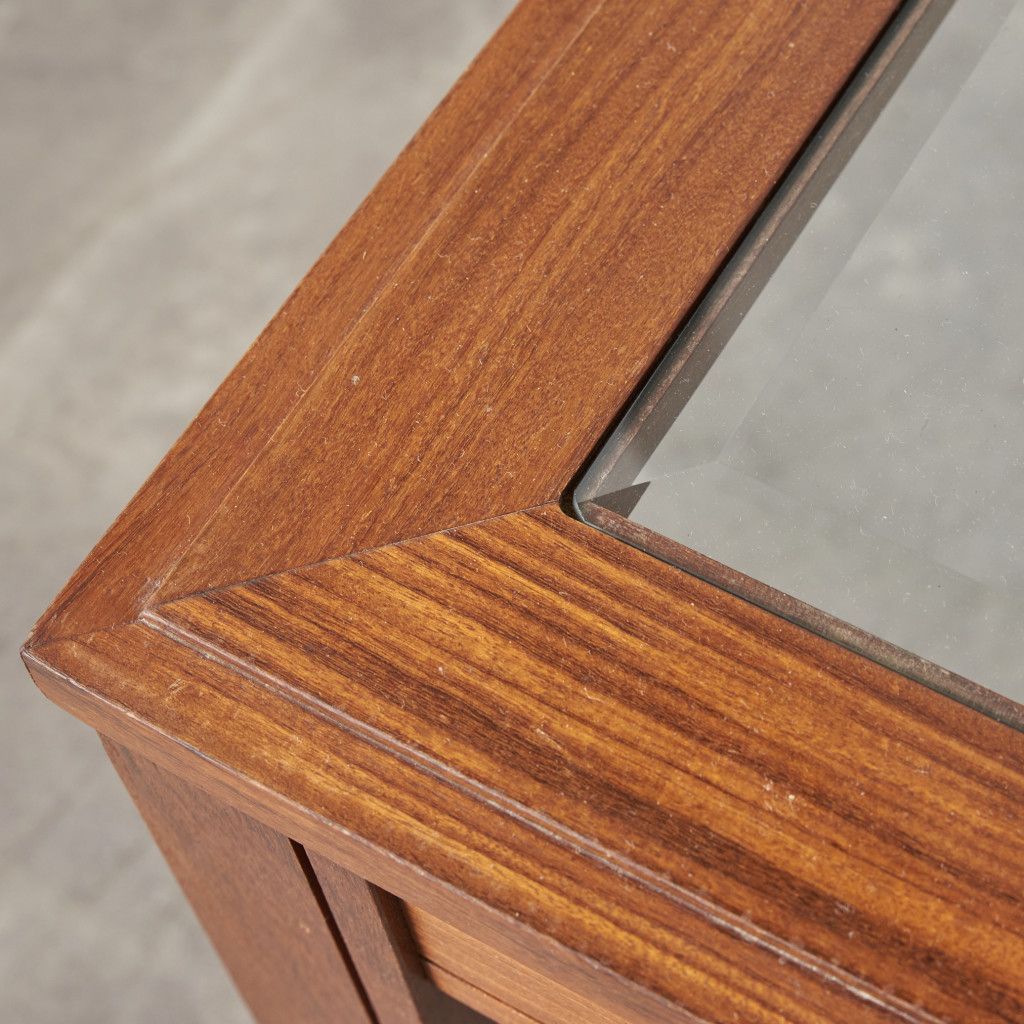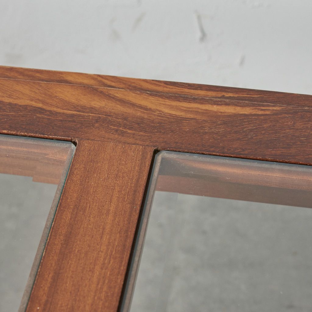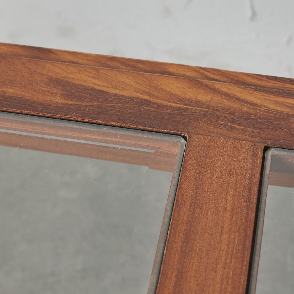 褐色の木肌が美しい天然木が用いられたガラストップコーヒーテーブル。3人掛けソファと相性の良いロングジョンテーブルと呼ばれる横長のテーブル。G-PLAN定番のコーヒーテーブルとは一味違った大変希少価値の高いモデルです。
