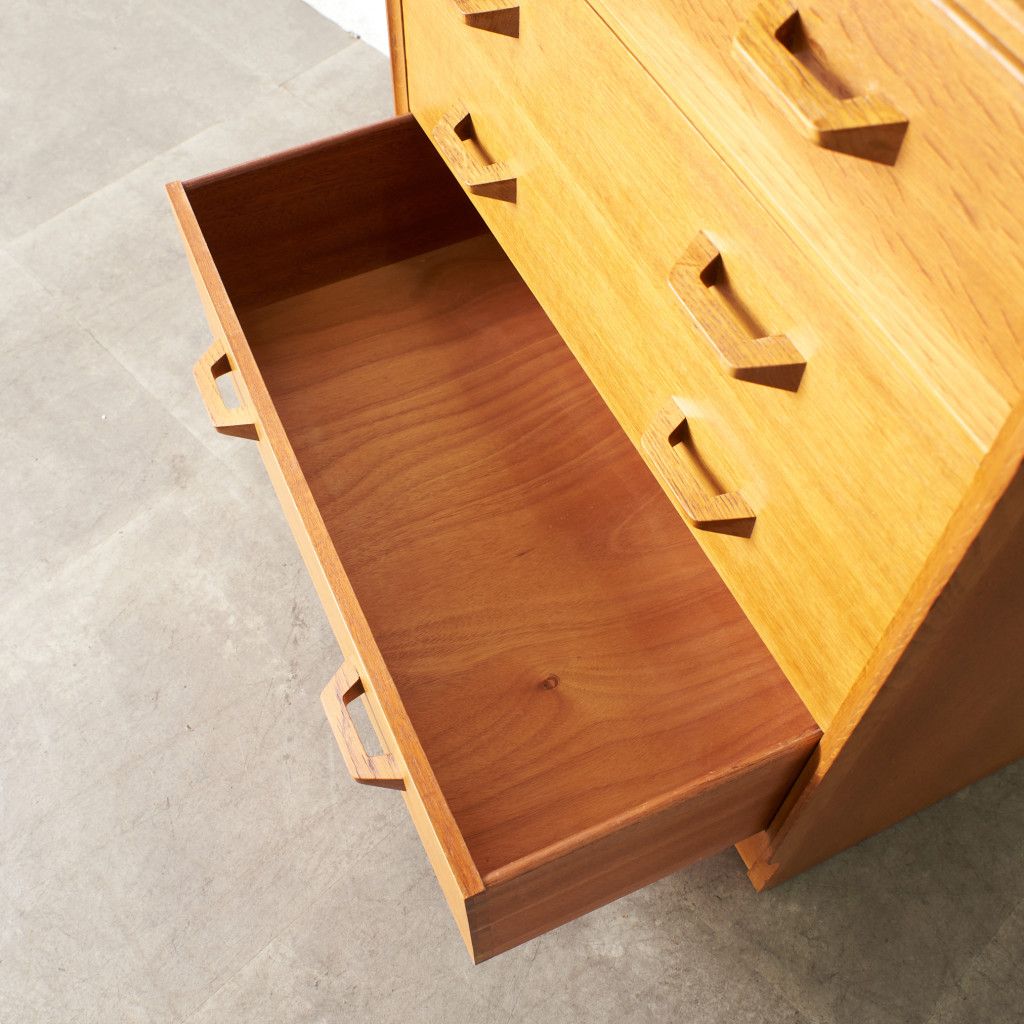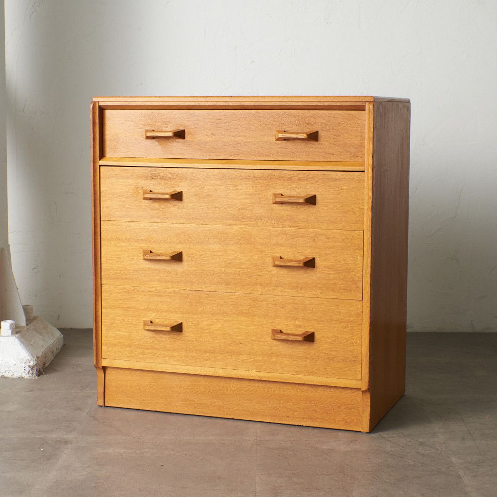 イギリスのミッドセンチュリーを代表するブランド G-PLAN(ジープラン) による、Brandon(ブランドン)シリーズ、オーク材を使用した4段チェスト(B820)です。
