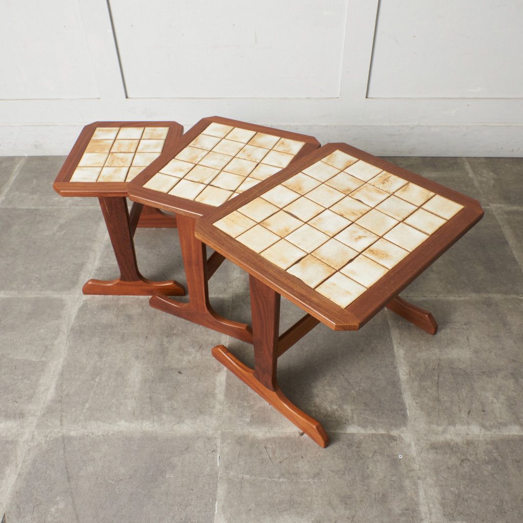 英国ミッドセンチュリーを代表するブランド G-PLAN(ジープラン) による、タイルトップ ネストテーブル (3585D)です。