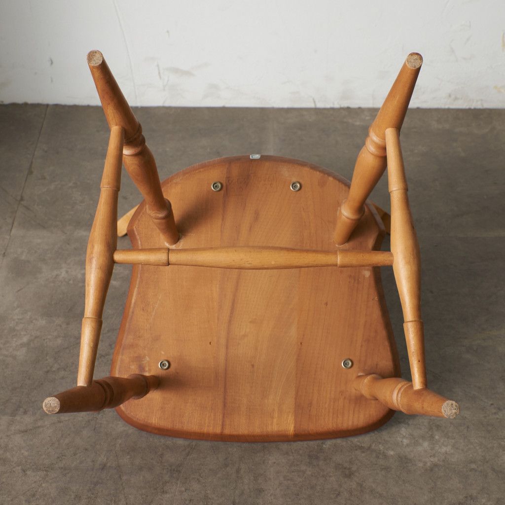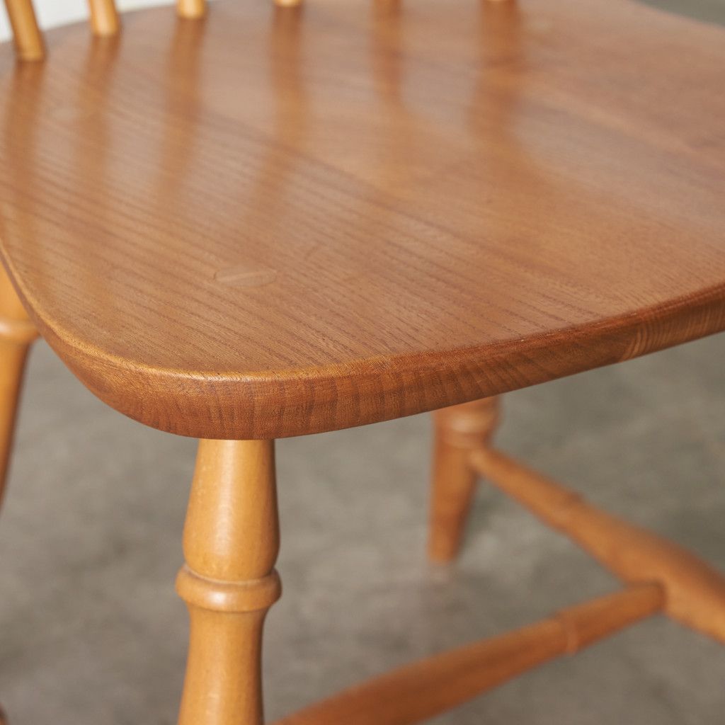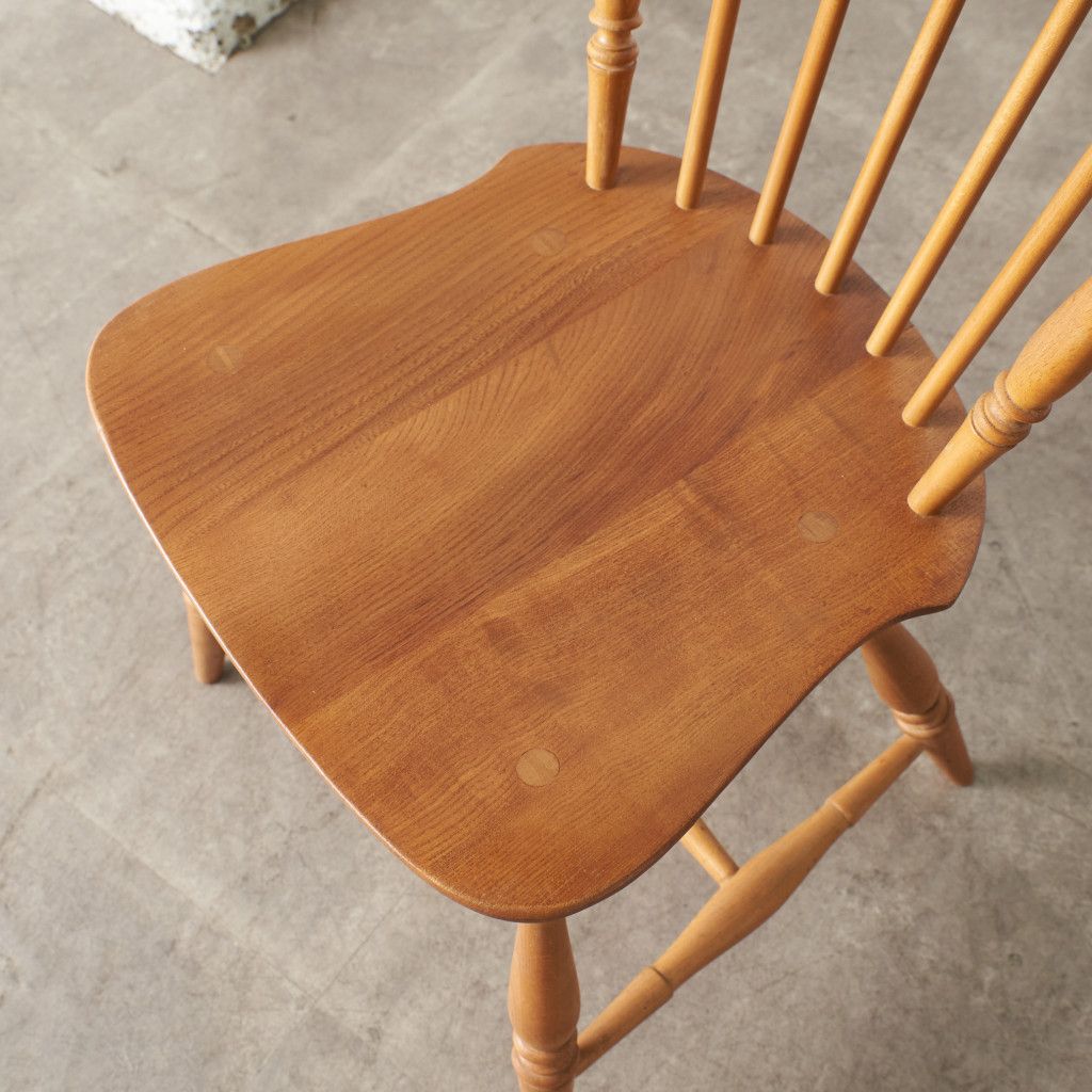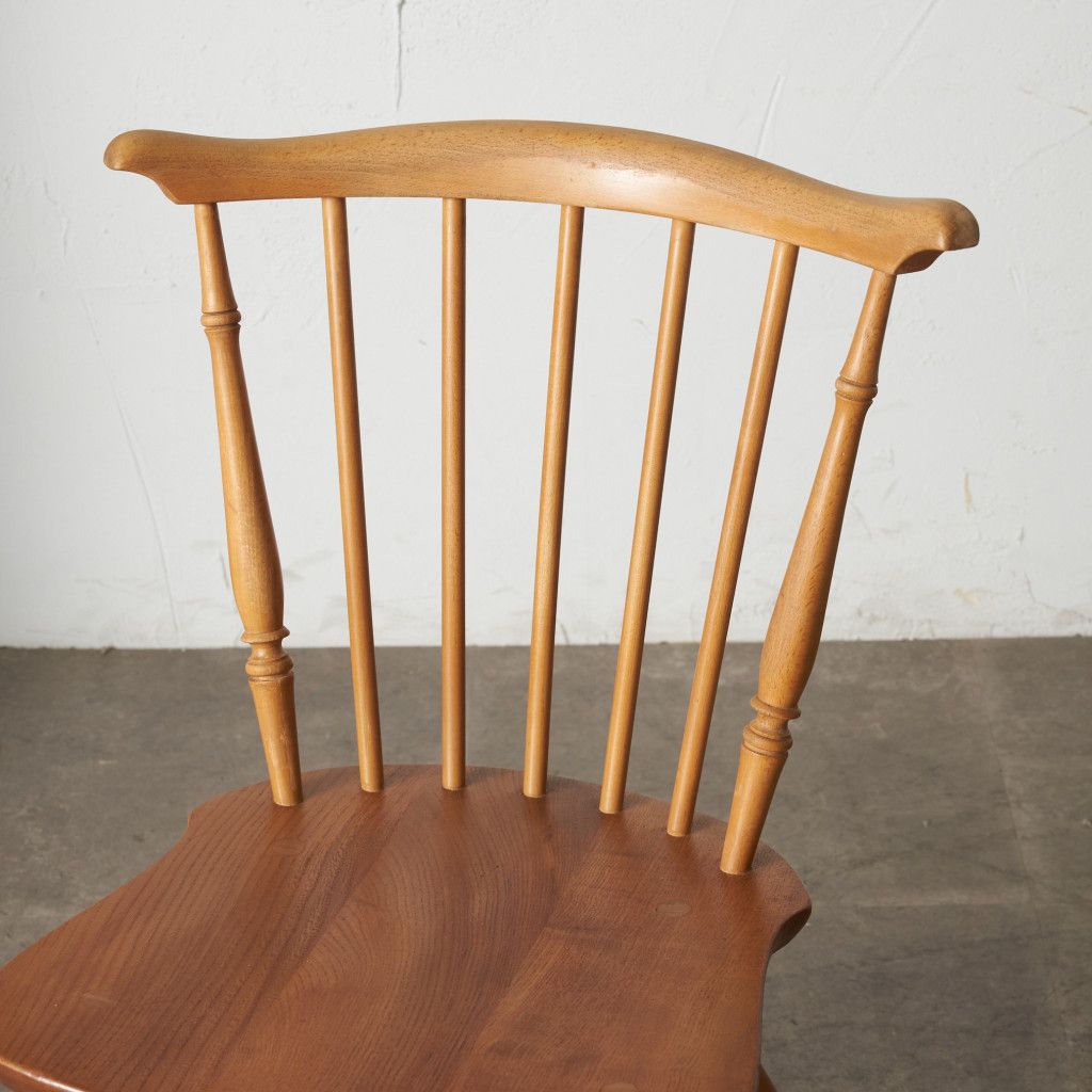 装飾の少ないシンプルな形状が多いアーコールのチェアですが、このモデルは両サイドのスポーク、脚部に挽物装飾が施されており、よりクラシカルなウインザーチェアのテイストが取り入れられています。