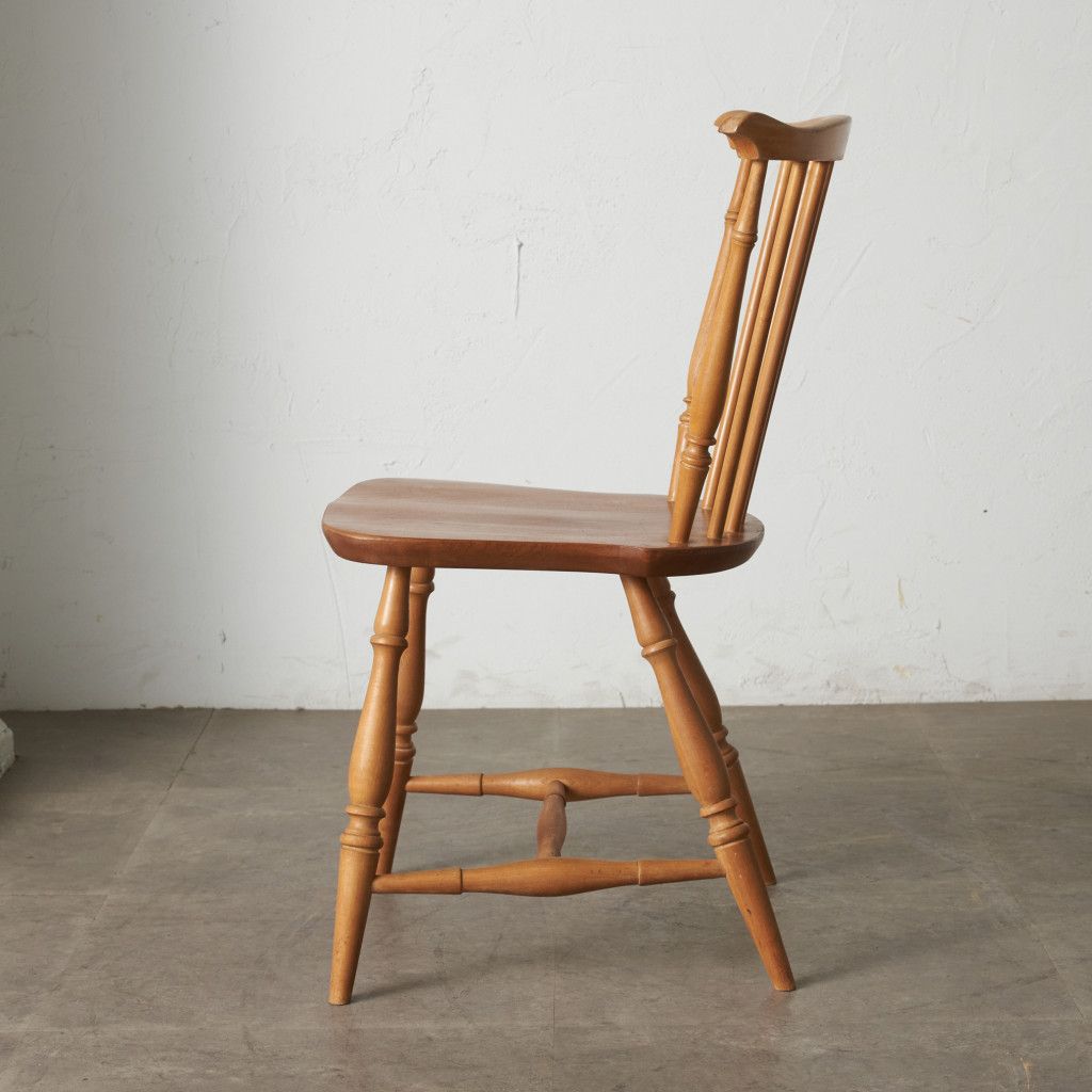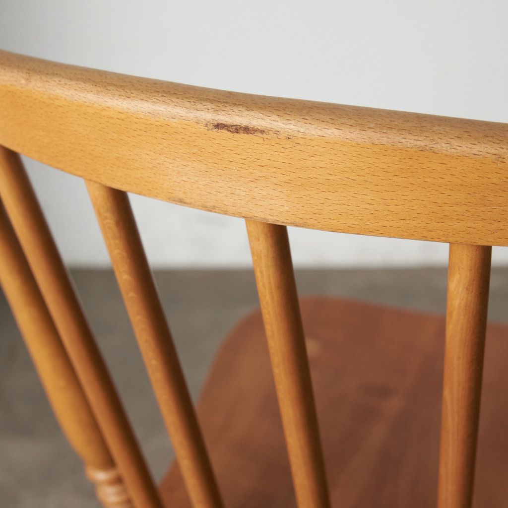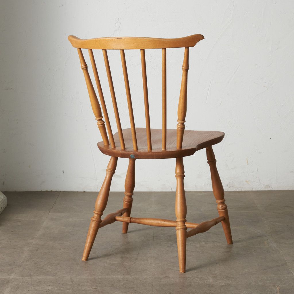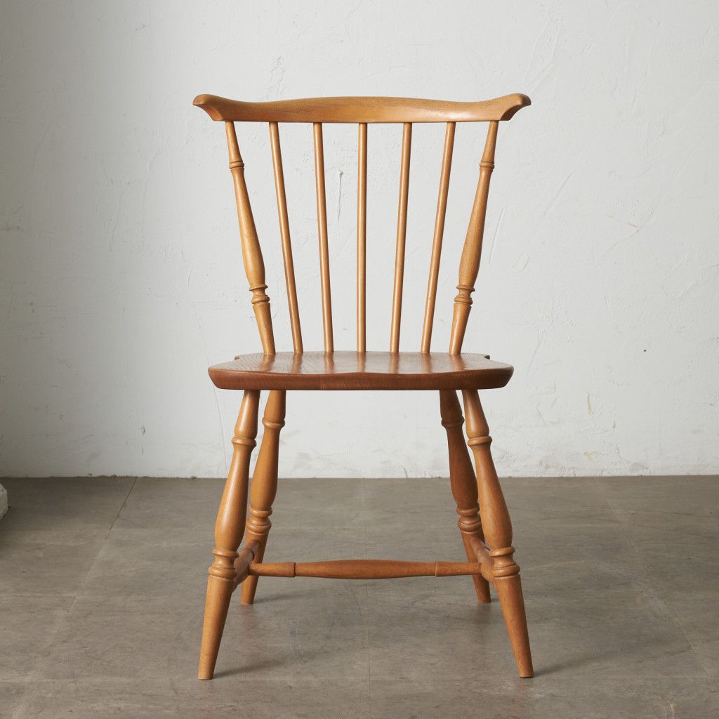 装飾の少ないシンプルな形状が多いアーコールのチェアですが、このモデルは両サイドのスポーク、脚部に挽物装飾が施されており、よりクラシカルなウインザーチェアのテイストが取り入れられています。
