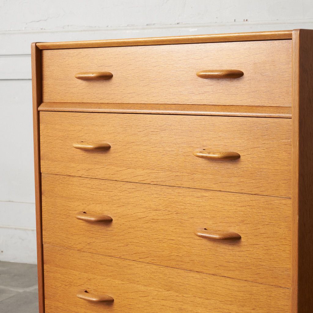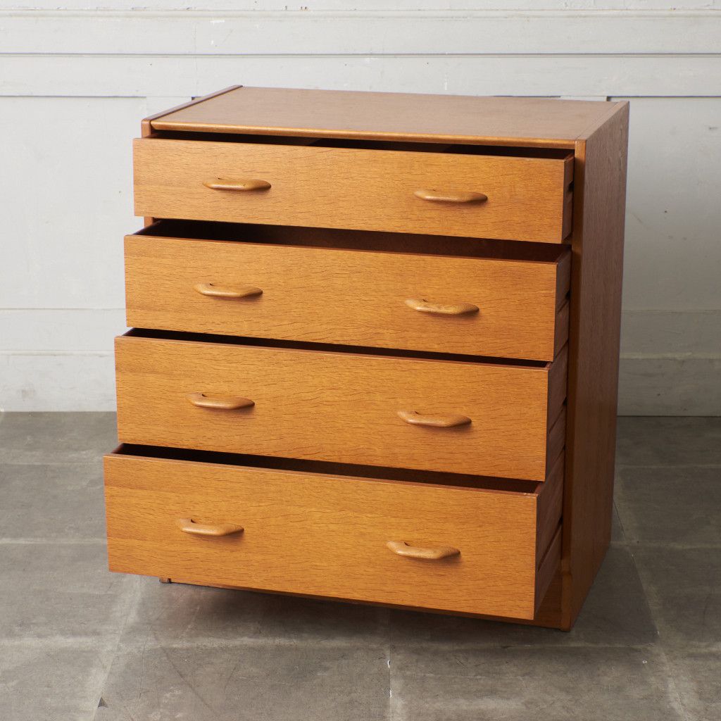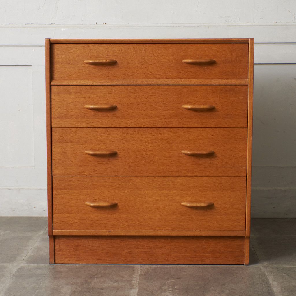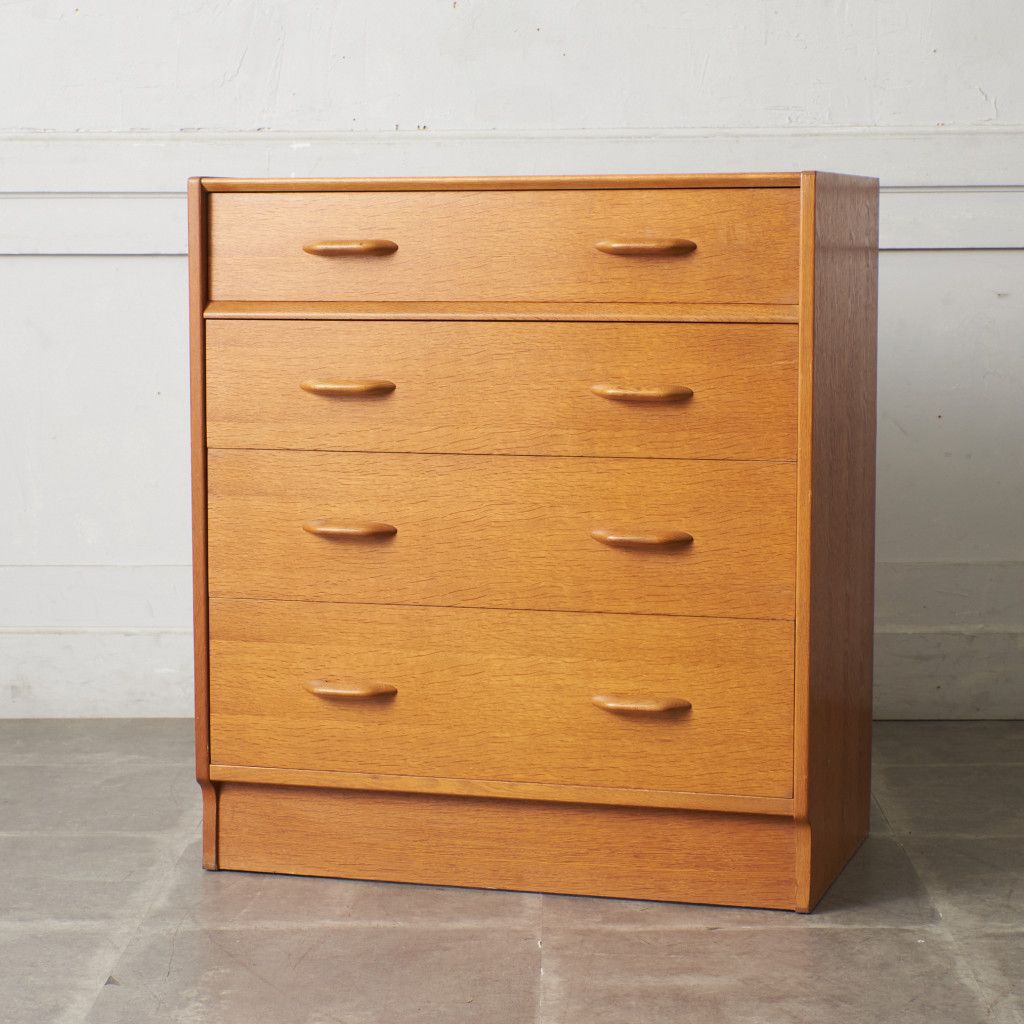 イギリスのミッドセンチュリーを代表するブランド G-PLAN(ジープラン) による、Brandon(ブランドン)シリーズ、オーク材を使用した4段チェストです。