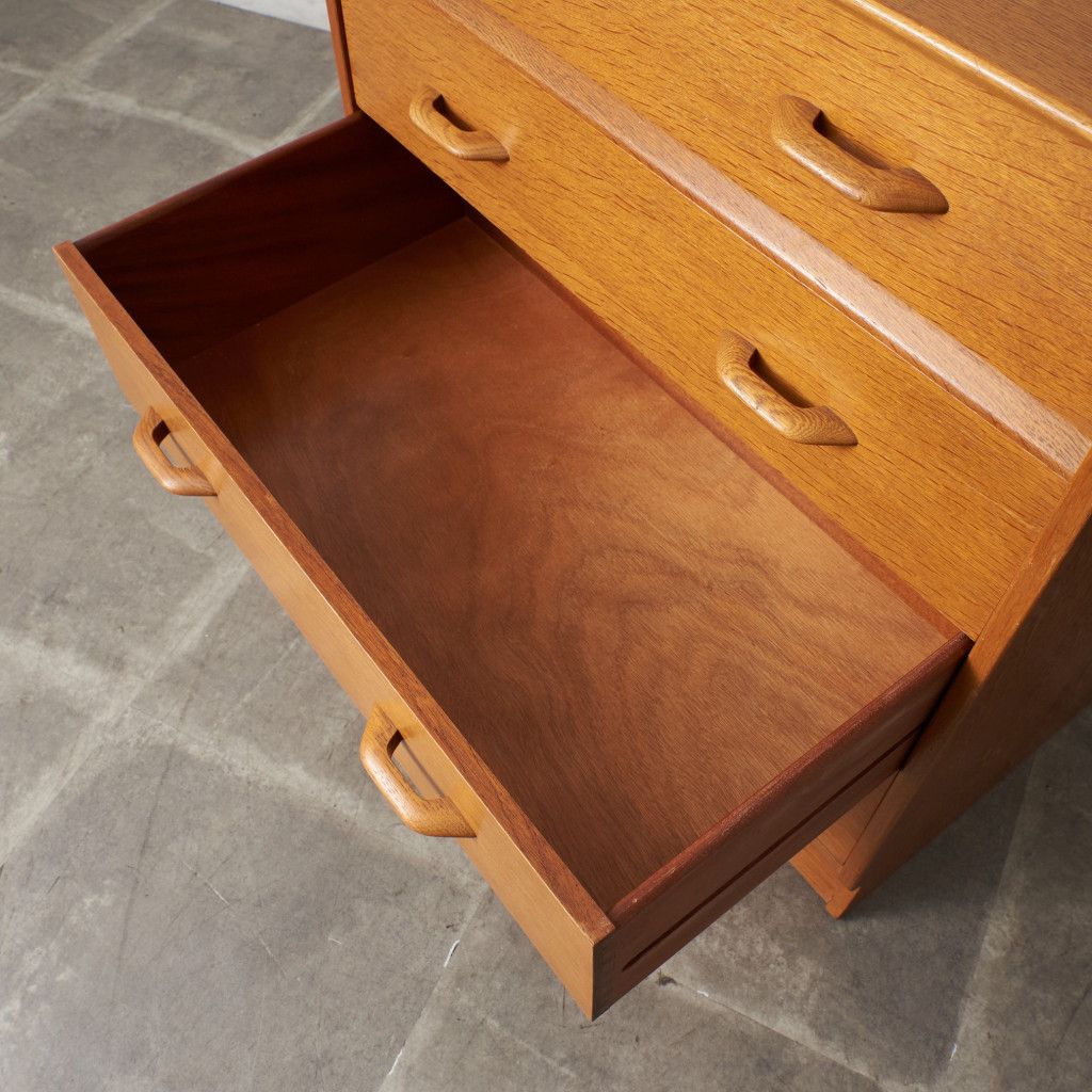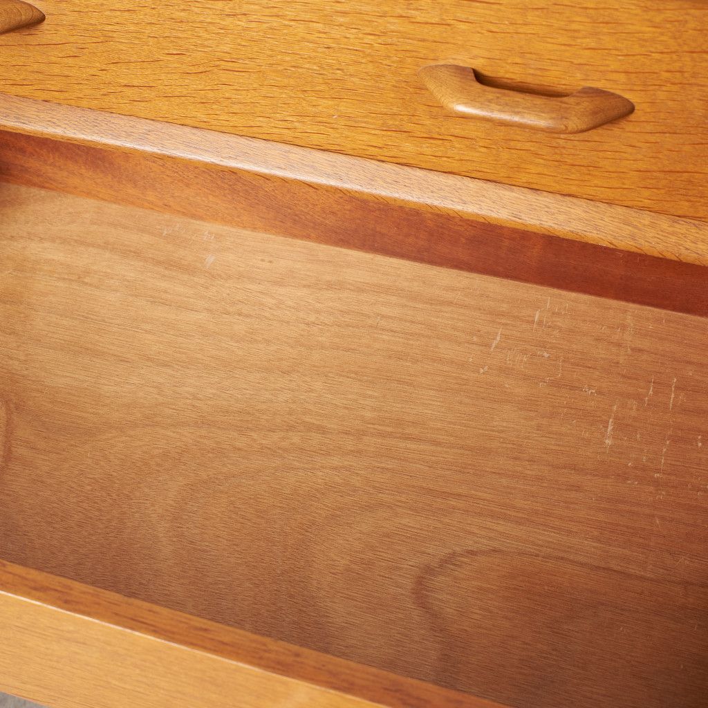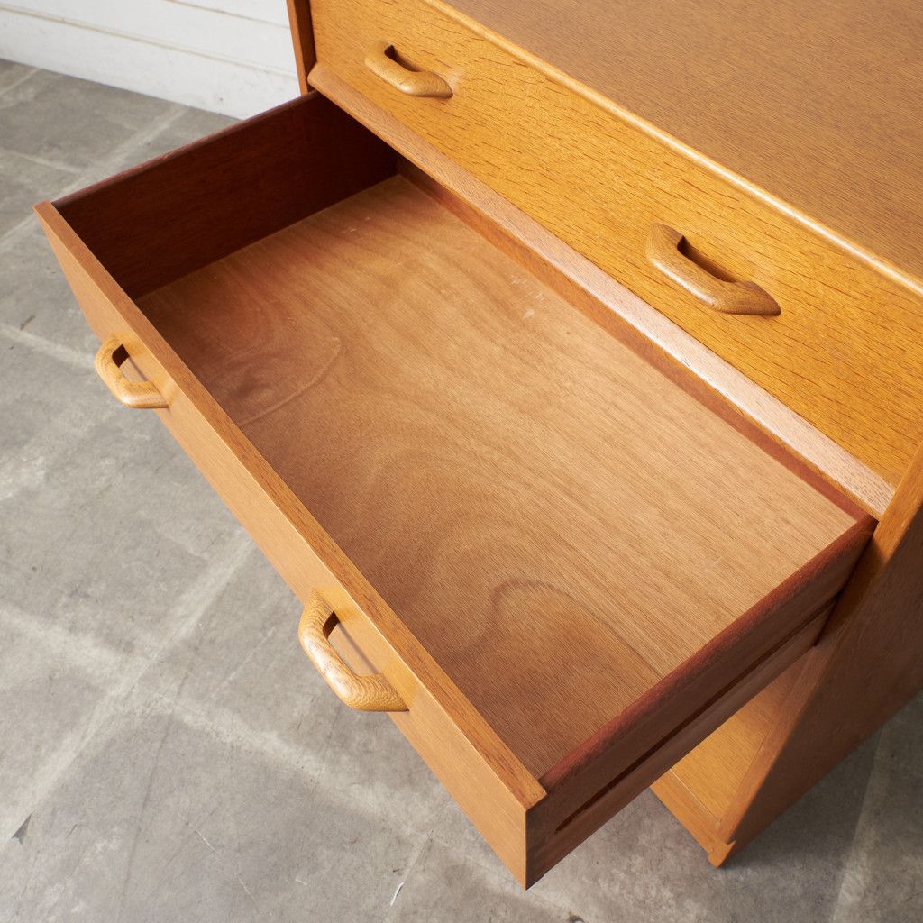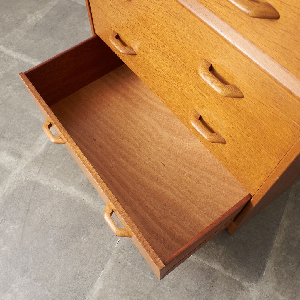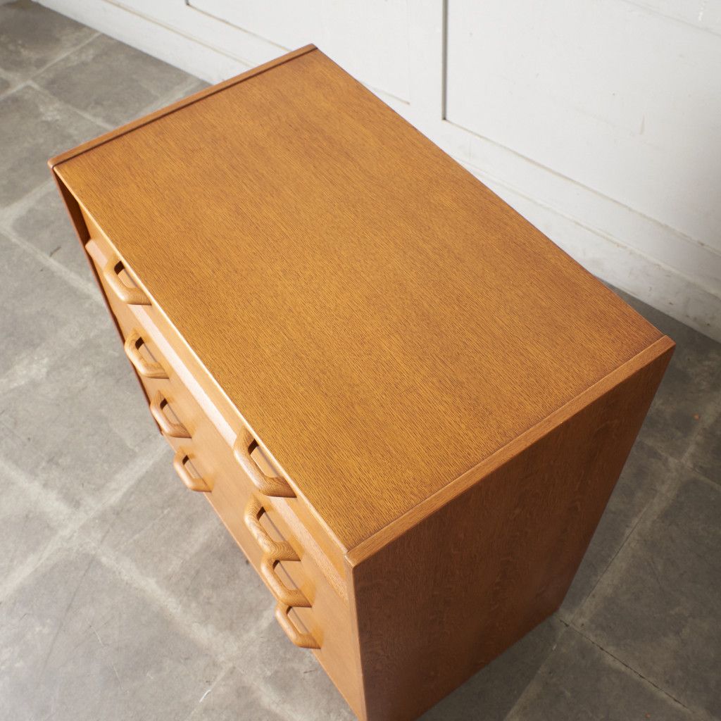イギリスのミッドセンチュリーを代表するブランド G-PLAN(ジープラン) による、Brandon(ブランドン)シリーズ、オーク材を使用した4段チェストです。