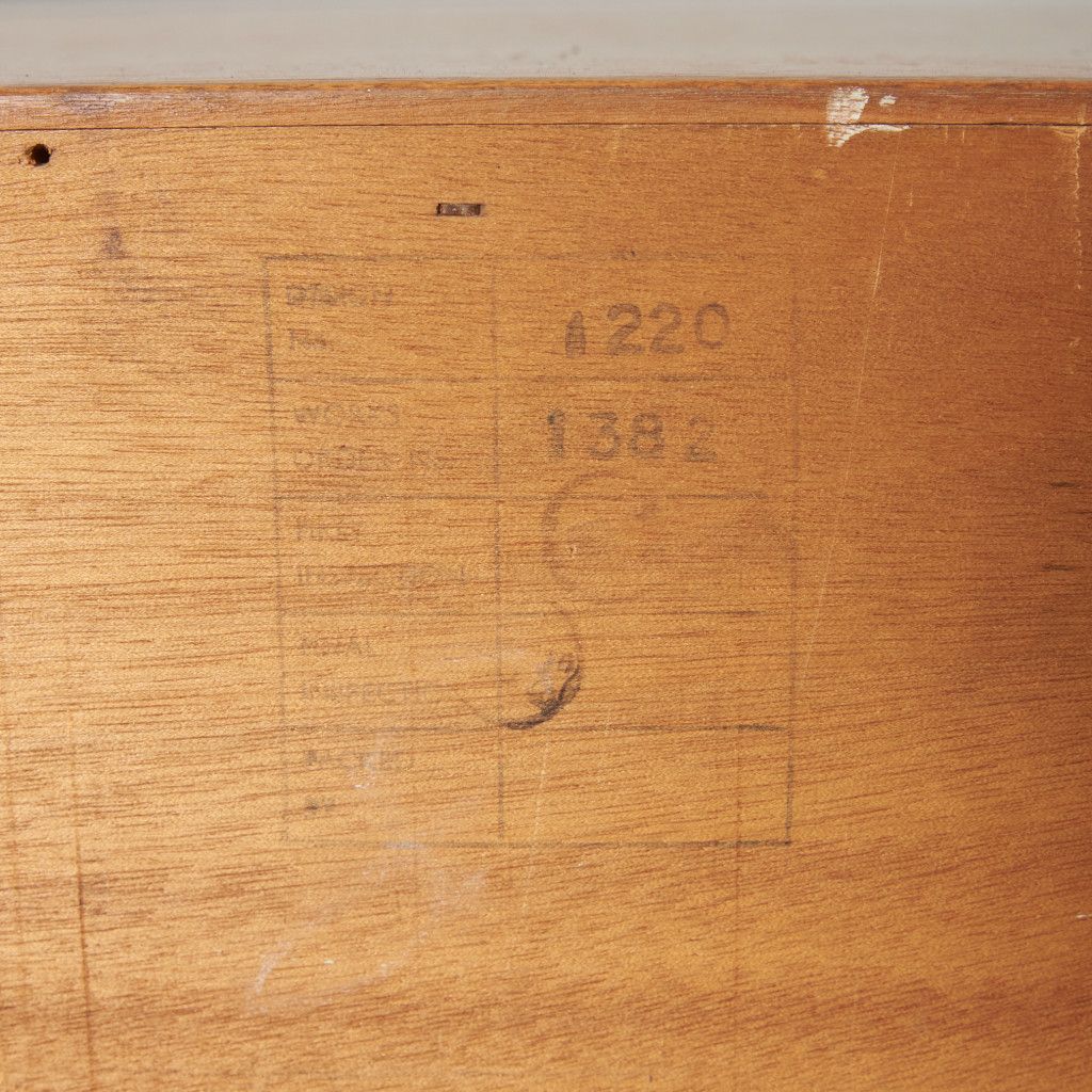 1952年〜65年の間に造られた、初期ゴールドラベル。ゴールド色は当時高級家具だったことの証で、それまでスタンプだったラベルをエンボス加工し、直接ゴールド色のロゴが焼き付けてあります。