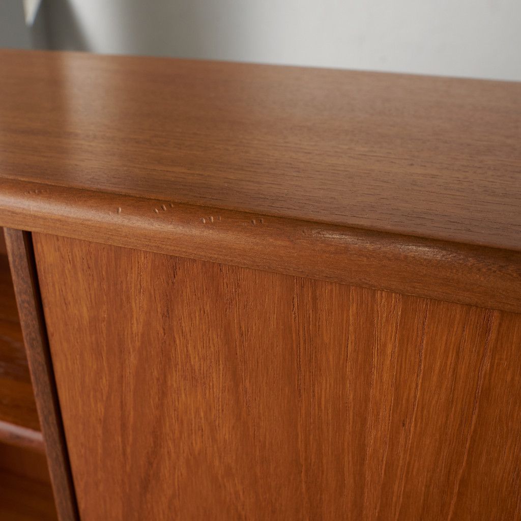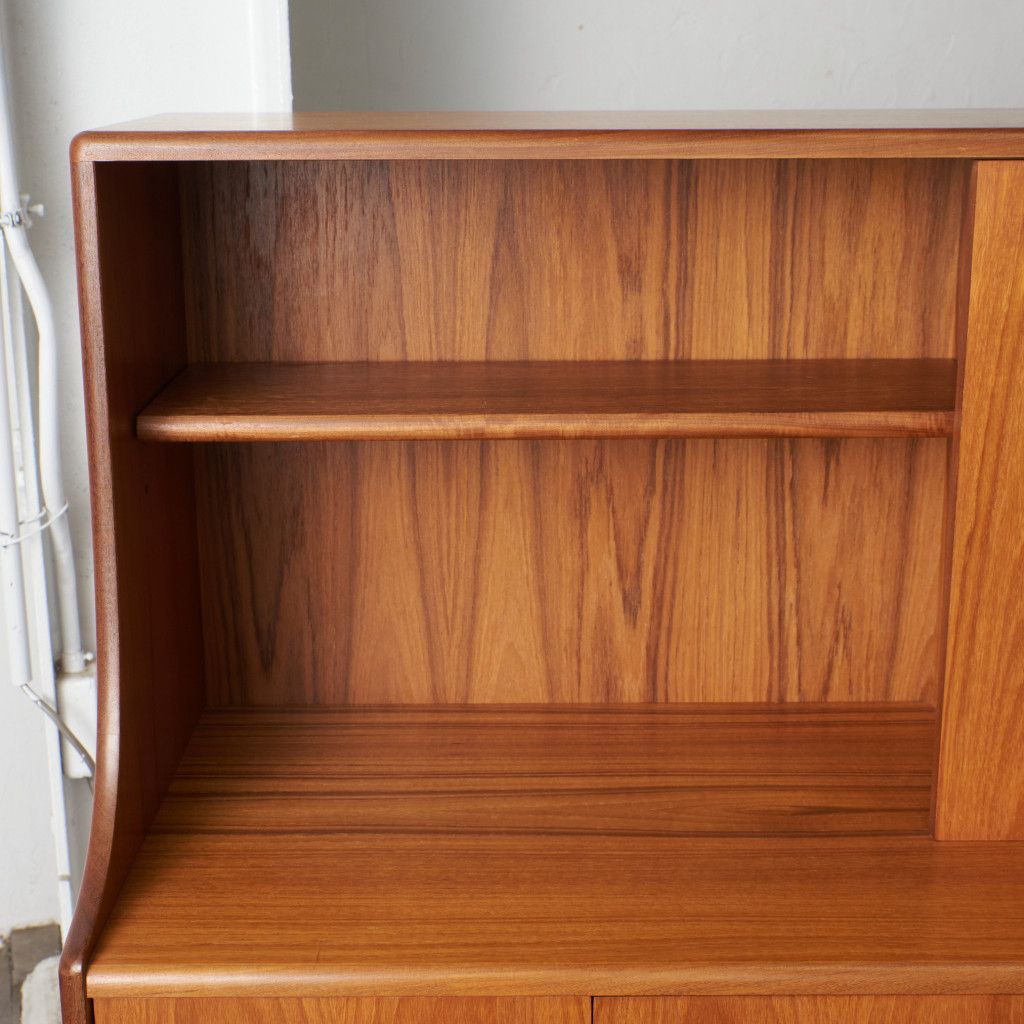 大容量収納を下段に、上段にはシーンに応じて変更できるスライド扉付きラック、開くことでコンパクトな書斎デスクに変わるビューローを備えており、食器棚や書斎デスク、リビングの飾り棚、はたまたひとり暮らし用のオールインワン家具として、様々な用途にお使いいただけます。日本と似た住宅事情のイギリスならではの非常に実用性の高い設計のサイドボードです。