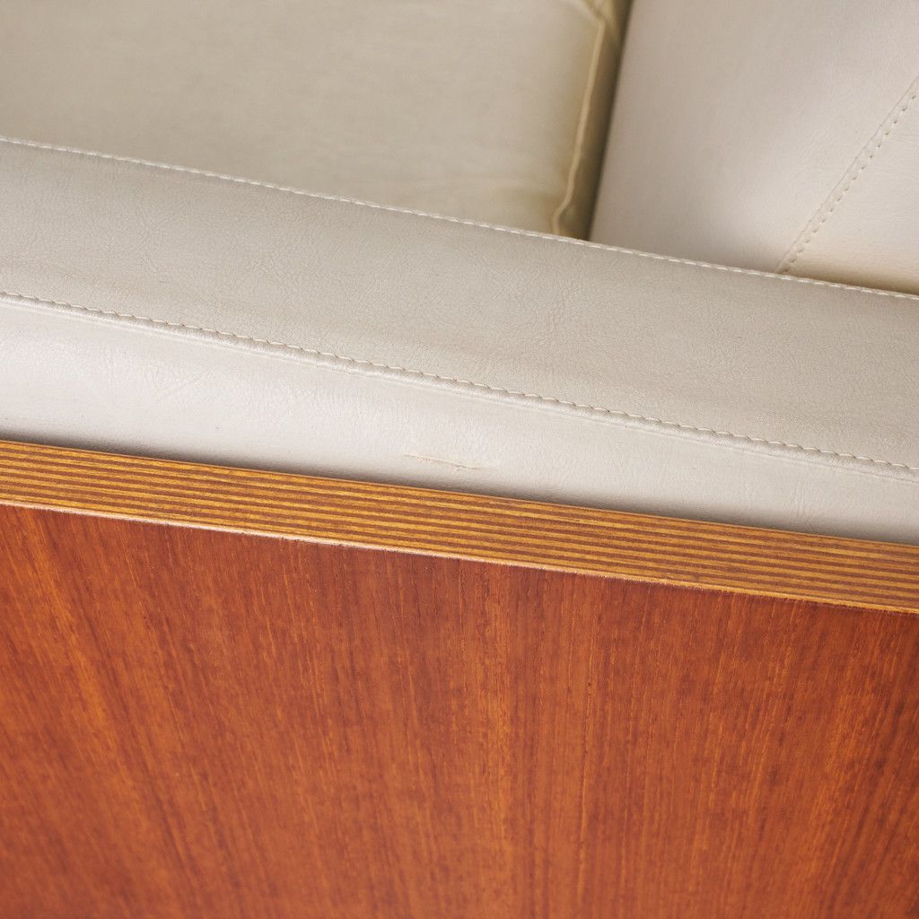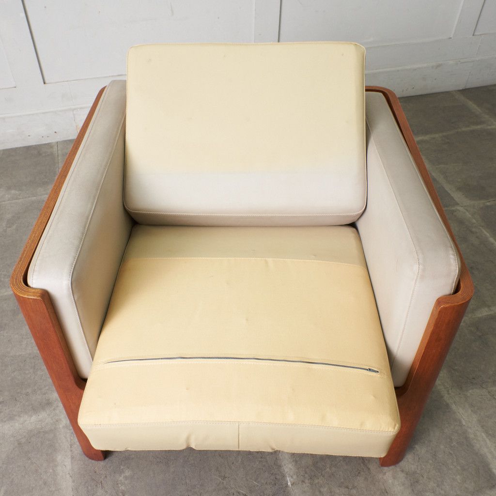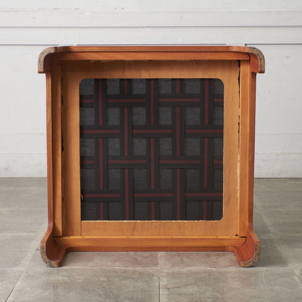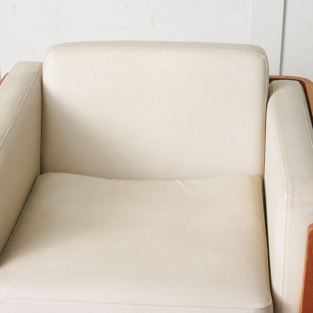 国立京都国際会館のロビー用にデザインされたもので、一体成形ならではの曲面と直線的なデザインのマッチングが美しいソファです。北欧家具をモチーフにデザインされたシンプルな造形が魅力的。木目の側面を眺めると、構造の成り立ちがとてもよく分かります。ほぼ継ぎ目が無く、ひとつのプライウッドで形成されている天童木工の技術力の高さを感じさせる、ジャパニーズモダンデザインの名作家具です。