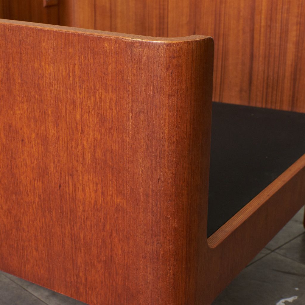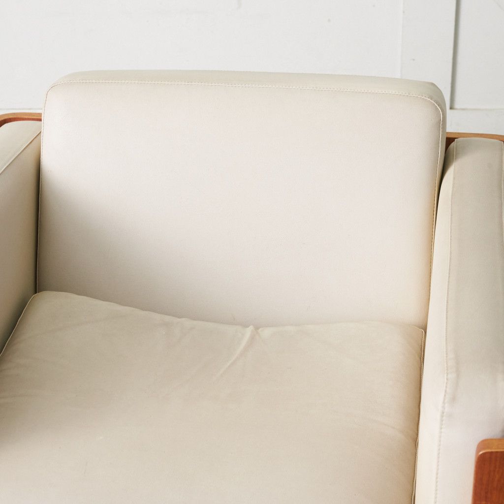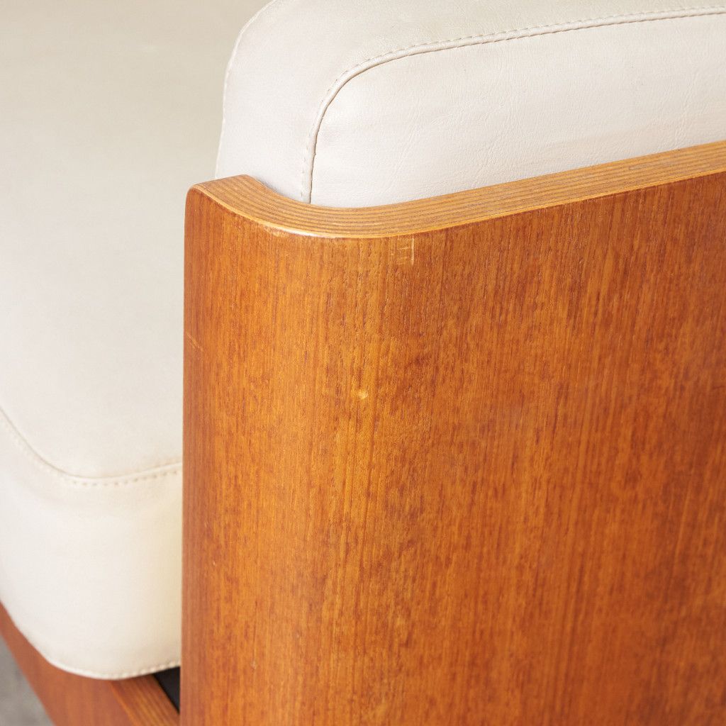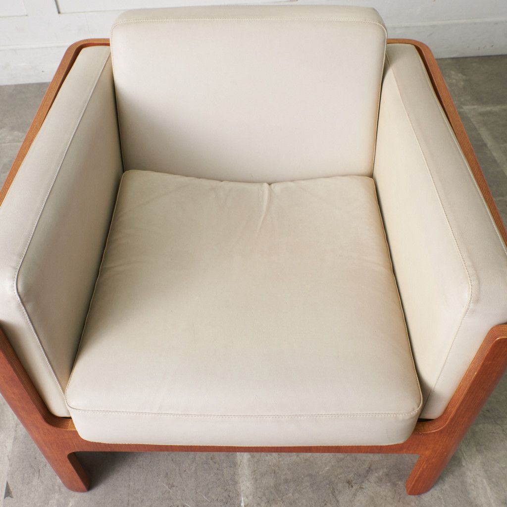 国立京都国際会館のロビー用にデザインされたもので、一体成形ならではの曲面と直線的なデザインのマッチングが美しいソファです。北欧家具をモチーフにデザインされたシンプルな造形が魅力的。木目の側面を眺めると、構造の成り立ちがとてもよく分かります。ほぼ継ぎ目が無く、ひとつのプライウッドで形成されている天童木工の技術力の高さを感じさせる、ジャパニーズモダンデザインの名作家具です。