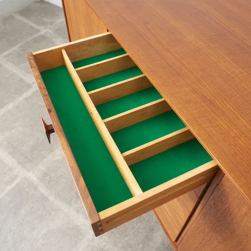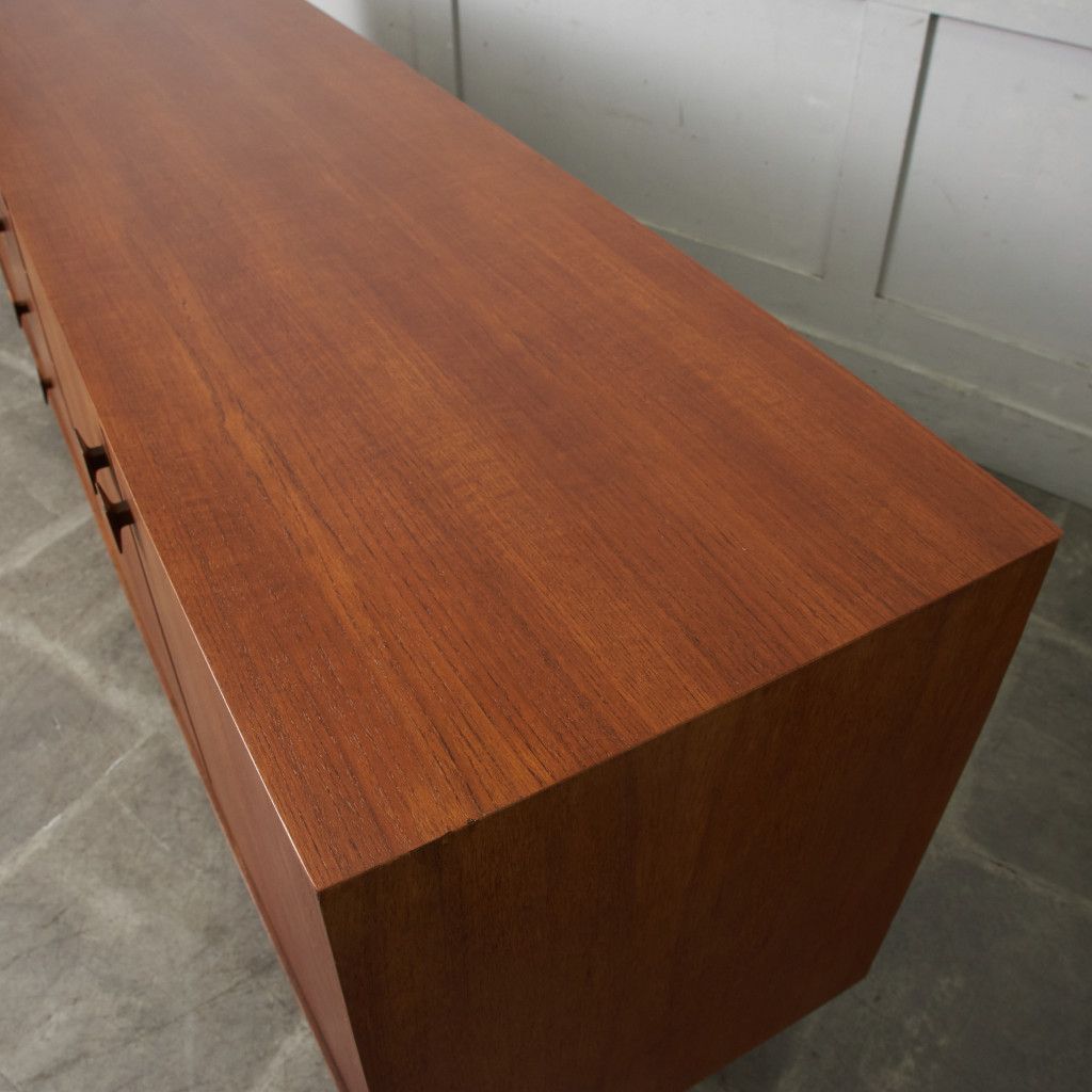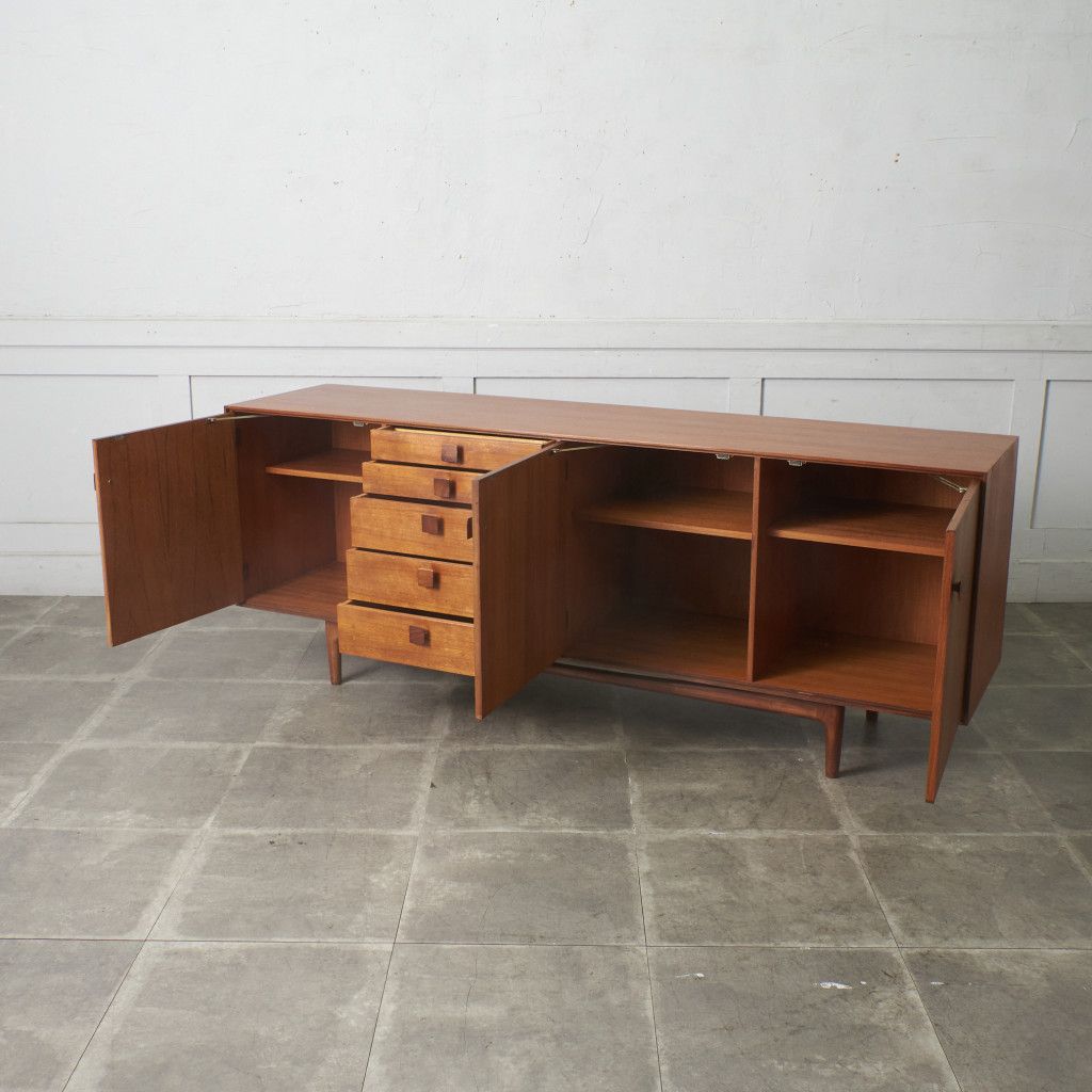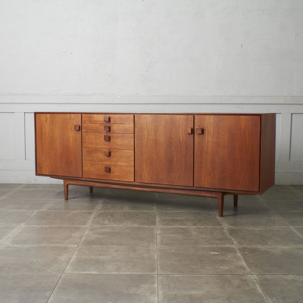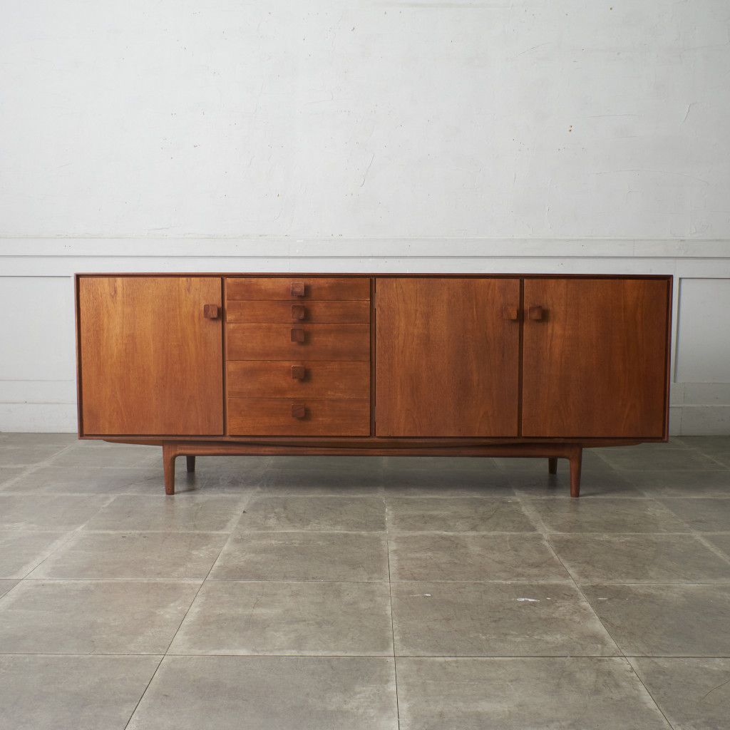 巨匠 Ib Kofod-Larsen(イブ・コフォード・ラーセン)がデザインした、極めて希少なダニッシュシリーズのサイドボード。良質なチークが使用され、直線的でシンプルなデザインにローズウッド材の取っ手がアクセントを添える上質なお品。ダニッシュシリーズのサイドボードの中でも、特に流通量が少なく希少価値の高いレアモデルです。
