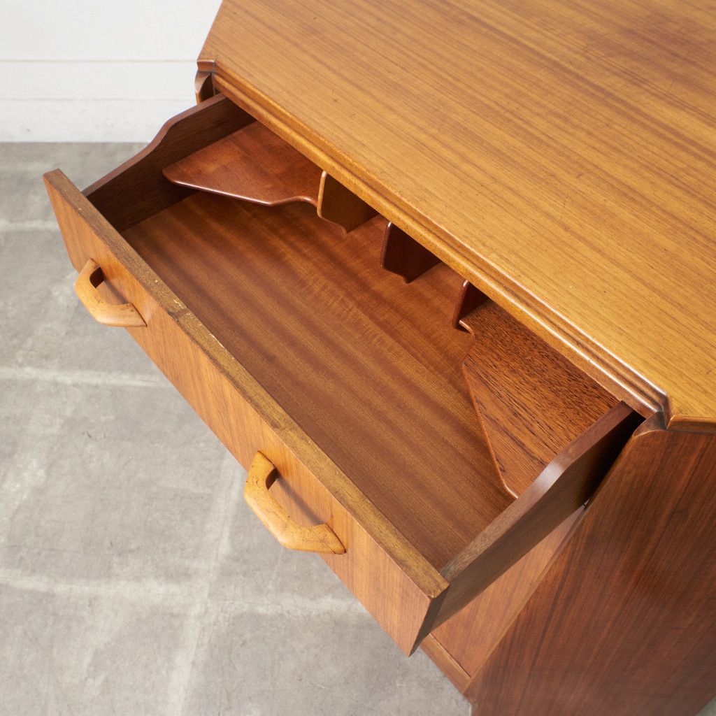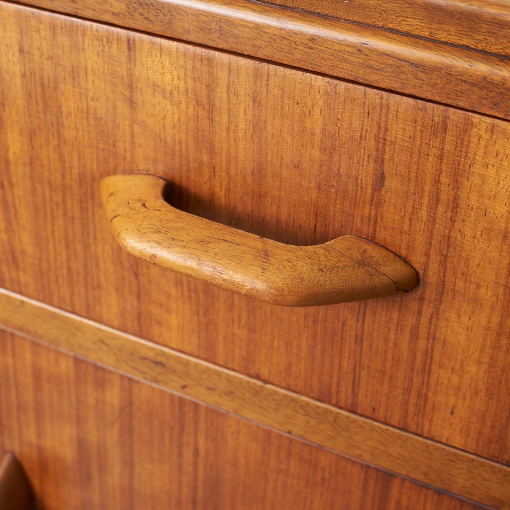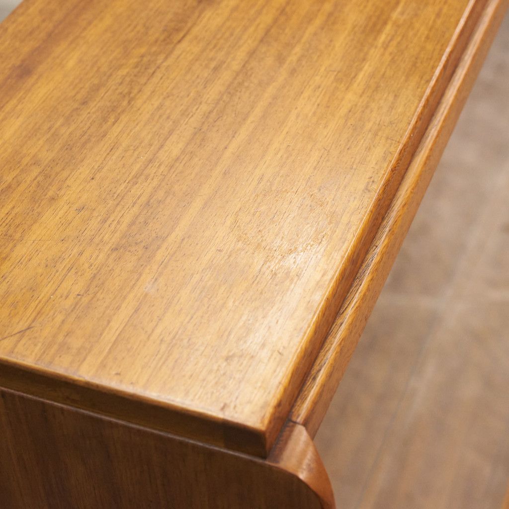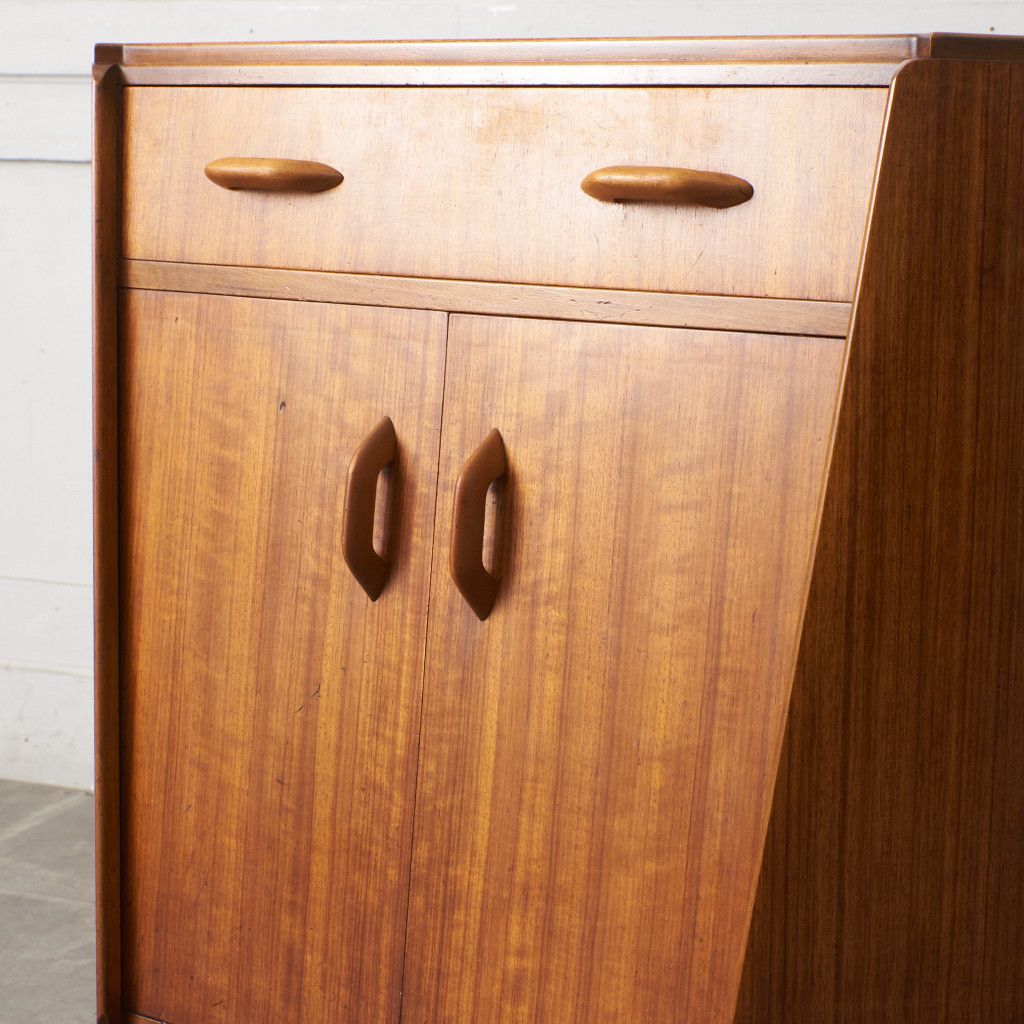 希少な初期シリーズ1953年発表の「Brandon(ブランドン)」シリーズの亜種とも言える珍しいお品です。材質は通常のオーク材ではなくトーラ材を使用。また角ばった取っ手が特徴のブランドンとは違い、丸みを帯びた取っ手が採用されています。落ち着いた英国の気品を持ちながらも、どことなく漂う日本的なレトロモダンの雰囲気が目を惹きます。