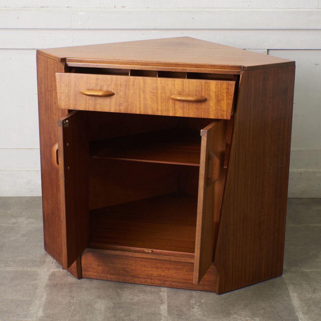英国ミッドセンチュリーを代表するブランド G-PLAN(ジープラン)による、Brandon(ブランドン)シリーズ、ヴィンテージ コーナーキャビネット 3点セットです。