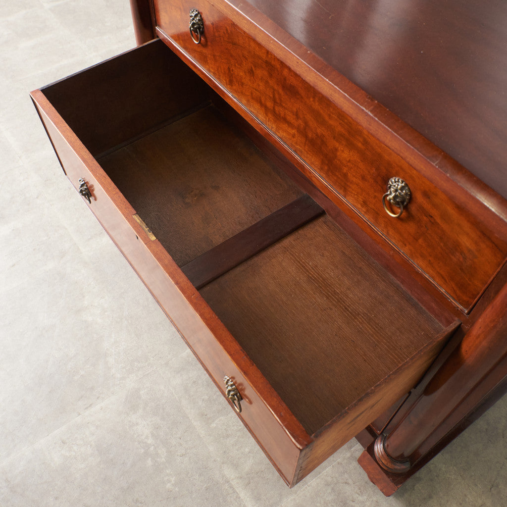 木目が美しい良質なマホガニー材が使用されたチェスト。上品なデザインにクラシカルな金具取手のアクセントが華やかさを添えるハイクオリティなお品です。
