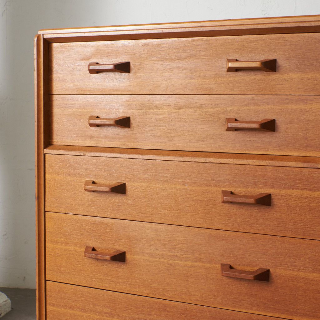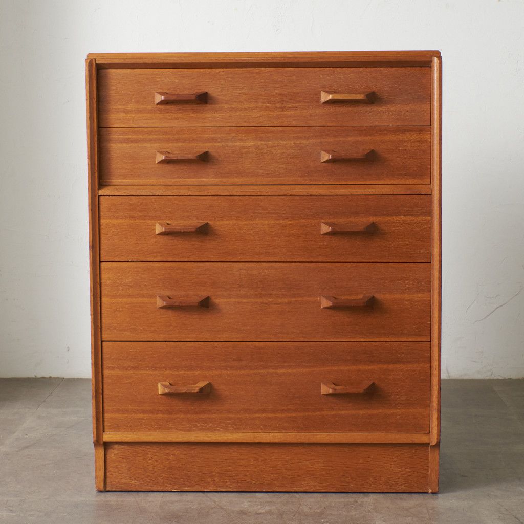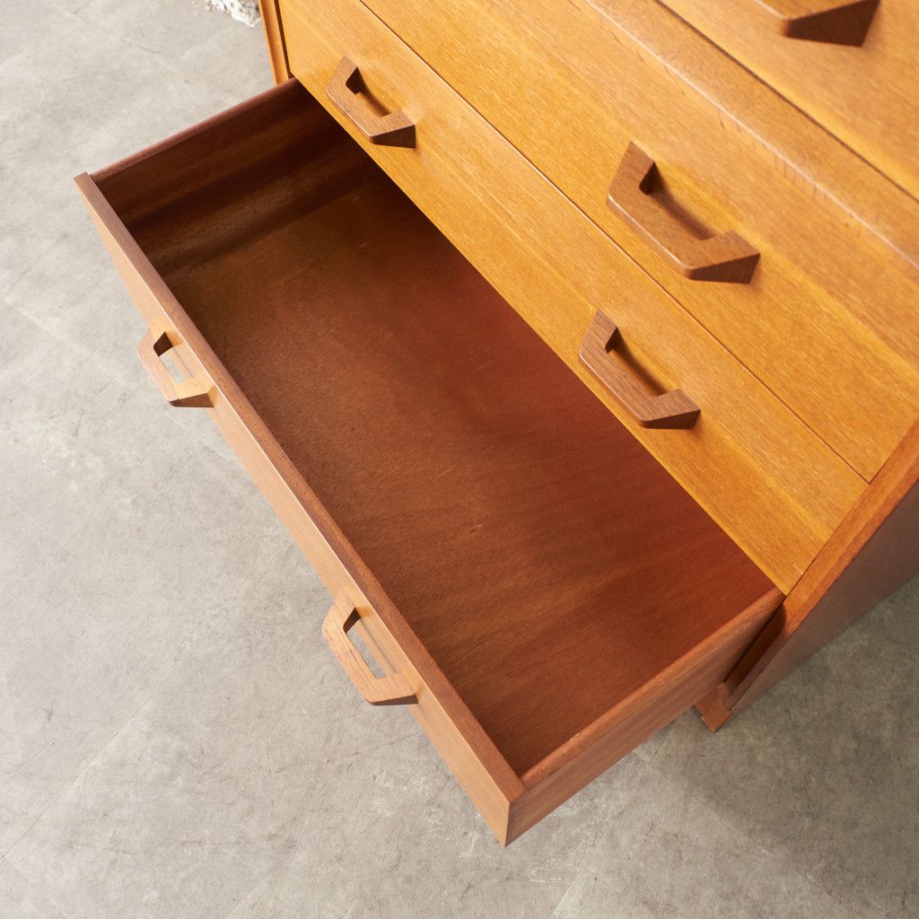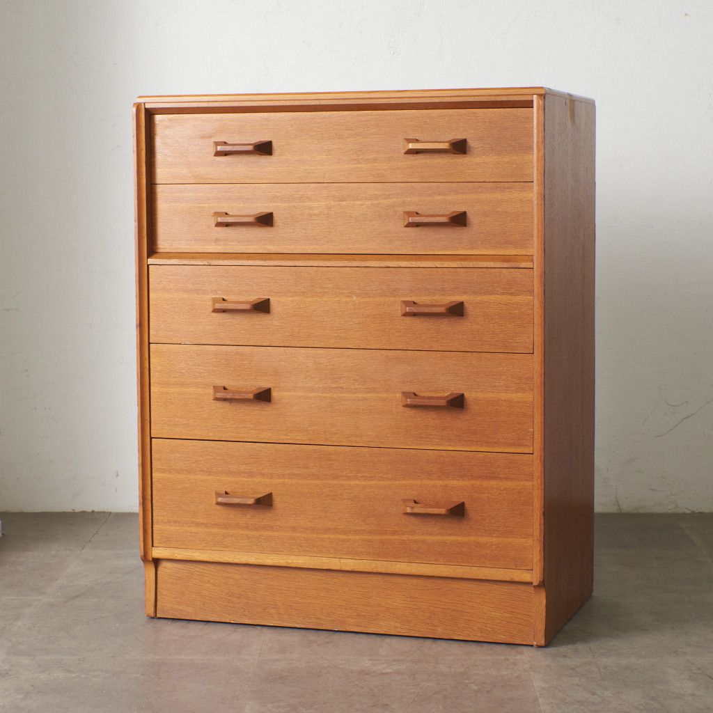 イギリスのミッドセンチュリーを代表するブランド G-PLAN(ジープラン) による、Brandon(ブランドン)シリーズ、オーク材を使用した5段チェストです。