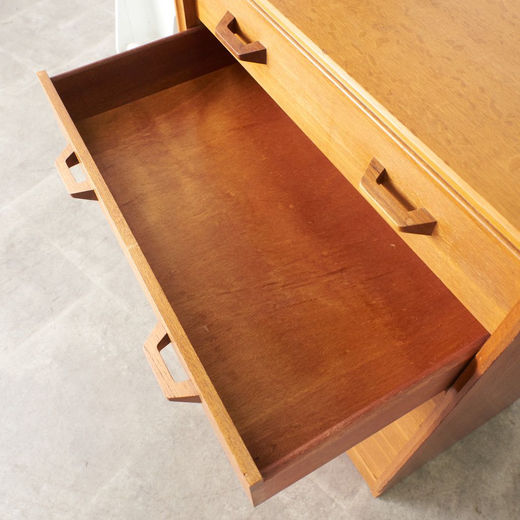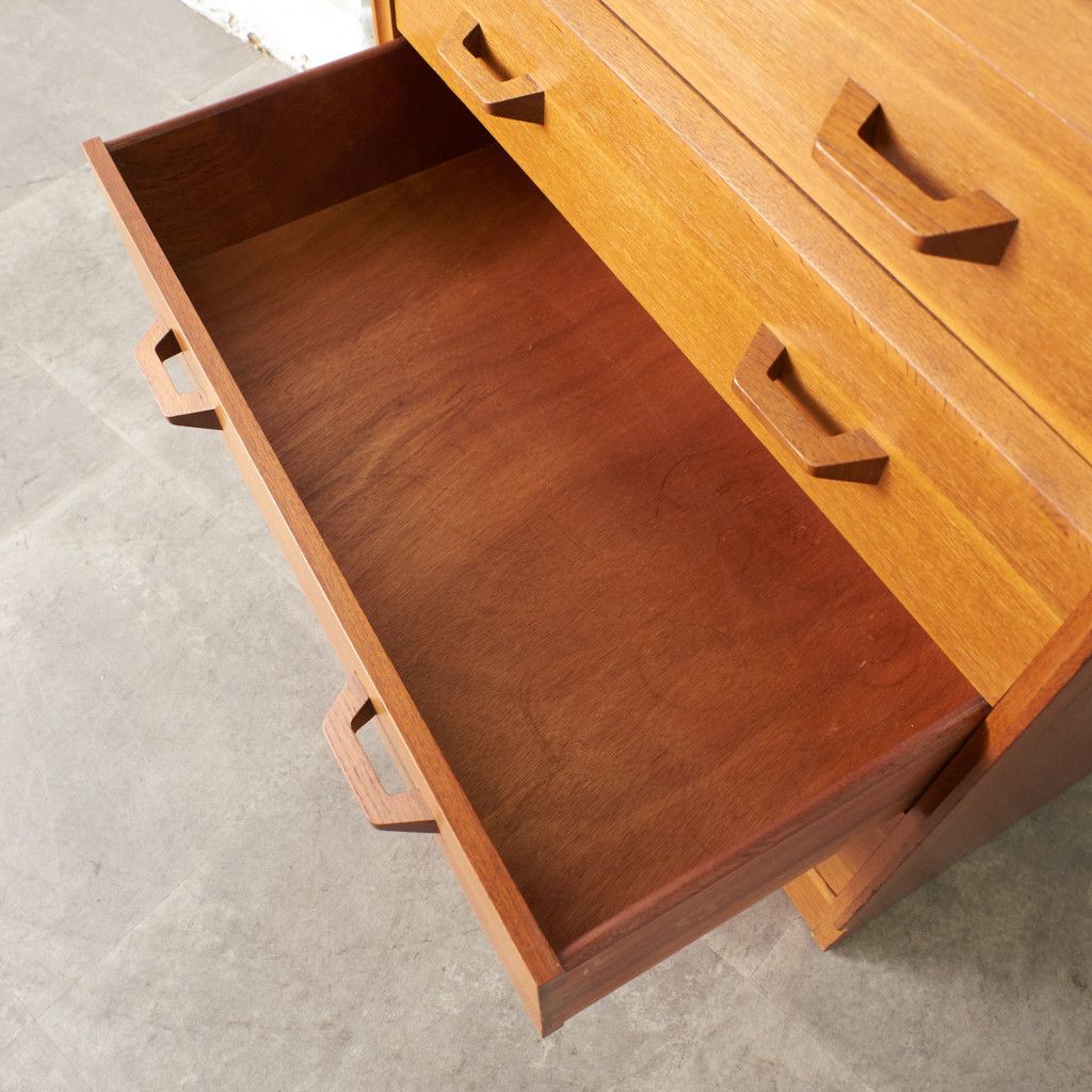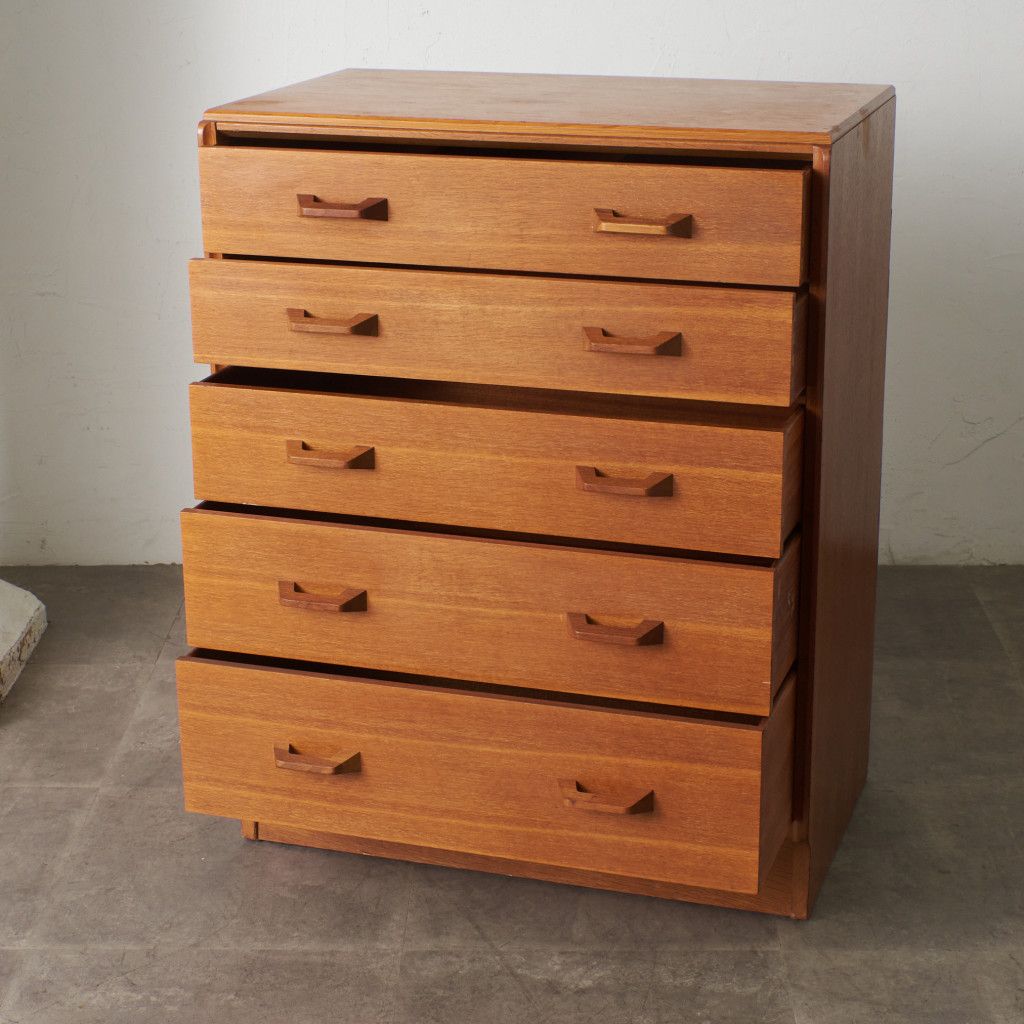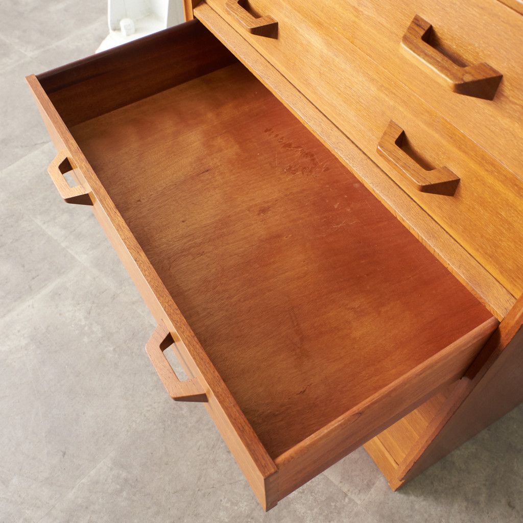 イギリスのミッドセンチュリーを代表するブランド G-PLAN(ジープラン) による、Brandon(ブランドン)シリーズ、オーク材を使用した5段チェストです。