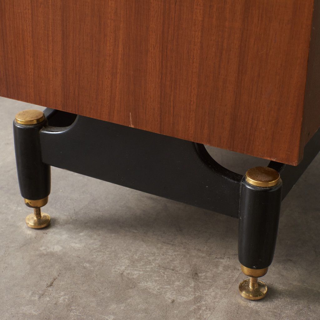 1958年に発売されたTola&Black(トーラ&ブラック)。日本の漆塗りに着想を得てヨーロッパで黒塗りの家具が流行した1950年代に展開されたシリーズです。スタイリッシュで洗練された雰囲気が印象的で、トーラ材の美しい色調とブラックペイントや、真鍮メッキのゴールドのコントラストが目を惹きます。別名BB(Black&Brass)シリーズとも呼ばれ、現在でも人気の高いTola&BlackはG-PLANの中でも流通量が少なく、なかなか手に入りにくい希少価値の高いシリーズです。