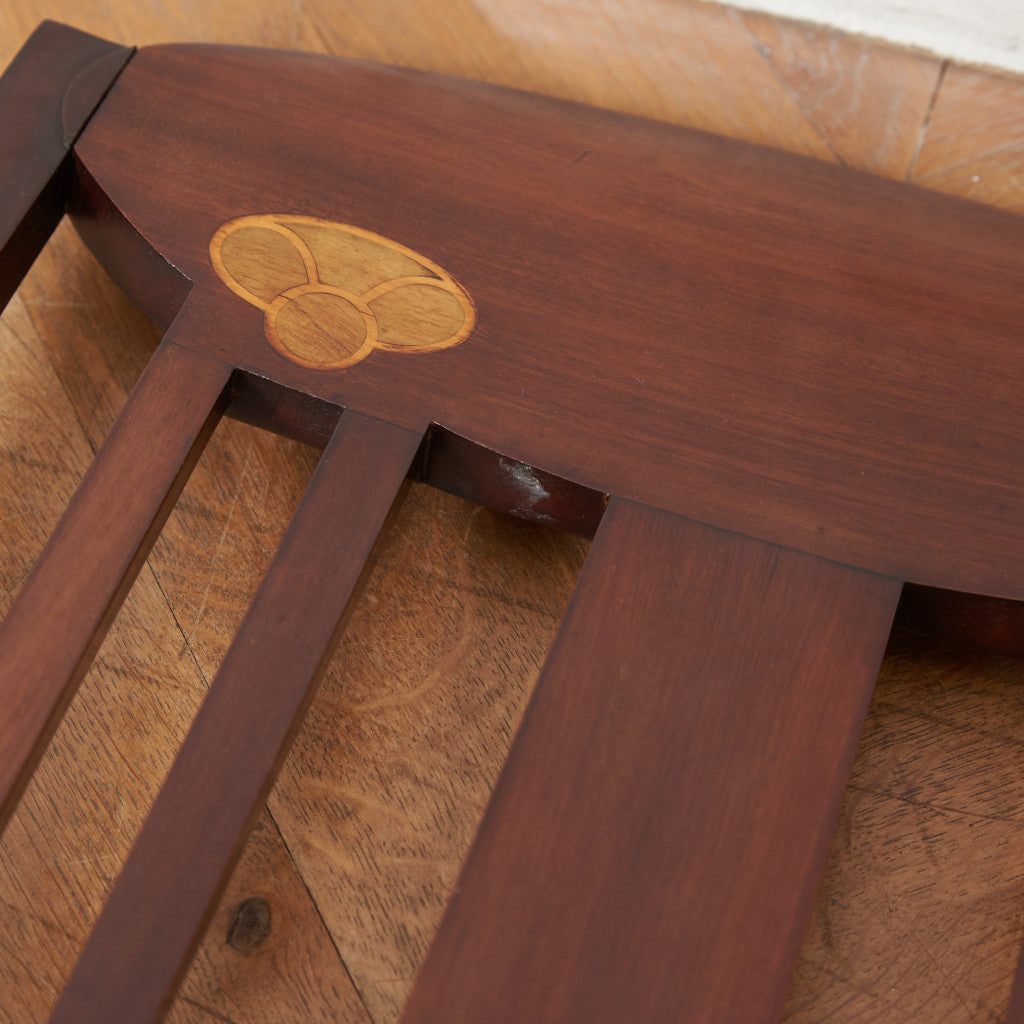 マホガニーを用いた象嵌装飾など随所に美しいディテールを備えたクオリティの高い上質なアームチェア。アーツ・アンド・クラフツスタイルの家具は、素材の質と用の美とも言えるデザインが魅力的。古き良き西欧の伝統を感じさせるクラシカルなデザインで、一脚でも絵になる美しい佇まいのチェアです。
